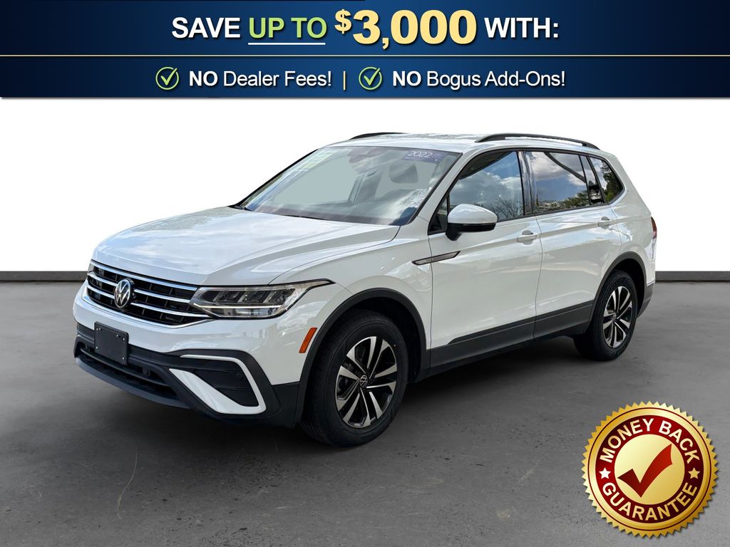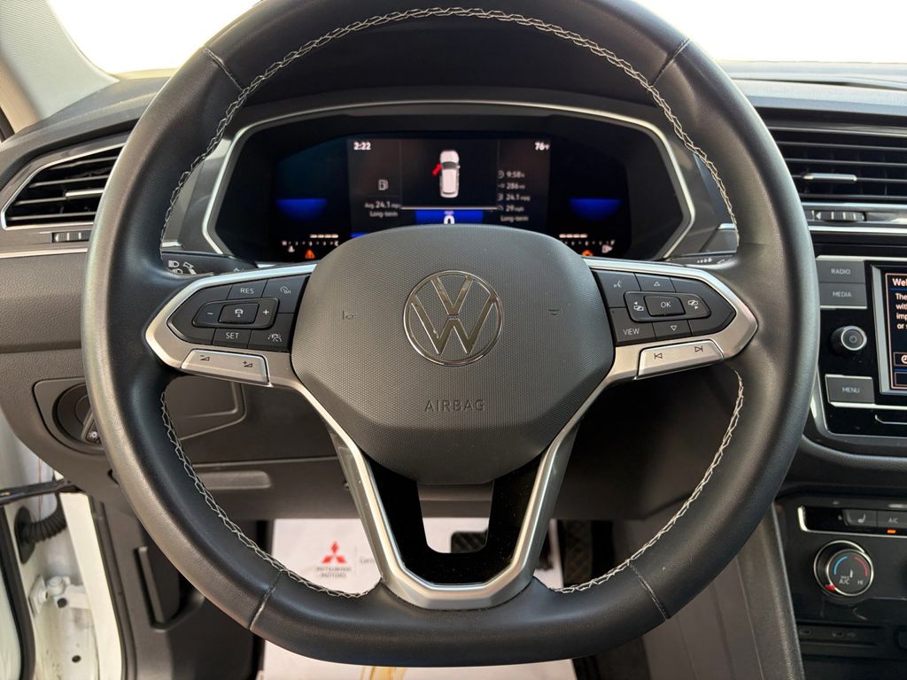 2022 Volkswagen Tiguan 2.0T S Certified. Pure White 2.0T S FWD 8-Speed Automatic with Tiptronic 2.0L TSI DOHC Volkswagen Certified, 3-Row Rubber Monster Mats w/Logo Kit (Set of 5), 3.33 Axle Ratio, 3rd row seats: bench, 4-Wheel Disc Brakes, 4-Wheel Independent Suspension, 6 Speakers, ABS brakes, Active Side Assist (Blind Spot Monitor), Adaptive Cruise Control (ACC) w/Stop & Go, Air Conditioning, Alloy wheels, AM/FM radio, Auto-Dimming Interior Rear-View Mirror, Automatic Rain-Sensing Front Wipers, Brake assist, Bumpers: body-color, Cloth Seating Surfaces, Compass, Convenience Package, Delay-off headlights, Driver door bin, Driver vanity mirror, Dual front impact airbags, Dual front side impact airbags, Electronic Stability Control, Emergency Assist, Emergency communication system: Car-Net, Exterior Parking Camera Rear, Forward collision: FCW w/Autonomous Emergency Braking mitigation, Four wheel independent suspension, Front anti-roll bar, Front Assist, Front Bucket Seats, Front Center Armrest, Front reading lights, Fully automatic headlights, Hands-On Detection Sensors in Steering Wheel, Heated door mirrors, Heated Front Bucket Seats, Heated front seats, Heavy Duty Trunk Liner w/VW CarGo Blocks, Illuminated entry, IQ.DRIVE Package, Lane Assist (Lane Keeping System), Leather Shift Knob, Leatherette-Wrapped Steering Wheel, Low tire pressure warning, Occupant sensing airbag, Outside temperature display, Overhead airbag, Overhead console, Panic alarm, Passenger door bin, Passenger vanity mirror, Power door mirrors, Power steering, Power windows, Radio data system, Radio: Composition Color AM/FM, Rear anti-roll bar, Rear reading lights, Rear seat center armrest, Rear Traffic Alert, Rear window defroster, Rear window wiper, Remote keyless entry, Roadside Assistance Kit, Roof rack: rails only, Speed control, Speed-sensing steering, Split folding rear seat, Spoiler, Steering wheel mounted audio controls, Tachometer, Telescoping steering wheel, Tilt steering wheel, Traction control, Travel Assist (Semi-Automated Driving Assistance), Trip computer, Turn signal indicator mirrors, Variably intermittent wipers, VW Care, Wheels: 17" 2-Tone Machined Twin 5-Spoke Alloy.