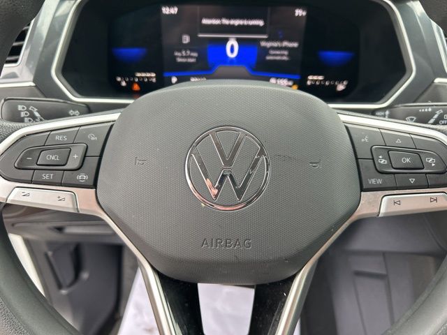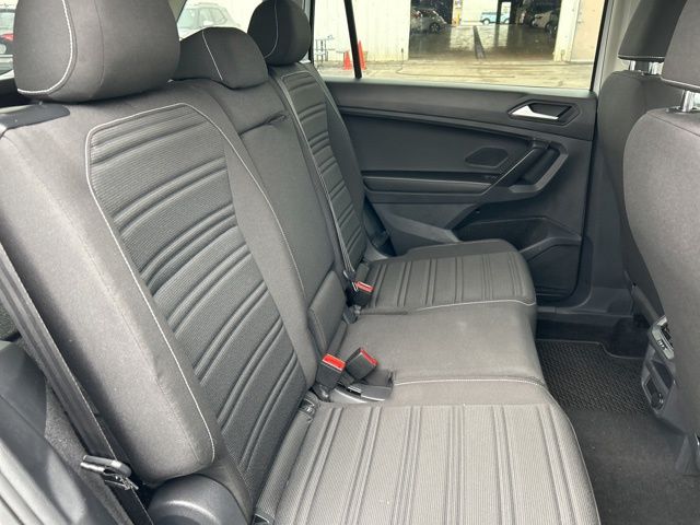 2022 Volkswagen Tiguan 2.0T S Certified. Pure White 2.0T S FWD 8-Speed Automatic with Tiptronic 2.0L TSI DOHC Volkswagen Certified, 3-Row Rubber Monster Mats w/Logo Kit (Set of 5), 3.33 Axle Ratio, 3rd row seats: bench, 4-Wheel Disc Brakes, 4-Wheel Independent Suspension, 6 Speakers, ABS brakes, Air Conditioning, Alloy wheels, AM/FM radio, Brake assist, Bumpers: body-color, Cloth Seating Surfaces, Compass, Delay-off headlights, Driver door bin, Driver vanity mirror, Dual front impact airbags, Dual front side impact airbags, Electronic Stability Control, Emergency communication system: Car-Net, Exterior Parking Camera Rear, First Aid Kit, Forward collision: FCW w/Autonomous Emergency Braking mitigation, Four wheel independent suspension, Front anti-roll bar, Front Bucket Seats, Front Center Armrest, Front reading lights, Fully automatic headlights, Heated door mirrors, Heated Front Bucket Seats, Heated front seats, Heavy Duty Trunk Liner w/VW CarGo Blocks, Illuminated entry, Leather Shift Knob, Low tire pressure warning, Occupant sensing airbag, Outside temperature display, Overhead airbag, Overhead console, Panic alarm, Passenger door bin, Passenger vanity mirror, Power door mirrors, Power steering, Power windows, Radio data system, Radio: Composition Color AM/FM, Rear anti-roll bar, Rear reading lights, Rear seat center armrest, Rear Sensors Delete, Rear window defroster, Rear window wiper, Remote keyless entry, Roadside Assistance Kit, Roof rack: rails only, Speed control, Speed-sensing steering, Split folding rear seat, Spoiler, Steering wheel mounted audio controls, Tachometer, Telescoping steering wheel, Tilt steering wheel, Traction control, Trip computer, Turn signal indicator mirrors, Variably intermittent wipers, Wheels: 17" 2-Tone Machined Twin 5-Spoke Alloy.