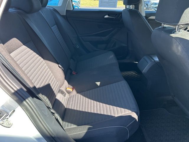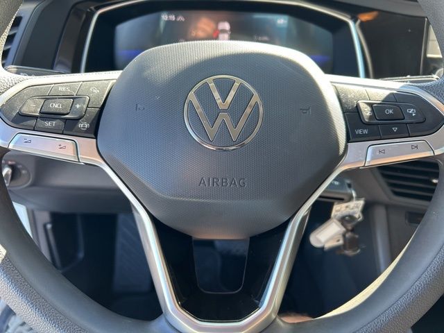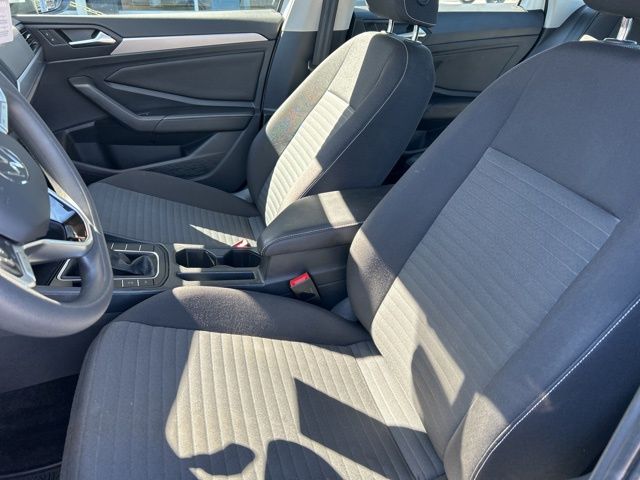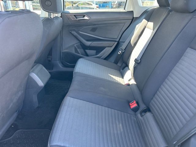 2023 Volkswagen Jetta 1.5T S Certified. Pure White 1.5T S FWD 8-Speed Automatic with Tiptronic 1.5L I-4 DI DOHC Turbocharged Volkswagen Certified, Titan Black Cloth, 4 Speakers, 4-Wheel Disc Brakes, ABS brakes, Air Conditioning, Alloy wheels, AM/FM radio, Brake assist, Bumpers: body-color, Cloth Seat Trim, Delay-off headlights, Driver door bin, Driver vanity mirror, Dual front impact airbags, Dual front side impact airbags, Electronic Stability Control, Emergency communication system: VW Car-Net Safe & Secure 5-year, Exterior Parking Camera Rear, Front anti-roll bar, Front Bucket Seats, Front Center Armrest, Front Comfort Seats, Front wheel independent suspension, Fully automatic headlights, Heated door mirrors, Illuminated entry, Low tire pressure warning, Occupant sensing airbag, Outside temperature display, Overhead airbag, Overhead console, Panic alarm, Passenger door bin, Passenger vanity mirror, Power door mirrors, Power steering, Power windows, Radio data system, Radio: MIB3 Composition Color w/6.5" Touchscreen, Rear anti-roll bar, Rear reading lights, Rear window defroster, Remote keyless entry, Speed control, Speed-sensing steering, Split folding rear seat, Steering wheel mounted audio controls, Tachometer, Telescoping steering wheel, Tilt steering wheel, Traction control, Trip computer, Variably intermittent wipers, Wheels: 16" 2-Tone Machined Alloy, Titan Black Cloth.
