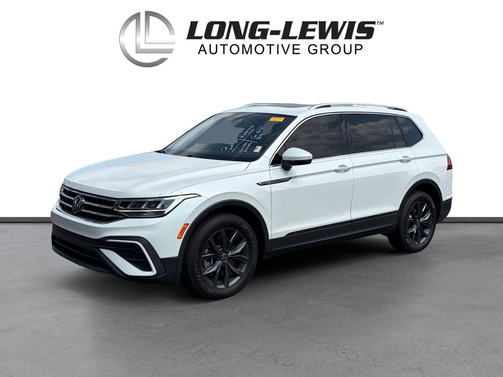 2023 Volkswagen Tiguan 2.0T SE Certified. Opal White 2.0T SE FWD 8-Speed Automatic with Tiptronic 2.0L TSI DOHC Volkswagen Certified, 3-Row Rubber Monster Mats w/Logo Kit (Set of 5), 3.33 Axle Ratio, 3rd row seats: bench, 4-Wheel Disc Brakes, 4-Wheel Independent Suspension, 6 Speakers, ABS brakes, Air Conditioning, Alloy wheels, AM/FM radio: SiriusXM with 360L, Auto-dimming Rear-View mirror, Automatic temperature control, Brake assist, Bumpers: body-color, Cargo Area Retractable Privacy Cover, Compass, Credit - Power Rear Liftgate Removed, Delay-off headlights, Driver door bin, Driver vanity mirror, Dual front impact airbags, Dual front side impact airbags, Electronic Stability Control, Emergency communication system: VW Car-Net Safe & Secure 5-year, Exterior Parking Camera Rear, First Aid Kit, Four wheel independent suspension, Front anti-roll bar, Front Bucket Seats, Front Center Armrest, Front dual zone A/C, Front reading lights, Fully automatic headlights, Heated door mirrors, Heated Front Comfort Seats, Heated front seats, Heavy Duty Trunk Liner w/VW CarGo Blocks, Illuminated entry, Leather Shift Knob, Low tire pressure warning, Occupant sensing airbag, Outside temperature display, Overhead airbag, Overhead console, Panic alarm, Panoramic Sunroof Package, Passenger door bin, Passenger vanity mirror, Perforated V-Tex Leatherette Seating Surfaces, Power door mirrors, Power driver seat, Power Liftgate, Power steering, Power windows, Radio data system, Radio: MIB3 Composition Media AM/FM/HD, Rain sensing wipers, Rear anti-roll bar, Rear reading lights, Rear seat center armrest, Rear window defroster, Rear window wiper, Remote keyless entry, Roadside Assistance Kit, Security system, Speed control, Speed-sensing steering, Split folding rear seat, Spoiler, Steering wheel mounted audio controls, Tachometer, Telescoping steering wheel, Tilt steering wheel, Traction control, Trip computer, Turn signal indicator mirrors, Variably intermittent wipers, Wheels: 18" Dark Graphite Painted 10-Spoke Alloy.