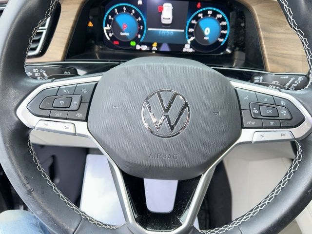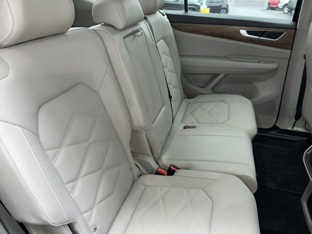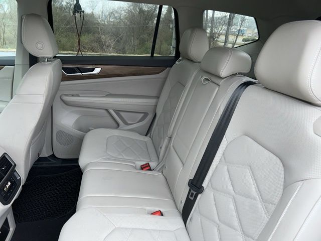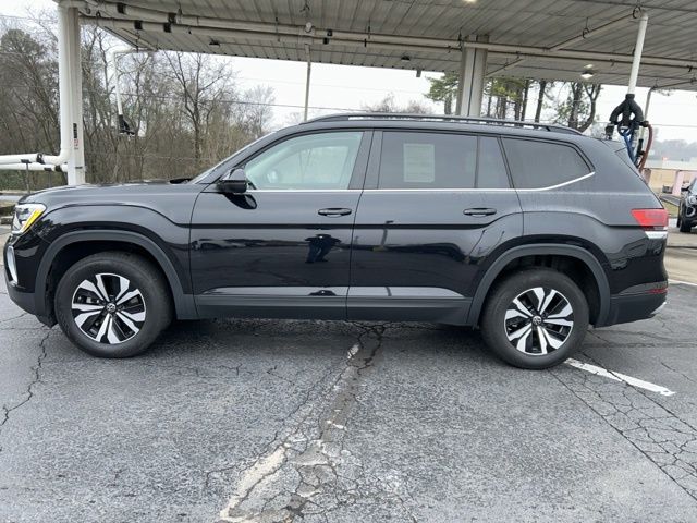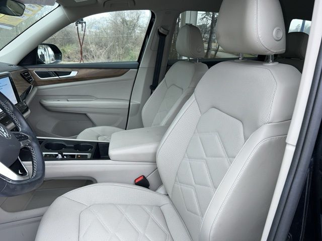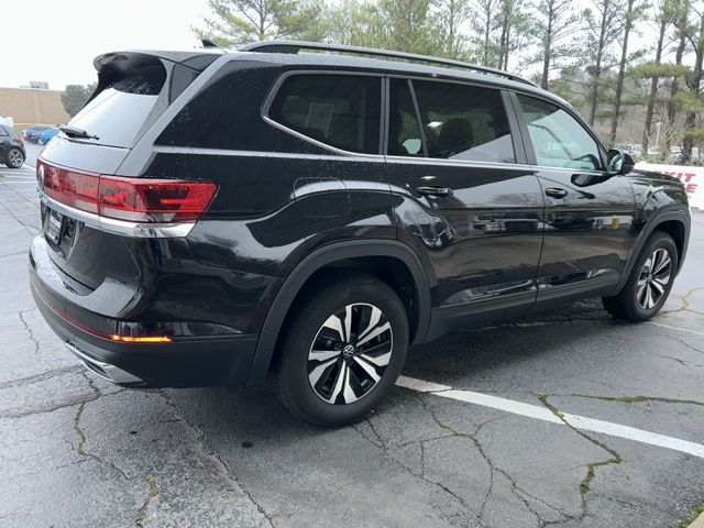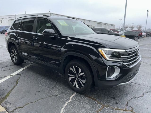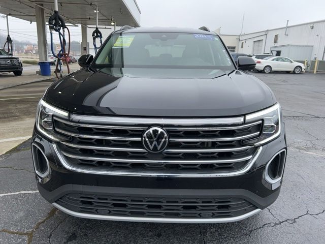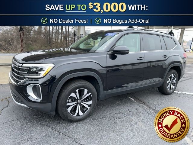 2024 Volkswagen Atlas 2.0T SE Certified. Deep Black 2.0T SE FWD 8-Speed Automatic with Tiptronic 2.0L TSI Volkswagen Certified, 3.60 Axle Ratio, 3rd row seats: split-bench, 4-Wheel Disc Brakes, 6 Speakers, ABS brakes, Air Conditioning, Alloy wheels, AM/FM radio: SiriusXM with 360L, Auto-dimming Rear-View mirror, Automatic temperature control, Brake assist, Bumpers: body-color, Compass, Delay-off headlights, Driver door bin, Driver vanity mirror, Dual front impact airbags, Dual front side impact airbags, Electronic Stability Control, Emergency communication system: VW Car-Net Safe & Secure 5-year, Exterior Parking Camera Rear, Four wheel independent suspension, Front anti-roll bar, Front Bucket Seats, Front Center Armrest, Front dual zone A/C, Front fog lights, Front reading lights, Fully automatic headlights, Heated door mirrors, Heated front seats, Heated steering wheel, Heated/Actively Ventilated Front Bucket Seats, Heavy Duty Trunk Liner w/VW CarGo Blocks, Illuminated entry, Low tire pressure warning, Occupant sensing airbag, Outside temperature display, Overhead airbag, Overhead console, Panic alarm, Passenger door bin, Passenger vanity mirror, Perforated V-Tex Leatherette Seating Surfaces, Power door mirrors, Power driver seat, Power steering, Power windows, Radio data system, Radio: MIB3 Composition Media, Rain sensing wipers, Rear air conditioning, Rear anti-roll bar, Rear reading lights, Rear seat center armrest, Rear window defroster, Rear window wiper, Remote keyless entry, Rubber Mats - Bench Seat, Rubber Mats Kit - Bench Seat, Security system, Speed control, Speed-sensing steering, Split folding rear seat, Spoiler, Standard Suspension, Steering wheel mounted audio controls, Tachometer, Telescoping steering wheel, Tilt steering wheel, Traction control, Trip computer, Turn signal indicator mirrors, Variably intermittent wipers, Ventilated front seats, VW Care, Wheels: 18" 2-Tone Machined Alloy.