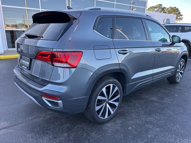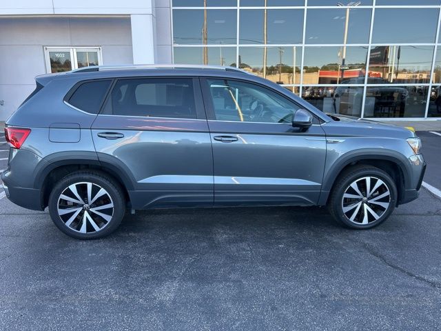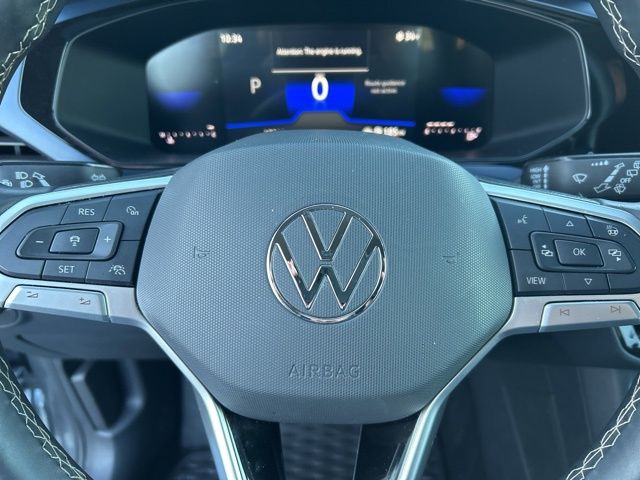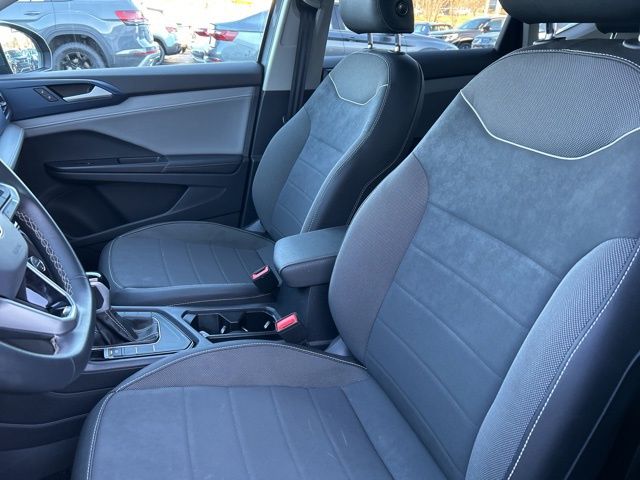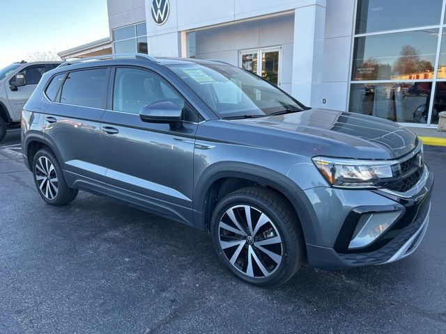 2024 Volkswagen Taos 1.5T SE Certified. Gray 1.5T SE FWD 8-Speed Automatic with Tiptronic 1.5L I4 Turbocharged DOHC 16V LEV3-SULEV30 158hp Volkswagen Certified, 3.23 Axle Ratio, 4-Wheel Disc Brakes, 6 Speakers, ABS brakes, Active Blind Spot Monitor, Air Conditioning, Alloy wheels, AM/FM radio: SiriusXM with 360L, Auto High-beam Headlights, Automatic temperature control, Brake assist, Bumpers: body-color, CloudTex & Cloth Seating Surfaces, Compass, Delay-off headlights, Driver door bin, Driver vanity mirror, Dual front impact airbags, Dual front side impact airbags, Electronic Stability Control, Emergency communication system: VW Car-Net Safe & Secure 5-year, Exterior Parking Camera Rear, Front anti-roll bar, Front Bucket Seats, Front Center Armrest, Front dual zone A/C, Front reading lights, Front Strut Rear Torsion Beam Suspension, Front wheel independent suspension, Fully automatic headlights, Heated door mirrors, Heated Front Bucket Seats, Heated front seats, Heated steering wheel, Illuminated entry, Leather Shift Knob, Low tire pressure warning, Occupant sensing airbag, Outside temperature display, Overhead airbag, Overhead console, Panic alarm, Passenger door bin, Passenger vanity mirror, Power door mirrors, Power driver seat, Power steering, Power windows, Radio data system, Radio: MIB3 Composition Media AM/FM/HD, Rain sensing wipers, Rear anti-roll bar, Rear seat center armrest, Rear window defroster, Rear window wiper, Remote keyless entry, Roof rack: rails only, Security system, Speed control, Speed-sensing steering, Split folding rear seat, Spoiler, Steering wheel mounted audio controls, Tachometer, Telescoping steering wheel, Tilt steering wheel, Traction control, Trip computer, Variably intermittent wipers, Wheels: 18" 2-Tone Machined Alloy.