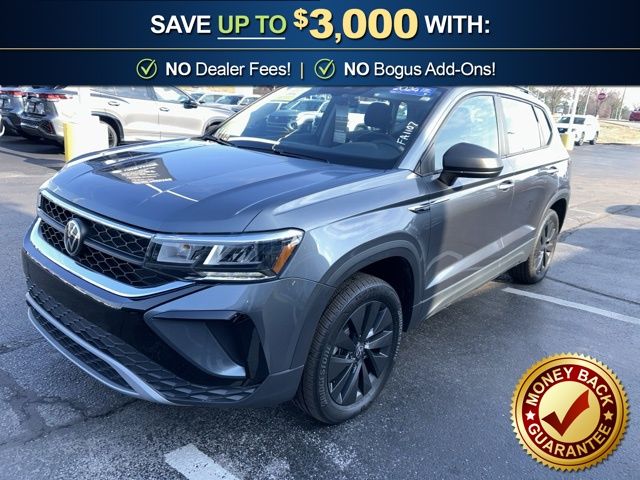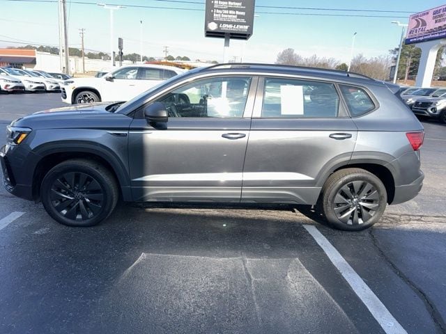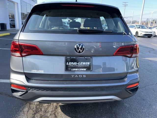 2024 Volkswagen Taos 1.5T S Certified. Platinum Gray Metallic 1.5T S FWD 8-Speed Automatic with Tiptronic 1.5L I4 Turbocharged DOHC 16V LEV3-SULEV30 158hp Volkswagen Certified, 3.23 Axle Ratio, 4-Wheel Disc Brakes, 6 Speakers, ABS brakes, Active Blind Spot Monitor, Air Conditioning, Alloy wheels, AM/FM radio, Auto High-beam Headlights, Brake assist, Bumpers: body-color, Cloth Seating Surfaces, Compass, Delay-off headlights, Driver door bin, Driver vanity mirror, Dual front impact airbags, Dual front side impact airbags, Electronic Stability Control, Emergency communication system: VW Car-Net Safe & Secure 5-year, Exterior Parking Camera Rear, Front anti-roll bar, Front Bucket Seats, Front Center Armrest, Front reading lights, Front Strut Rear Torsion Beam Suspension, Front wheel independent suspension, Fully automatic headlights, Heated steering wheel, Illuminated entry, Leather Shift Knob, Low tire pressure warning, Occupant sensing airbag, Outside temperature display, Overhead airbag, Overhead console, Panic alarm, Passenger door bin, Passenger vanity mirror, Power door mirrors, Power steering, Power windows, Radio data system, Radio: Composition Color AM/FM, Rain sensing wipers, Rear anti-roll bar, Rear seat center armrest, Rear window defroster, Rear window wiper, Remote keyless entry, Roof rack: rails only, Rubber Mats Kit (SNM), Speed control, Speed-sensing steering, Split folding rear seat, Spoiler, Steering wheel mounted audio controls, Tachometer, Telescoping steering wheel, Tilt steering wheel, Traction control, Trip computer, Variably intermittent wipers, Wheels: 17" Silver Painted Alloy.