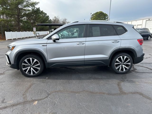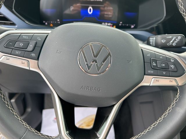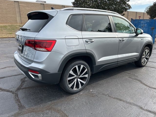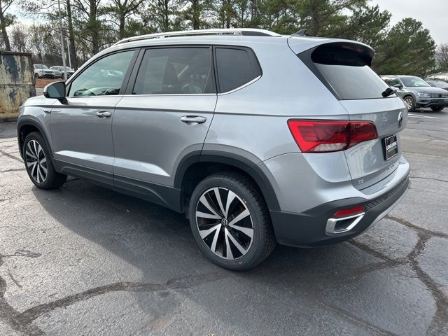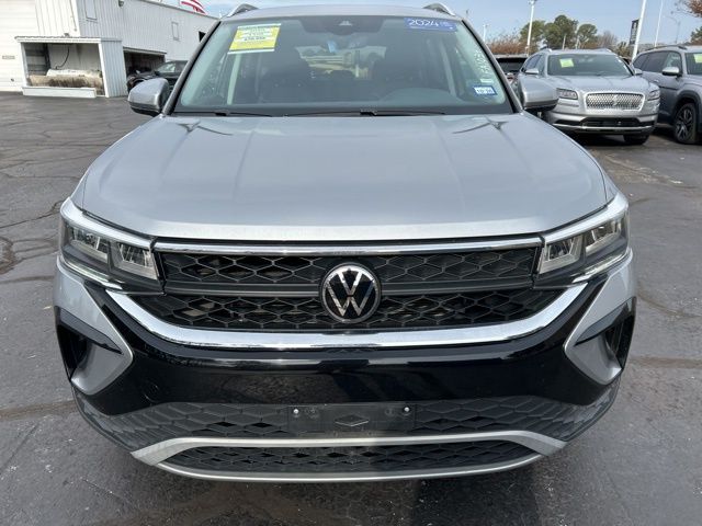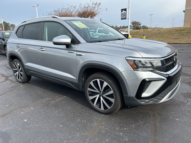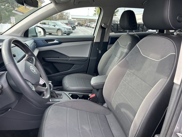 2024 Volkswagen Taos 1.5T SE Certified. Silver 1.5T SE FWD 8-Speed Automatic with Tiptronic 1.5L I4 Turbocharged DOHC 16V LEV3-SULEV30 158hp Volkswagen Certified, 3.23 Axle Ratio, 4-Wheel Disc Brakes, 6 Speakers, ABS brakes, Active Blind Spot Monitor, Air Conditioning, Alloy wheels, AM/FM radio: SiriusXM with 360L, Auto High-beam Headlights, Automatic temperature control, Brake assist, Bumpers: body-color, CloudTex & Cloth Seating Surfaces, Compass, Delay-off headlights, Driver door bin, Driver vanity mirror, Dual front impact airbags, Dual front side impact airbags, Electronic Stability Control, Emergency communication system: VW Car-Net Safe & Secure 5-year, Exterior Parking Camera Rear, Front anti-roll bar, Front Bucket Seats, Front Center Armrest, Front dual zone A/C, Front reading lights, Front Strut Rear Torsion Beam Suspension, Front wheel independent suspension, Fully automatic headlights, Heated door mirrors, Heated Front Bucket Seats, Heated front seats, Heated steering wheel, Illuminated entry, Leather Shift Knob, Low tire pressure warning, Occupant sensing airbag, Outside temperature display, Overhead airbag, Overhead console, Panic alarm, Passenger door bin, Passenger vanity mirror, Power door mirrors, Power driver seat, Power steering, Power windows, Radio data system, Radio: MIB3 Composition Media AM/FM/HD, Rain sensing wipers, Rear anti-roll bar, Rear seat center armrest, Rear window defroster, Rear window wiper, Remote keyless entry, Roof rack: rails only, Security system, Speed control, Speed-sensing steering, Split folding rear seat, Spoiler, Steering wheel mounted audio controls, Tachometer, Telescoping steering wheel, Tilt steering wheel, Traction control, Trip computer, Variably intermittent wipers, Wheels: 18" 2-Tone Machined Alloy.