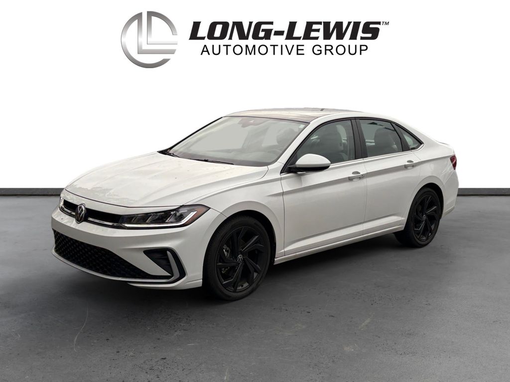 2025 Volkswagen Jetta 1.5T SE Certified. Opal White Pearl 1.5T SE FWD 8-Speed Automatic with Tiptronic 1.5L I-4 DI DOHC Turbocharged Volkswagen Certified, Atlantic Blue/Storm Gray Premium Synthetic, 4-Wheel Disc Brakes, 6 Speakers, ABS brakes, Active Blind Spot Monitor, Air Conditioning, Alloy wheels, AM/FM radio: SiriusXM with 360L, Auto-dimming Rear-View mirror, Auto-Dimming Rearview Mirror w/HomeLink Connect, Automatic temperature control, Black Trunk Lid Lip Spoiler, Black Wheel Package, Brake assist, Bumpers: body-color, CloudTex & V-Tex Leatherette Seat Trim, Delay-off headlights, Driver door bin, Driver vanity mirror, Dual front impact airbags, Dual front side impact airbags, Electronic Stability Control, Emergency communication system: VW Car-Net Safe & Secure 5-year, Exterior Parking Camera Rear, First Aid Kit, Front anti-roll bar, Front Bucket Seats, Front Center Armrest, Front Center Armrest Storage Organizing Trays, Front dual zone A/C, Front wheel independent suspension, Fully automatic headlights, Heated door mirrors, Heated Front Seats, Heated front seats, Heavy Duty Trunk Liner w/VW CarGo Blocks, Illuminated entry, Leather Shift Knob, Leather steering wheel, Low tire pressure warning, Occupant sensing airbag, Outside temperature display, Overhead airbag, Overhead console, Panic alarm, Passenger door bin, Passenger vanity mirror, Power door mirrors, Power driver seat, Power steering, Power Tilting & Sliding Sunroof, Power windows, Radio data system, Radio: MIB3 Composition Media w/8" Touchscreen, Rain sensing wipers, Rear anti-roll bar, Rear reading lights, Rear seat center armrest, Rear window defroster, Remote keyless entry, Rubber Monster Mats Kit (Set of 4), Speed control, Speed-sensing steering, Split folding rear seat, Steering wheel mounted audio controls, Sunroof Package, Tachometer, Telescoping steering wheel, Tilt steering wheel, Traction control, Trip computer, Variably intermittent wipers, VW Care, Wheels: 17" Twin 5-Spoke 2-Tone Machined Alloy, Wheels: 18" Dark Graphite Painted Alloy, Atlantic Blue/Storm Gray Premium Synthetic.