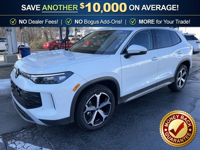 2025 Volkswagen Tiguan 2.0T SE Certified. Pure White 2.0T SE FWD 8-Speed Automatic 2.0L TSI DOHC Volkswagen Certified, 4-Wheel Disc Brakes, 4-Wheel Independent Suspension, 7 Speakers, ABS brakes, Air Conditioning, Alloy wheels, AM/FM radio: SiriusXM with 360L, Auto High-beam Headlights, Auto-dimming Rear-View mirror, Automatic temperature control, Brake assist, Bumpers: body-color, Compass, Delay-off headlights, Driver door bin, Driver vanity mirror, Dual front impact airbags, Dual front side impact airbags, Electronic Stability Control, Emergency communication system: VW Car-Net Safe & Secure 5-year, Exterior Parking Camera Rear, Four wheel independent suspension, Front anti-roll bar, Front Bucket Seats, Front Center Armrest, Front dual zone A/C, Front reading lights, Fully automatic headlights, Heated door mirrors, Heated Front Seats, Heated front seats, Illuminated entry, Knee airbag, Leather Shift Knob, Low tire pressure warning, Occupant sensing airbag, Outside temperature display, Overhead airbag, Overhead console, Panic alarm, Passenger door bin, Passenger vanity mirror, Perforated V-Tex Leatherette Seating Surfaces, Power door mirrors, Power driver seat, Power Liftgate, Power steering, Power windows, Radio data system, Radio: MIB4 Composition Media Touchscreen AM/FM, Rain sensing wipers, Rear anti-roll bar, Rear reading lights, Rear seat center armrest, Rear side impact airbag, Rear window defroster, Rear window wiper, Remote keyless entry, Security system, Speed control, Speed-sensing steering, Split folding rear seat, Spoiler, Steering wheel mounted audio controls, Tachometer, Telescoping steering wheel, Tilt steering wheel, Traction control, Trip computer, Turn signal indicator mirrors, Variably intermittent wipers, Wheels: 19" 2-Tone Machined Alloy.