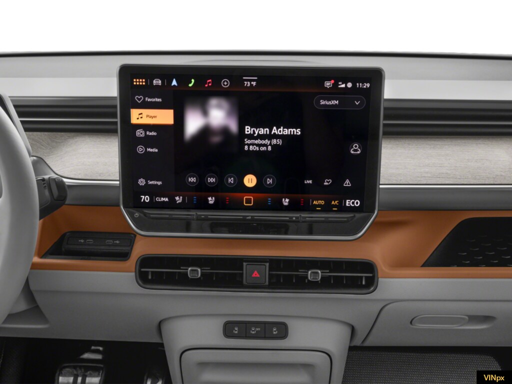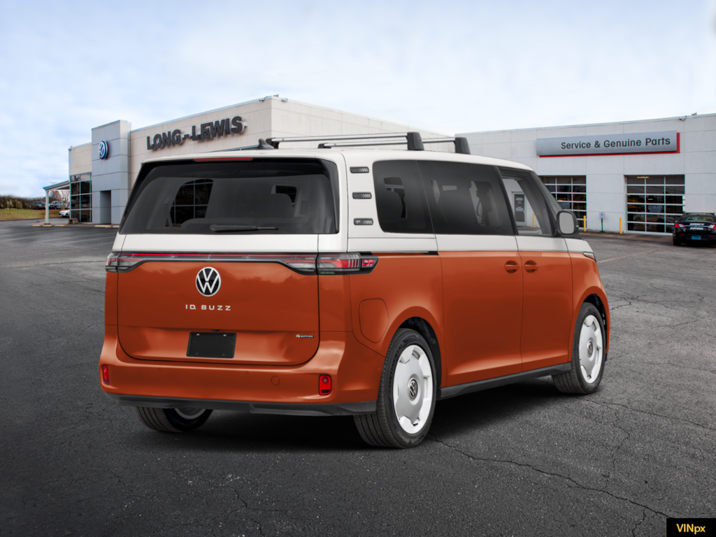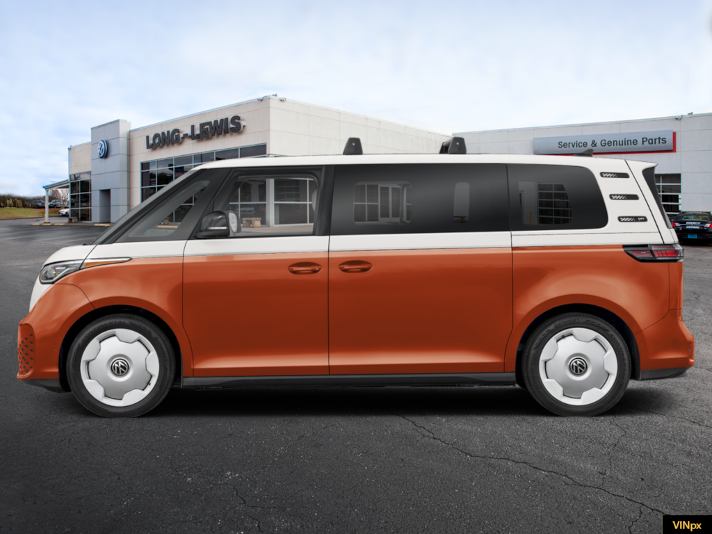 Energetic Orange 2025 Volkswagen ID. Buzz Pro S Plus NVT RWD Single-Speed Automatic Electric Motor 14 Speakers, 3rd row seats: split-bench, ABS brakes, Air Conditioning, Alloy wheels, Auto High-beam Headlights, Auto-dimming Rear-View mirror, Automatic temperature control, Brake assist, Bumpers: body-color, Delay-off headlights, Driver door bin, Driver vanity mirror, Driver's Seat Mounted Armrest, Dual front impact airbags, Dual front side impact airbags, Electronic Stability Control, Emergency communication system: VW Car-Net Safe & Secure 5-year, Exterior Parking Camera Rear, Four wheel independent suspension, Front anti-roll bar, Front Bucket Seats, Front dual zone A/C, Front fog lights, Front reading lights, Fully automatic headlights, harman/kardon® Speakers, Heads-Up Display, Heated & Actively Ventilated Front Seats, Heated door mirrors, Heated front seats, Heated rear seats, Heated steering wheel, Illuminated entry, Leather steering wheel, Low tire pressure warning, Memory seat, Navigation System, Occupant sensing airbag, Outside temperature display, Overhead airbag, Panic alarm, Passenger door bin, Passenger seat mounted armrest, Passenger vanity mirror, Perforated V-Tex Leatherette Seating Surfaces, Power door mirrors, Power driver seat, Power Liftgate, Power passenger seat, Power steering, Power windows, Radio data system, Radio: Discover Pro Max w/Touchscreen Navigation, Rain sensing wipers, Rear air conditioning, Rear anti-roll bar, Rear reading lights, Rear window defroster, Rear window wiper, Remote keyless entry, Speed control, Speed-sensing steering, Split folding rear seat, Spoiler, Steering wheel mounted audio controls, TBD Axle Ratio, Telescoping steering wheel, Tilt steering wheel, Traction control, Trip computer, Turn signal indicator mirrors, Variably intermittent wipers, Ventilated front seats, Wheels: 20" Two-Tone Disc Alloy.