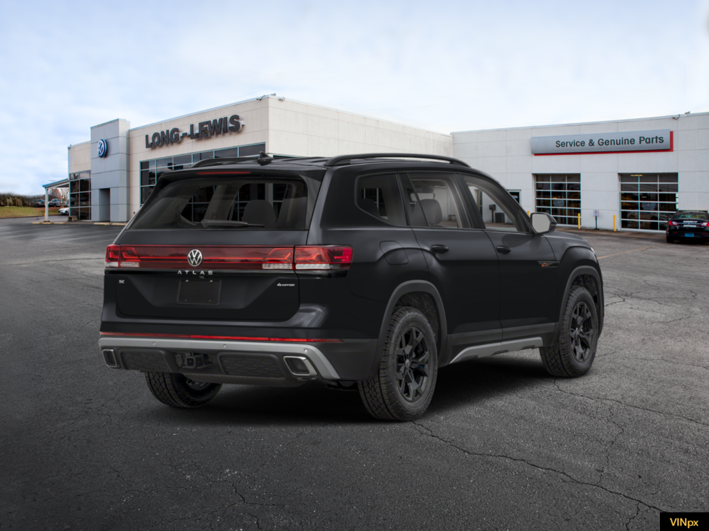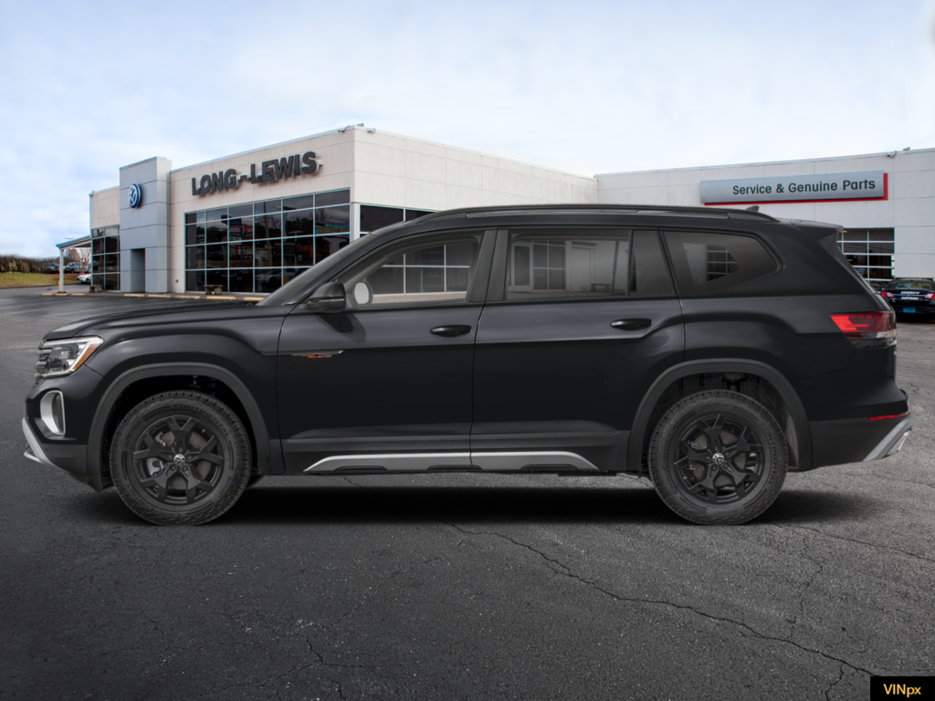 deep black pearl 2026 Volkswagen Atlas 2.0T Peak Edition NVT AWD 8-Speed Automatic with Tiptronic 2.0L TSI 3rd row seats: split-bench, 4-Wheel Disc Brakes, 4-Wheel Independent Suspension, 6 Speakers, ABS brakes, Air Conditioning, Alloy wheels, AM/FM radio: SiriusXM with 360L, Auto High-beam Headlights, Auto-dimming Rear-View mirror, Automatic temperature control, Brake assist, Bumpers: body-color, Compass, Delay-off headlights, Driver door bin, Driver vanity mirror, Dual front impact airbags, Dual front side impact airbags, Electronic Stability Control, Emergency communication system: VW Car-Net Safe & Secure 5-year, Exterior Parking Camera Rear, Four wheel independent suspension, Front anti-roll bar, Front Bucket Seats, Front Center Armrest, Front dual zone A/C, Front fog lights, Front reading lights, Fully automatic headlights, Garage door transmitter: Homelink, Heated and Actively Ventilated Front Bucket Seats, Heated door mirrors, Heated front seats, Heated steering wheel, Illuminated entry, Low tire pressure warning, Occupant sensing airbag, Outside temperature display, Overhead airbag, Overhead console, Panic alarm, Passenger door bin, Passenger vanity mirror, Perforated V-Tex Leatherette Seating Surfaces, Power door mirrors, Power driver seat, Power Liftgate, Power moonroof: Panoramic, Power steering, Power windows, Radio data system, Radio: MIB3 Composition Media, Rain sensing wipers, Rear air conditioning, Rear anti-roll bar, Rear reading lights, Rear seat center armrest, Rear window defroster, Rear window wiper, Remote keyless entry, Security system, Speed control, Speed-sensing steering, Split folding rear seat, Spoiler, Steering wheel mounted audio controls, Tachometer, Telescoping steering wheel, Tilt steering wheel, Traction control, Trip computer, Turn signal indicator mirrors, Variably intermittent wipers, Ventilated front seats, Wheels: 18" Black Painted 5-Spoke Alloy.