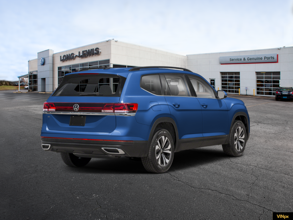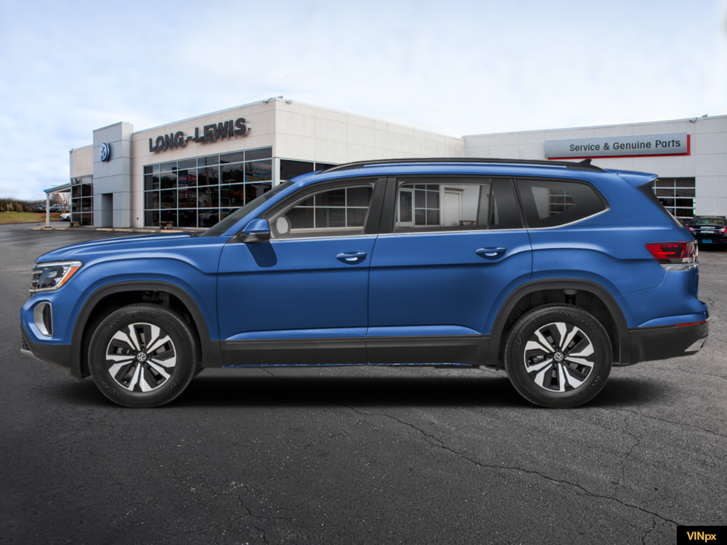 mountain lake blue metallic 2026 Volkswagen Atlas 2.0T SE NVT FWD 8-Speed Automatic with Tiptronic 2.0L TSI 3rd row seats: split-bench, 4-Wheel Disc Brakes, 4-Wheel Independent Suspension, 6 Speakers, ABS brakes, Air Conditioning, Alloy wheels, AM/FM radio: SiriusXM with 360L, Auto High-beam Headlights, Auto-dimming Rear-View mirror, Automatic temperature control, Brake assist, Bumpers: body-color, Delay-off headlights, Driver door bin, Driver vanity mirror, Dual front impact airbags, Dual front side impact airbags, Electronic Stability Control, Emergency communication system: VW Car-Net Safe & Secure 5-year, Exterior Parking Camera Rear, Four wheel independent suspension, Front anti-roll bar, Front Bucket Seats, Front Center Armrest, Front dual zone A/C, Front fog lights, Front reading lights, Fully automatic headlights, Heated and Actively Ventilated Front Bucket Seats, Heated door mirrors, Heated front seats, Heated steering wheel, Illuminated entry, Low tire pressure warning, Occupant sensing airbag, Outside temperature display, Overhead airbag, Overhead console, Panic alarm, Passenger door bin, Passenger vanity mirror, Perforated V-Tex Leatherette Seating Surfaces, Power door mirrors, Power driver seat, Power steering, Power windows, Radio data system, Radio: MIB3 Composition Media, Rain sensing wipers, Rear air conditioning, Rear anti-roll bar, Rear reading lights, Rear seat center armrest, Rear window defroster, Rear window wiper, Remote keyless entry, Security system, Speed control, Speed-sensing steering, Split folding rear seat, Spoiler, Steering wheel mounted audio controls, Tachometer, Telescoping steering wheel, Tilt steering wheel, Traction control, Trip computer, Turn signal indicator mirrors, Variably intermittent wipers, Ventilated front seats, Wheels: 18" 2-Tone Machined Alloy.