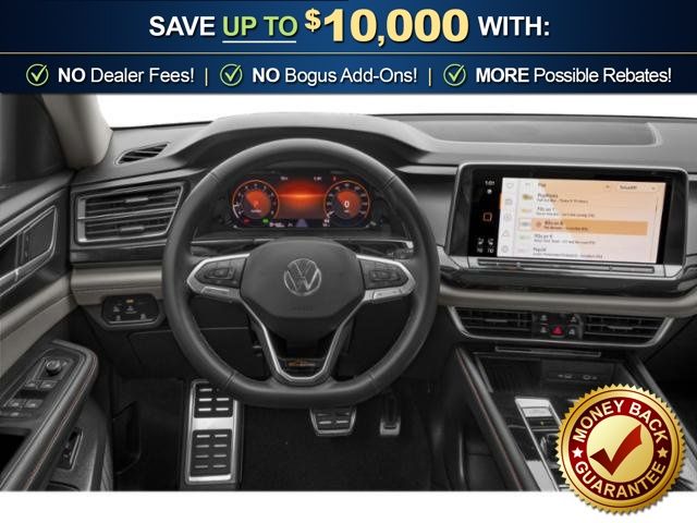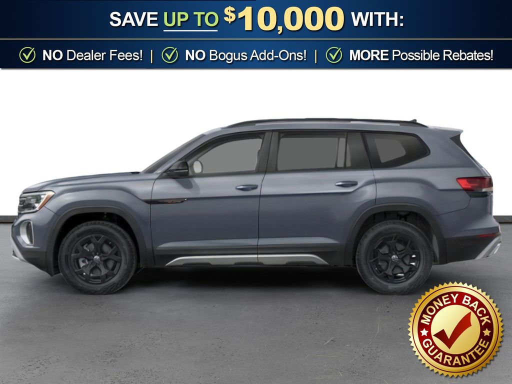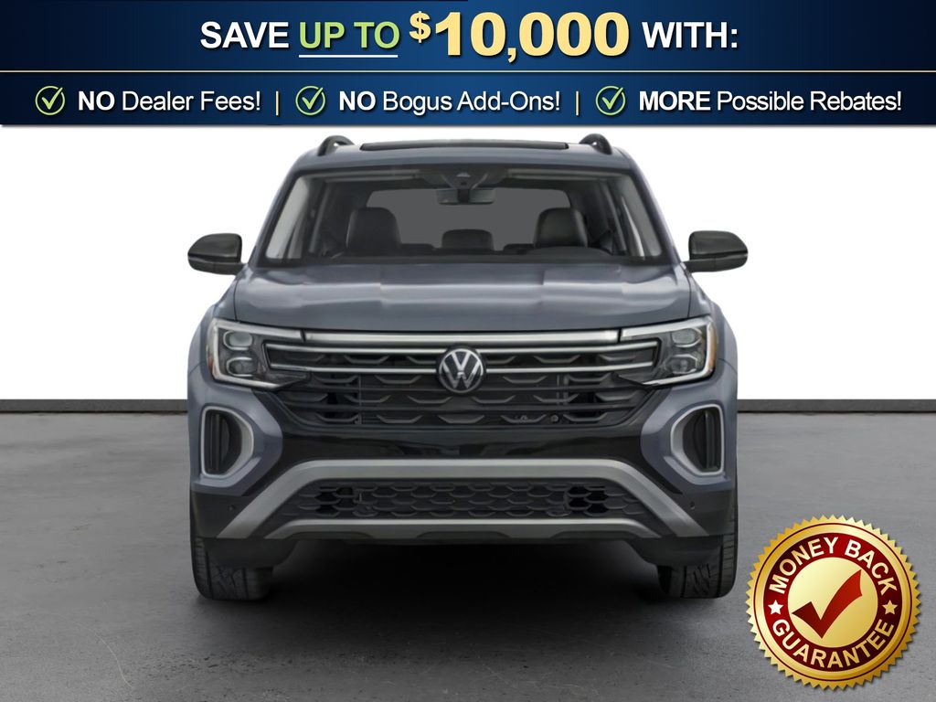 Pure Gray 2026 Volkswagen Atlas 2.0T Peak Edition NVT AWD 8-Speed Automatic with Tiptronic 2.0L TSI 3rd row seats: split-bench, 4-Wheel Disc Brakes, 4-Wheel Independent Suspension, 6 Speakers, ABS brakes, Air Conditioning, Alloy wheels, AM/FM radio: SiriusXM with 360L, Auto High-beam Headlights, Auto-dimming Rear-View mirror, Automatic temperature control, Brake assist, Bumpers: body-color, Compass, Delay-off headlights, Driver door bin, Driver vanity mirror, Dual front impact airbags, Dual front side impact airbags, Electronic Stability Control, Emergency communication system: VW Car-Net Safe & Secure 5-year, Exterior Parking Camera Rear, Four wheel independent suspension, Front anti-roll bar, Front Bucket Seats, Front Center Armrest, Front dual zone A/C, Front fog lights, Front reading lights, Fully automatic headlights, Garage door transmitter: Homelink, Heated and Actively Ventilated Front Bucket Seats, Heated door mirrors, Heated front seats, Heated steering wheel, Illuminated entry, Low tire pressure warning, Occupant sensing airbag, Outside temperature display, Overhead airbag, Overhead console, Panic alarm, Passenger door bin, Passenger vanity mirror, Perforated V-Tex Leatherette Seating Surfaces, Power door mirrors, Power driver seat, Power Liftgate, Power moonroof: Panoramic, Power steering, Power windows, Radio data system, Radio: MIB3 Composition Media, Rain sensing wipers, Rear air conditioning, Rear anti-roll bar, Rear reading lights, Rear seat center armrest, Rear window defroster, Rear window wiper, Remote keyless entry, Security system, Speed control, Speed-sensing steering, Split folding rear seat, Spoiler, Steering wheel mounted audio controls, Tachometer, Telescoping steering wheel, Tilt steering wheel, Traction control, Trip computer, Turn signal indicator mirrors, Variably intermittent wipers, Ventilated front seats, Wheels: 18" Black Painted 5-Spoke Alloy.