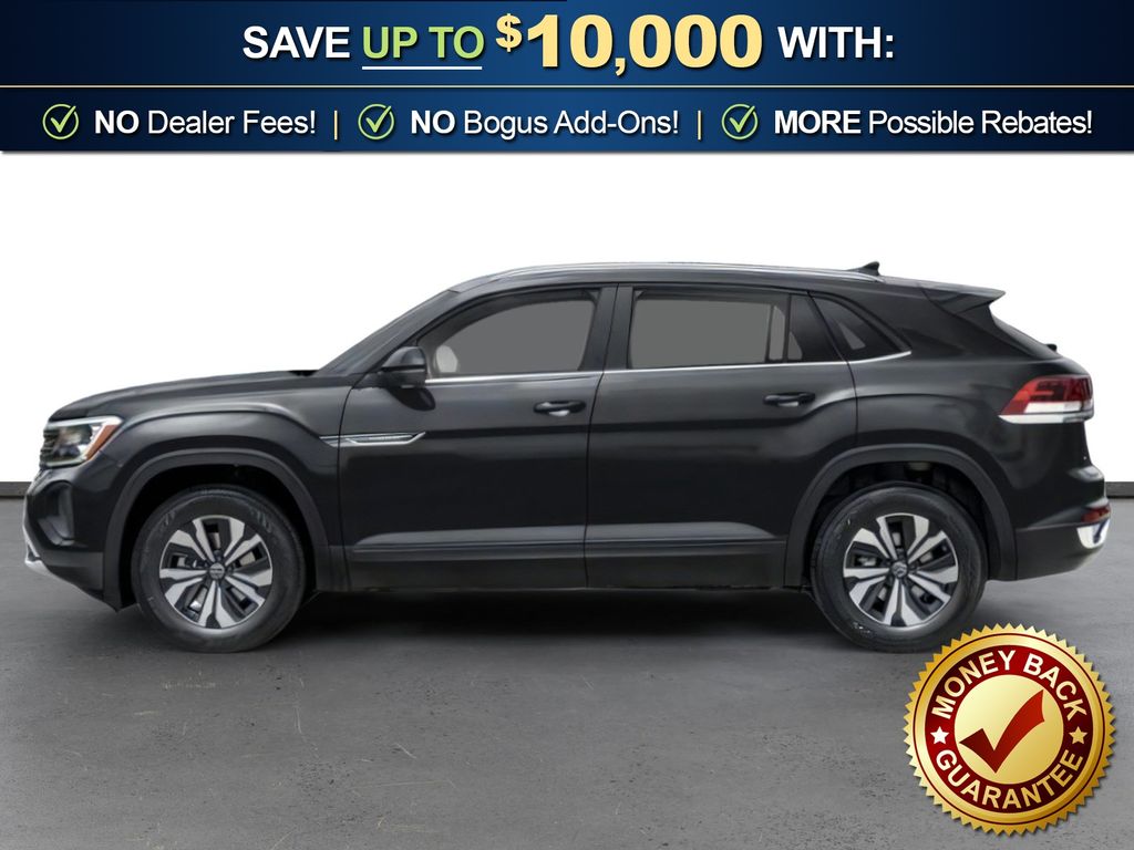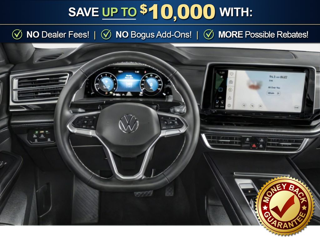 Deep Black Pearl 2026 Volkswagen Atlas Cross Sport 2.0T SE NVT FWD 8-Speed Automatic with Tiptronic 2.0L TSI 4-Wheel Disc Brakes, 4-Wheel Independent Suspension, 6 Speakers, ABS brakes, Air Conditioning, Alloy wheels, AM/FM radio: SiriusXM with 360L, Auto High-beam Headlights, Auto-dimming Rear-View mirror, Automatic temperature control, Brake assist, Bumpers: body-color, Delay-off headlights, Driver door bin, Driver vanity mirror, Dual front impact airbags, Dual front side impact airbags, Electronic Stability Control, Emergency communication system: VW Car-Net Safe & Secure 5-year, Exterior Parking Camera Rear, Four wheel independent suspension, Front anti-roll bar, Front Bucket Seats, Front Center Armrest, Front dual zone A/C, Front fog lights, Front reading lights, Fully automatic headlights, Heated and Actively Ventilated Front Bucket Seats, Heated door mirrors, Heated front seats, Heated steering wheel, Illuminated entry, Low tire pressure warning, Occupant sensing airbag, Outside temperature display, Overhead airbag, Overhead console, Panic alarm, Passenger door bin, Passenger vanity mirror, Perforated V-Tex Leatherette Seating Surfaces, Power door mirrors, Power driver seat, Power steering, Power windows, Radio data system, Radio: MIB3 Composition Media, Rain sensing wipers, Rear anti-roll bar, Rear reading lights, Rear seat center armrest, Rear window defroster, Rear window wiper, Remote keyless entry, Security system, Speed control, Speed-sensing steering, Split folding rear seat, Spoiler, Steering wheel mounted audio controls, Tachometer, Telescoping steering wheel, Tilt steering wheel, Traction control, Trip computer, Turn signal indicator mirrors, Variably intermittent wipers, Ventilated front seats, Wheels: 18" 5-Spoke 2-Tone Machined Alloy.