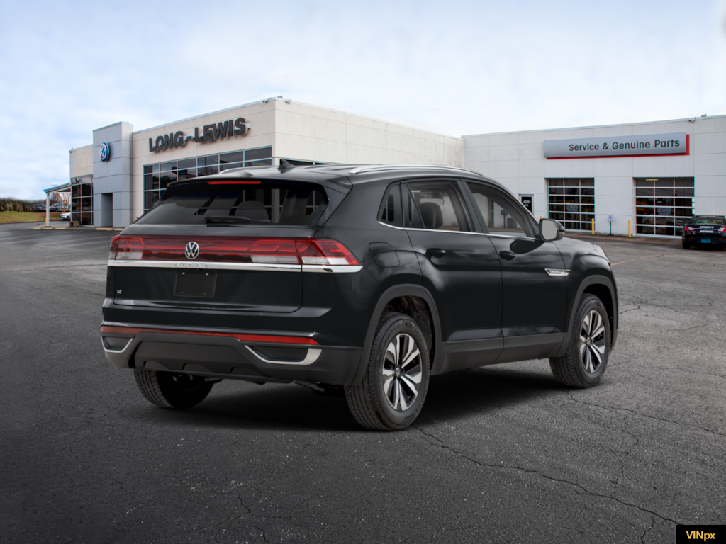 deep black pearl 2026 Volkswagen Atlas Cross Sport 2.0T SE NVT FWD 8-Speed Automatic with Tiptronic 2.0L TSI 4-Wheel Disc Brakes, 4-Wheel Independent Suspension, 6 Speakers, ABS brakes, Air Conditioning, Alloy wheels, AM/FM radio: SiriusXM with 360L, Auto High-beam Headlights, Auto-dimming Rear-View mirror, Automatic temperature control, Brake assist, Bumpers: body-color, Delay-off headlights, Driver door bin, Driver vanity mirror, Dual front impact airbags, Dual front side impact airbags, Electronic Stability Control, Emergency communication system: VW Car-Net Safe & Secure 5-year, Exterior Parking Camera Rear, Four wheel independent suspension, Front anti-roll bar, Front Bucket Seats, Front Center Armrest, Front dual zone A/C, Front fog lights, Front reading lights, Fully automatic headlights, Heated and Actively Ventilated Front Bucket Seats, Heated door mirrors, Heated front seats, Heated steering wheel, Illuminated entry, Low tire pressure warning, Occupant sensing airbag, Outside temperature display, Overhead airbag, Overhead console, Panic alarm, Passenger door bin, Passenger vanity mirror, Perforated V-Tex Leatherette Seating Surfaces, Power door mirrors, Power driver seat, Power steering, Power windows, Radio data system, Radio: MIB3 Composition Media, Rain sensing wipers, Rear anti-roll bar, Rear reading lights, Rear seat center armrest, Rear window defroster, Rear window wiper, Remote keyless entry, Security system, Speed control, Speed-sensing steering, Split folding rear seat, Spoiler, Steering wheel mounted audio controls, Tachometer, Telescoping steering wheel, Tilt steering wheel, Traction control, Trip computer, Turn signal indicator mirrors, Variably intermittent wipers, Ventilated front seats, Wheels: 18" 5-Spoke 2-Tone Machined Alloy.