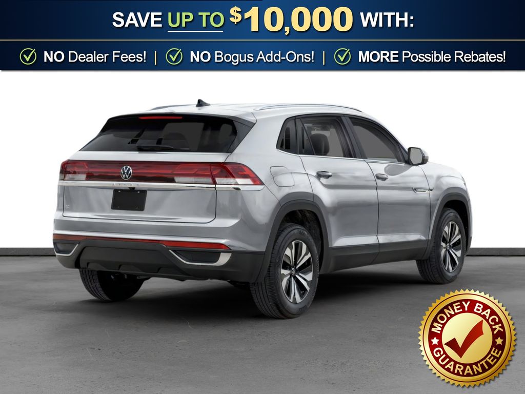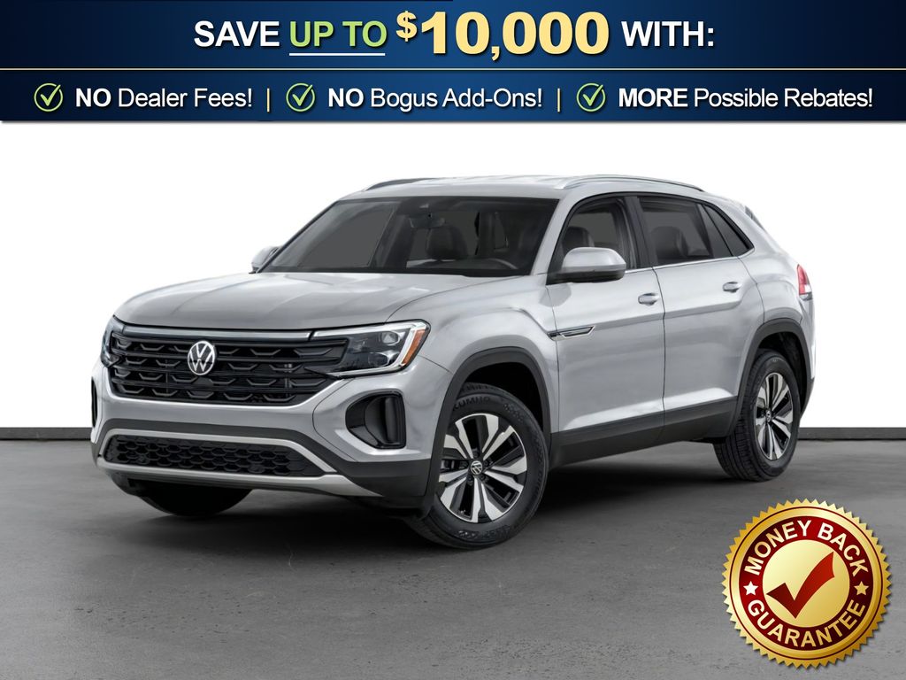 silver mist metallic 2026 Volkswagen Atlas Cross Sport 2.0T SE w/Technology NVT AWD 8-Speed Automatic with Tiptronic 2.0L TSI 4-Wheel Disc Brakes, 4-Wheel Independent Suspension, 6 Speakers, ABS brakes, Air Conditioning, Alloy wheels, AM/FM radio: SiriusXM with 360L, Auto High-beam Headlights, Auto-dimming Rear-View mirror, Automatic temperature control, Brake assist, Bumpers: body-color, Compass, Delay-off headlights, Driver door bin, Driver vanity mirror, Dual front impact airbags, Dual front side impact airbags, Electronic Stability Control, Emergency communication system: VW Car-Net Safe & Secure 5-year, Exterior Parking Camera Rear, Four wheel independent suspension, Front anti-roll bar, Front Bucket Seats, Front Center Armrest, Front dual zone A/C, Front fog lights, Front reading lights, Fully automatic headlights, Garage door transmitter: HomeLink, Heated and Actively Ventilated Front Bucket Seats, Heated door mirrors, Heated front seats, Heated steering wheel, Illuminated entry, Low tire pressure warning, Occupant sensing airbag, Outside temperature display, Overhead airbag, Overhead console, Panic alarm, Passenger door bin, Passenger vanity mirror, Perforated V-Tex Leatherette Seating Surfaces, Power door mirrors, Power driver seat, Power Liftgate, Power steering, Power windows, Radio data system, Radio: MIB3 Composition Media, Rain sensing wipers, Rear anti-roll bar, Rear reading lights, Rear seat center armrest, Rear window defroster, Rear window wiper, Remote keyless entry, Security system, Speed control, Speed-sensing steering, Split folding rear seat, Spoiler, Steering wheel mounted audio controls, Tachometer, Telescoping steering wheel, Tilt steering wheel, Traction control, Trip computer, Turn signal indicator mirrors, Variably intermittent wipers, Ventilated front seats, Wheels: 20" 5-Spoke 2-Tone Machined Alloy.