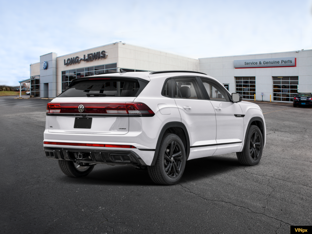 opal white pearl 2026 Volkswagen Atlas Cross Sport 2.0T SEL R-Line Black NVT AWD 8-Speed Automatic with Tiptronic 2.0L TSI 4-Wheel Disc Brakes, 4-Wheel Independent Suspension, 6 Speakers, ABS brakes, Air Conditioning, Alloy wheels, AM/FM radio: SiriusXM with 360L, Auto High-beam Headlights, Auto-dimming Rear-View mirror, Automatic temperature control, Brake assist, Bumpers: body-color, Compass, Delay-off headlights, Driver door bin, Driver vanity mirror, Dual front impact airbags, Dual front side impact airbags, Electronic Stability Control, Emergency communication system: VW Car-Net Safe & Secure 5-year, Exterior Parking Camera Rear, Four wheel independent suspension, Front anti-roll bar, Front Bucket Seats, Front Center Armrest, Front dual zone A/C, Front fog lights, Front reading lights, Fully automatic headlights, Garage door transmitter: HomeLink, Heads-Up Display, Heated and Actively Ventilated Front Bucket Seats, Heated door mirrors, Heated front seats, Heated rear seats, Heated steering wheel, Illuminated entry, Low tire pressure warning, Memory seat, Navigation System, Occupant sensing airbag, Outside temperature display, Overhead airbag, Overhead console, Panic alarm, Passenger door bin, Passenger vanity mirror, Perforated Vienna Leather Seating Surfaces, Power door mirrors, Power driver seat, Power Liftgate, Power moonroof: Panoramic, Power passenger seat, Power steering, Power windows, Radio data system, Radio: MIB3 Discover Pro with Navigation, Rain sensing wipers, Rear anti-roll bar, Rear reading lights, Rear seat center armrest, Rear window defroster, Rear window wiper, Remote keyless entry, Security system, Speed control, Speed-sensing steering, Split folding rear seat, Spoiler, Steering wheel mounted audio controls, Tachometer, Telescoping steering wheel, Tilt steering wheel, Traction control, Trip computer, Turn signal indicator mirrors, Variably intermittent wipers, Ventilated front seats, Wheels: 20" Black Painted Alloy.