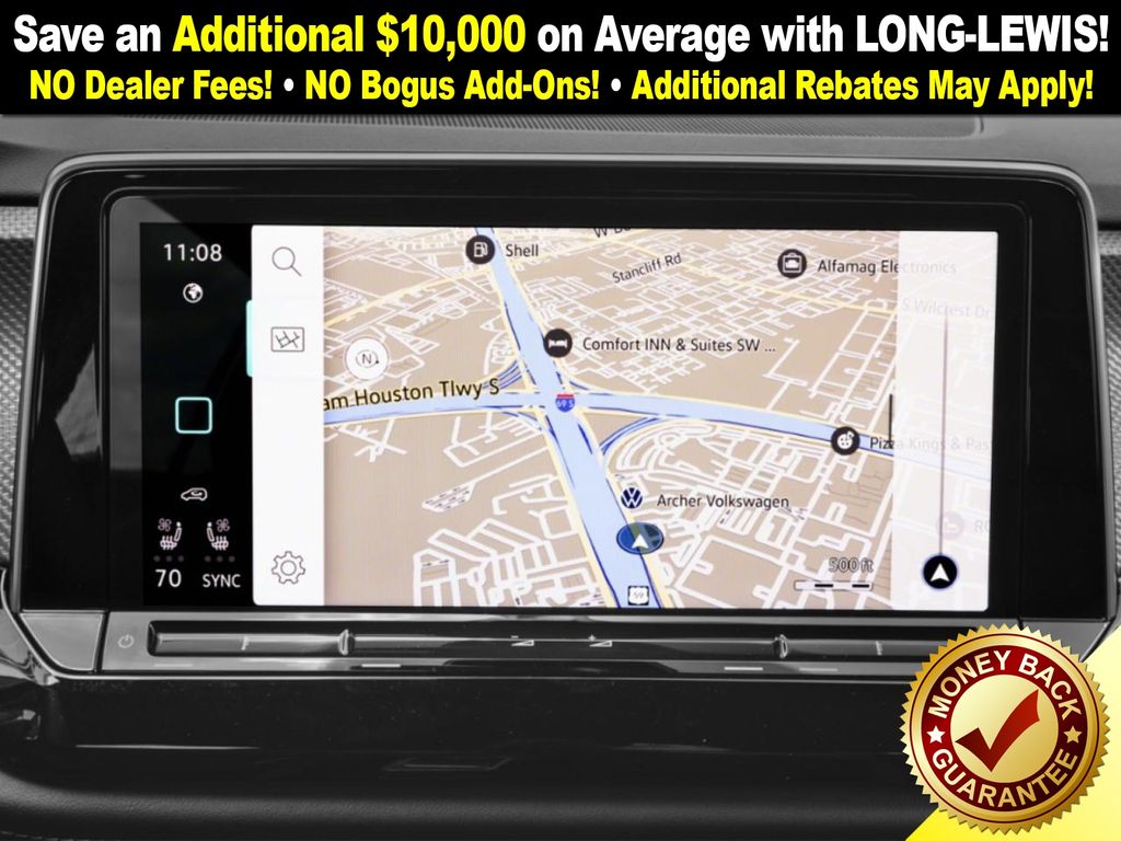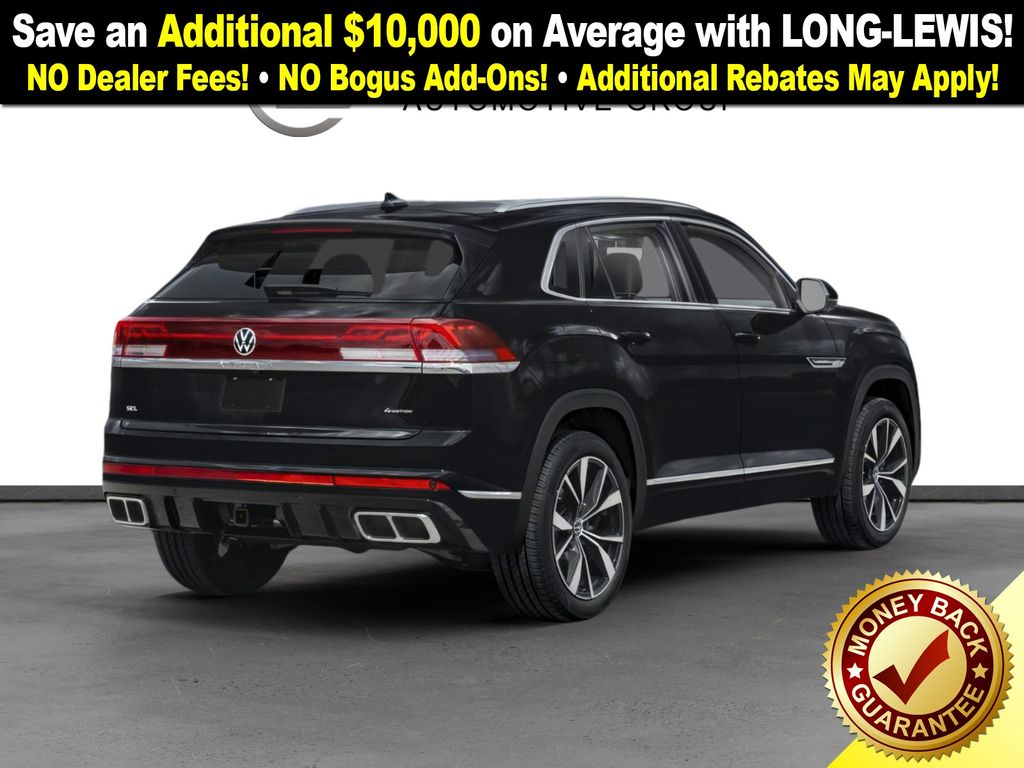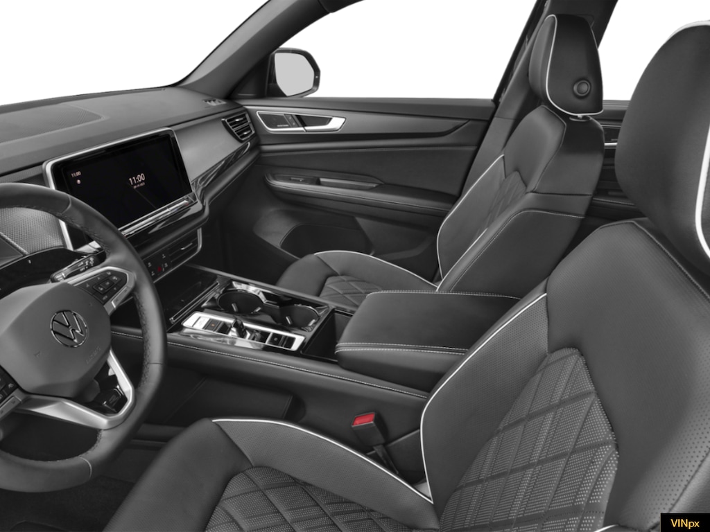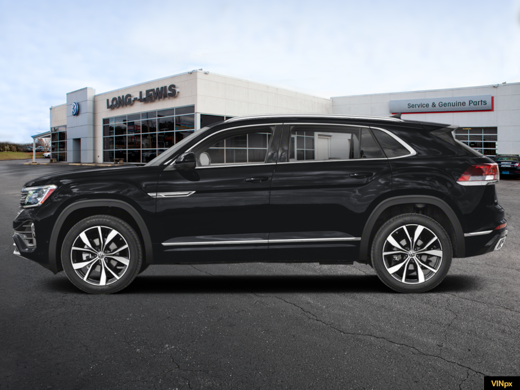 deep black pearl 2026 Volkswagen Atlas Cross Sport 2.0T SEL Premium R-Line NVT AWD 8-Speed Automatic with Tiptronic 2.0L TSI 10 Speakers, 4-Wheel Disc Brakes, 4-Wheel Independent Suspension, ABS brakes, Air Conditioning, Alloy wheels, AM/FM radio: SiriusXM with 360L, Auto High-beam Headlights, Auto-dimming Rear-View mirror, Automatic temperature control, Brake assist, Bumpers: body-color, Compass, Delay-off headlights, Driver door bin, Driver vanity mirror, Dual front impact airbags, Dual front side impact airbags, Electronic Stability Control, Emergency communication system: VW Car-Net Safe & Secure 5-year, Exterior Parking Camera Rear, Four wheel independent suspension, Front anti-roll bar, Front Bucket Seats, Front Center Armrest, Front dual zone A/C, Front fog lights, Front reading lights, Fully automatic headlights, Garage door transmitter: HomeLink, harman/kardon® Speakers, Heads-Up Display, Heated and Actively Ventilated Front Bucket Seats, Heated door mirrors, Heated front seats, Heated rear seats, Heated steering wheel, Illuminated entry, Leather steering wheel, Low tire pressure warning, Memory seat, Navigation System, Occupant sensing airbag, Outside temperature display, Overhead airbag, Overhead console, Panic alarm, Passenger door bin, Passenger vanity mirror, Perforated Vienna Leather Seating Surfaces, Power door mirrors, Power driver seat, Power Liftgate, Power moonroof: Panoramic, Power passenger seat, Power steering, Power windows, Radio data system, Radio: MIB3 Discover Pro with Navigation, Rain sensing wipers, Rear anti-roll bar, Rear audio controls, Rear reading lights, Rear seat center armrest, Rear window defroster, Rear window wiper, Remote keyless entry, Seat Inserts with Diamond-Pattern Stitching, Security system, Speed control, Speed-sensing steering, Split folding rear seat, Spoiler, Sport steering wheel, Steering wheel mounted audio controls, Tachometer, Telescoping steering wheel, Tilt steering wheel, Traction control, Trip computer, Turn signal indicator mirrors, Variably intermittent wipers, Ventilated front seats, Wheels: 21" 2-Tone Machined Alloy.