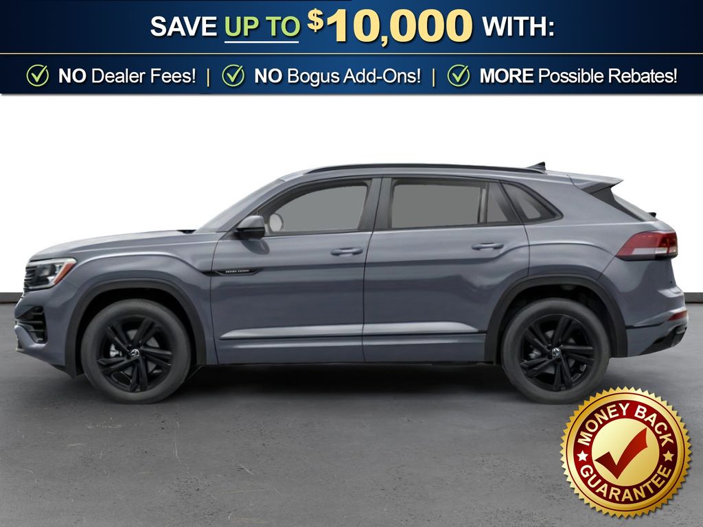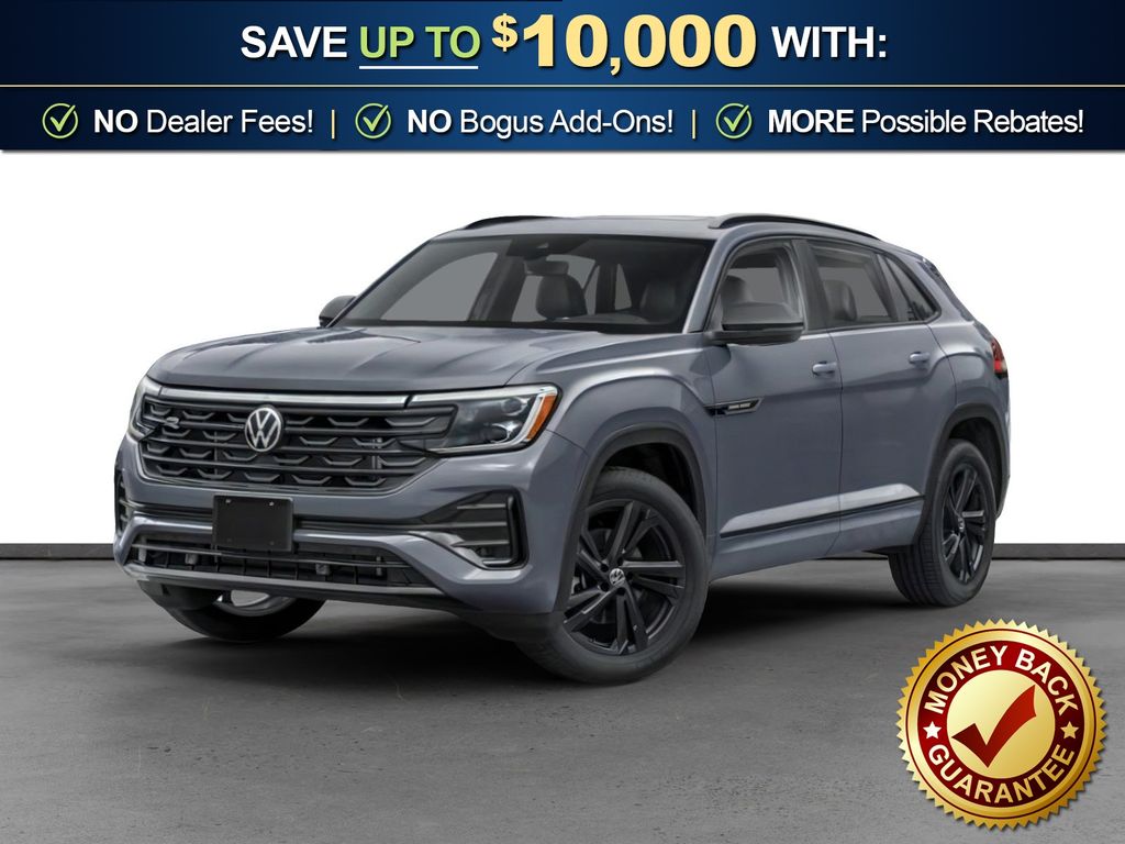 pure gray 2026 Volkswagen Atlas Cross Sport 2.0T SEL R-Line Black NVT AWD 8-Speed Automatic with Tiptronic 2.0L TSI 4-Wheel Disc Brakes, 4-Wheel Independent Suspension, 6 Speakers, ABS brakes, Air Conditioning, Alloy wheels, AM/FM radio: SiriusXM with 360L, Auto High-beam Headlights, Auto-dimming Rear-View mirror, Automatic temperature control, Brake assist, Bumpers: body-color, Compass, Delay-off headlights, Driver door bin, Driver vanity mirror, Dual front impact airbags, Dual front side impact airbags, Electronic Stability Control, Emergency communication system: VW Car-Net Safe & Secure 5-year, Exterior Parking Camera Rear, Four wheel independent suspension, Front anti-roll bar, Front Bucket Seats, Front Center Armrest, Front dual zone A/C, Front fog lights, Front reading lights, Fully automatic headlights, Garage door transmitter: HomeLink, Heads-Up Display, Heated and Actively Ventilated Front Bucket Seats, Heated door mirrors, Heated front seats, Heated rear seats, Heated steering wheel, Illuminated entry, Low tire pressure warning, Memory seat, Navigation System, Occupant sensing airbag, Outside temperature display, Overhead airbag, Overhead console, Panic alarm, Passenger door bin, Passenger vanity mirror, Perforated Vienna Leather Seating Surfaces, Power door mirrors, Power driver seat, Power Liftgate, Power moonroof: Panoramic, Power passenger seat, Power steering, Power windows, Radio data system, Radio: MIB3 Discover Pro with Navigation, Rain sensing wipers, Rear anti-roll bar, Rear reading lights, Rear seat center armrest, Rear window defroster, Rear window wiper, Remote keyless entry, Security system, Speed control, Speed-sensing steering, Split folding rear seat, Spoiler, Steering wheel mounted audio controls, Tachometer, Telescoping steering wheel, Tilt steering wheel, Traction control, Trip computer, Turn signal indicator mirrors, Variably intermittent wipers, Ventilated front seats, Wheels: 20" Black Painted Alloy.
