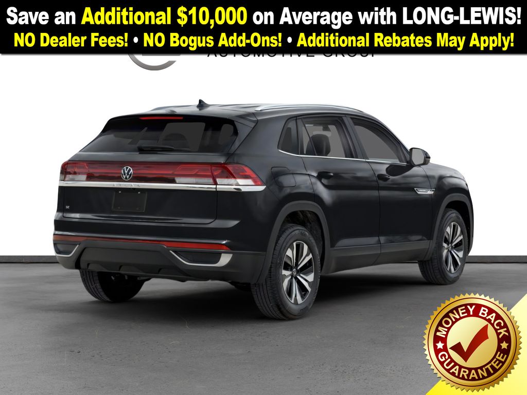 deep black pearl 2026 Volkswagen Atlas Cross Sport 2.0T SE NVT FWD 8-Speed Automatic with Tiptronic 2.0L TSI 4-Wheel Disc Brakes, 4-Wheel Independent Suspension, 6 Speakers, ABS brakes, Air Conditioning, Alloy wheels, AM/FM radio: SiriusXM with 360L, Auto High-beam Headlights, Auto-dimming Rear-View mirror, Automatic temperature control, Brake assist, Bumpers: body-color, Delay-off headlights, Driver door bin, Driver vanity mirror, Dual front impact airbags, Dual front side impact airbags, Electronic Stability Control, Emergency communication system: VW Car-Net Safe & Secure 5-year, Exterior Parking Camera Rear, Four wheel independent suspension, Front anti-roll bar, Front Bucket Seats, Front Center Armrest, Front dual zone A/C, Front fog lights, Front reading lights, Fully automatic headlights, Heated and Actively Ventilated Front Bucket Seats, Heated door mirrors, Heated front seats, Heated steering wheel, Illuminated entry, Low tire pressure warning, Occupant sensing airbag, Outside temperature display, Overhead airbag, Overhead console, Panic alarm, Passenger door bin, Passenger vanity mirror, Perforated V-Tex Leatherette Seating Surfaces, Power door mirrors, Power driver seat, Power steering, Power windows, Radio data system, Radio: MIB3 Composition Media, Rain sensing wipers, Rear anti-roll bar, Rear reading lights, Rear seat center armrest, Rear window defroster, Rear window wiper, Remote keyless entry, Security system, Speed control, Speed-sensing steering, Split folding rear seat, Spoiler, Steering wheel mounted audio controls, Tachometer, Telescoping steering wheel, Tilt steering wheel, Traction control, Trip computer, Turn signal indicator mirrors, Variably intermittent wipers, Ventilated front seats, Wheels: 18" 5-Spoke 2-Tone Machined Alloy.