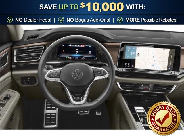 Ca35pr0p0p 2026 Volkswagen Atlas 2.0T SEL Premium R-Line NVT AWD 8-Speed Automatic with Tiptronic 2.0L TSI 10 Speakers, 3rd row seats: split-bench, 4-Wheel Disc Brakes, 4-Wheel Independent Suspension, ABS brakes, Air Conditioning, Alloy wheels, AM/FM radio: SiriusXM with 360L, Auto High-beam Headlights, Auto-dimming Rear-View mirror, Automatic temperature control, Brake assist, Bumpers: body-color, Compass, Delay-off headlights, Driver door bin, Driver vanity mirror, Dual front impact airbags, Dual front side impact airbags, Electronic Stability Control, Emergency communication system: VW Car-Net Safe & Secure 5-year, Exterior Parking Camera Rear, Four wheel independent suspension, Front anti-roll bar, Front Bucket Seats, Front Center Armrest, Front dual zone A/C, Front fog lights, Front reading lights, Fully automatic headlights, Garage door transmitter: HomeLink, harman/kardon® Speakers, Heads-Up Display, Heated & Actively Ventilated Front Bucket Seats, Heated door mirrors, Heated front seats, Heated rear seats, Heated steering wheel, Illuminated entry, Leather steering wheel, Low tire pressure warning, Memory seat, Navigation System, Occupant sensing airbag, Outside temperature display, Overhead airbag, Overhead console, Panic alarm, Passenger door bin, Passenger vanity mirror, Perforated Vienna Leather Seating Surfaces, Power door mirrors, Power driver seat, Power Liftgate, Power moonroof: Panoramic, Power passenger seat, Power steering, Power windows, Radio data system, Radio: MIB3 Discover Pro w/Navigation, Rain sensing wipers, Rear air conditioning, Rear anti-roll bar, Rear audio controls, Rear reading lights, Rear seat center armrest, Rear window defroster, Rear window wiper, Remote keyless entry, Seat Inserts w/Diamond-Pattern Stitching, Security system, Speed control, Speed-sensing steering, Split folding rear seat, Spoiler, Sport steering wheel, Steering wheel mounted audio controls, Tachometer, Telescoping steering wheel, Tilt steering wheel, Traction control, Trip computer, Turn signal indicator mirrors, Variably intermittent wipers, Ventilated front seats, Wheels: 21" 2-Tone Machined Alloy.