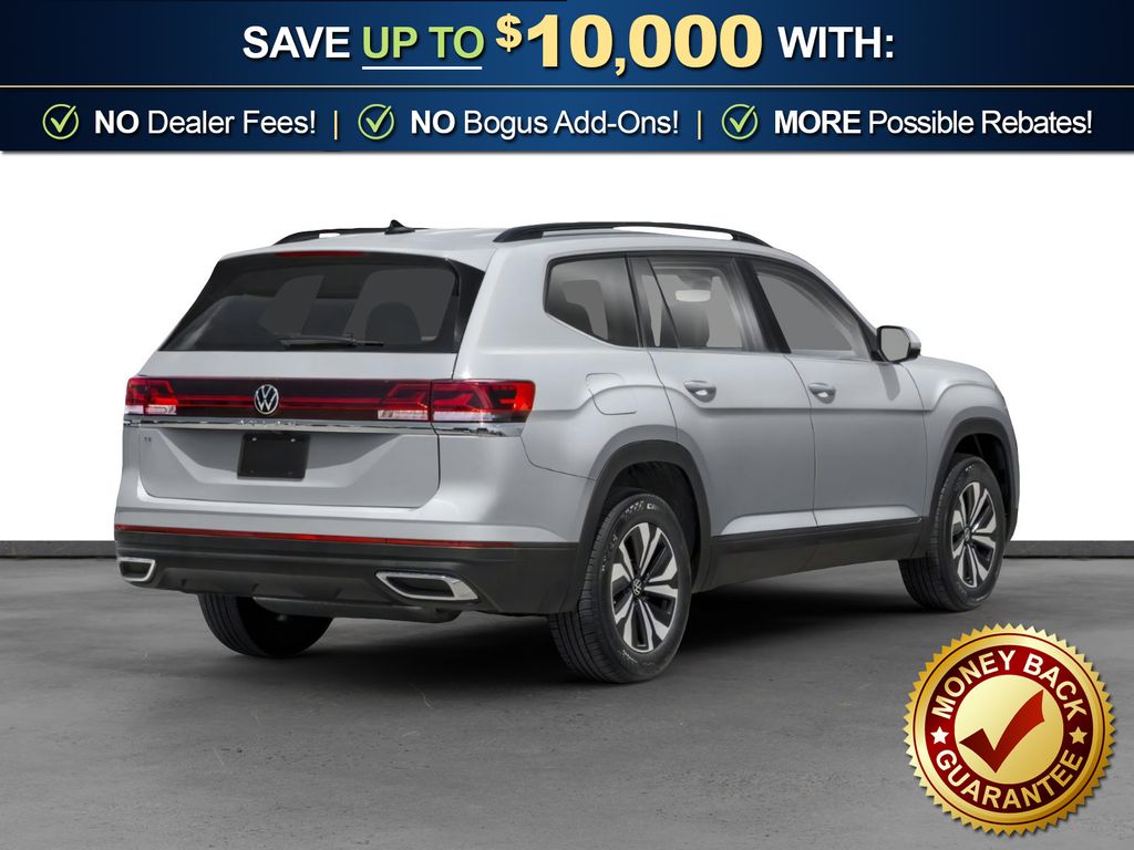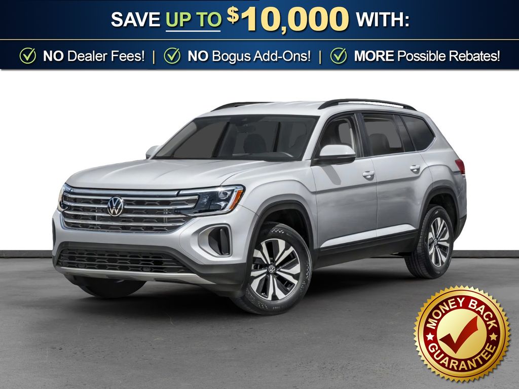 silver mist metallic 2026 Volkswagen Atlas 2.0T SE w/Technology NVT FWD 8-Speed Automatic with Tiptronic 2.0L TSI 3rd row seats: split-bench, 4-Wheel Disc Brakes, 4-Wheel Independent Suspension, 6 Speakers, ABS brakes, Air Conditioning, Alloy wheels, AM/FM radio: SiriusXM with 360L, Auto High-beam Headlights, Auto-dimming Rear-View mirror, Automatic temperature control, Brake assist, Bumpers: body-color, Compass, Delay-off headlights, Driver door bin, Driver vanity mirror, Dual front impact airbags, Dual front side impact airbags, Electronic Stability Control, Emergency communication system: VW Car-Net Safe & Secure 5-year, Exterior Parking Camera Rear, Four wheel independent suspension, Front anti-roll bar, Front Bucket Seats, Front Center Armrest, Front dual zone A/C, Front fog lights, Front reading lights, Fully automatic headlights, Garage door transmitter: HomeLink, Heated & Actively Ventilated Front Bucket Seats, Heated door mirrors, Heated front seats, Heated steering wheel, Illuminated entry, Low tire pressure warning, Occupant sensing airbag, Outside temperature display, Overhead airbag, Overhead console, Panic alarm, Passenger door bin, Passenger vanity mirror, Perforated V-Tex Leatherette Seating Surfaces, Power door mirrors, Power driver seat, Power Liftgate, Power steering, Power windows, Radio data system, Radio: MIB3 Composition Media, Rain sensing wipers, Rear air conditioning, Rear anti-roll bar, Rear reading lights, Rear seat center armrest, Rear window defroster, Rear window wiper, Remote keyless entry, Security system, Speed control, Speed-sensing steering, Split folding rear seat, Spoiler, Steering wheel mounted audio controls, Tachometer, Telescoping steering wheel, Tilt steering wheel, Traction control, Trip computer, Turn signal indicator mirrors, Variably intermittent wipers, Ventilated front seats, Wheels: 20" 2-Tone Machined Alloy.