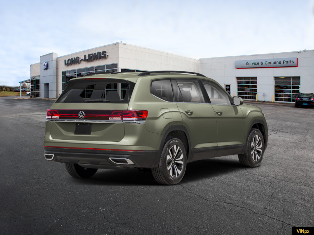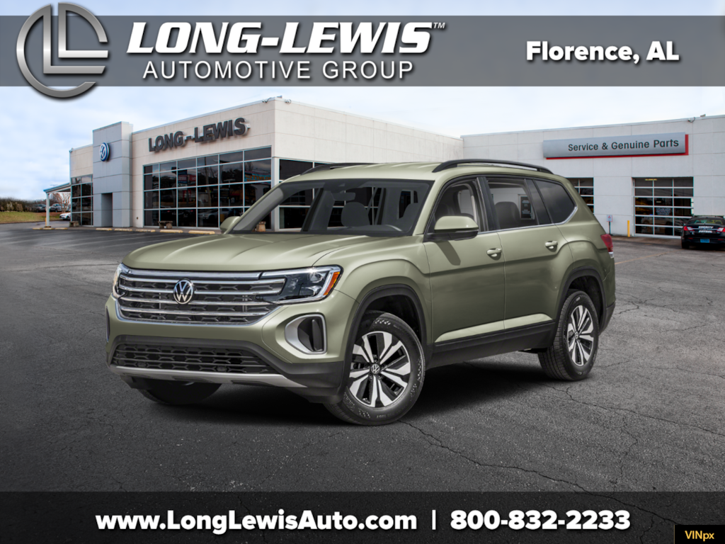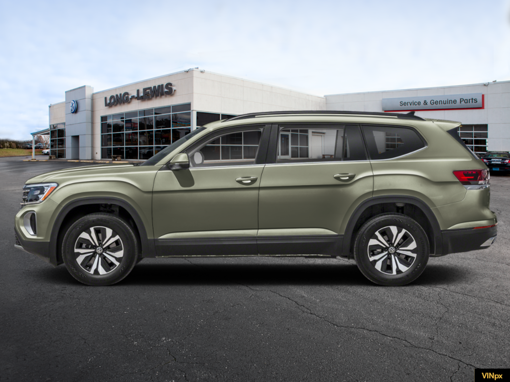 avocado green pearl 2026 Volkswagen Atlas 2.0T SE w/Technology NVT FWD 8-Speed Automatic with Tiptronic 2.0L TSI 3rd row seats: split-bench, 4-Wheel Disc Brakes, 4-Wheel Independent Suspension, 6 Speakers, ABS brakes, Air Conditioning, Alloy wheels, AM/FM radio: SiriusXM with 360L, Auto High-beam Headlights, Auto-dimming Rear-View mirror, Automatic temperature control, Brake assist, Bumpers: body-color, Compass, Delay-off headlights, Driver door bin, Driver vanity mirror, Dual front impact airbags, Dual front side impact airbags, Electronic Stability Control, Emergency communication system: VW Car-Net Safe & Secure 5-year, Exterior Parking Camera Rear, Four wheel independent suspension, Front anti-roll bar, Front Bucket Seats, Front Center Armrest, Front dual zone A/C, Front fog lights, Front reading lights, Fully automatic headlights, Garage door transmitter: HomeLink, Heated & Actively Ventilated Front Bucket Seats, Heated door mirrors, Heated front seats, Heated steering wheel, Illuminated entry, Low tire pressure warning, Occupant sensing airbag, Outside temperature display, Overhead airbag, Overhead console, Panic alarm, Passenger door bin, Passenger vanity mirror, Perforated V-Tex Leatherette Seating Surfaces, Power door mirrors, Power driver seat, Power Liftgate, Power steering, Power windows, Radio data system, Radio: MIB3 Composition Media, Rain sensing wipers, Rear air conditioning, Rear anti-roll bar, Rear reading lights, Rear seat center armrest, Rear window defroster, Rear window wiper, Remote keyless entry, Security system, Speed control, Speed-sensing steering, Split folding rear seat, Spoiler, Steering wheel mounted audio controls, Tachometer, Telescoping steering wheel, Tilt steering wheel, Traction control, Trip computer, Turn signal indicator mirrors, Variably intermittent wipers, Ventilated front seats, Wheels: 20" 2-Tone Machined Alloy.
