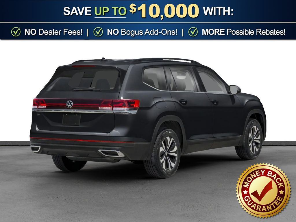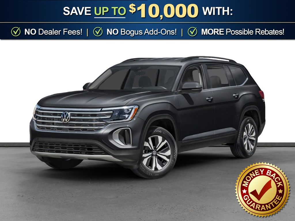 Deep Black Pearl 2026 Volkswagen Atlas 2.0T SE w/Technology NVT FWD 8-Speed Automatic with Tiptronic 2.0L TSI 3rd row seats: split-bench, 4-Wheel Disc Brakes, 4-Wheel Independent Suspension, 6 Speakers, ABS brakes, Air Conditioning, Alloy wheels, AM/FM radio: SiriusXM with 360L, Auto High-beam Headlights, Auto-dimming Rear-View mirror, Automatic temperature control, Brake assist, Bumpers: body-color, Compass, Delay-off headlights, Driver door bin, Driver vanity mirror, Dual front impact airbags, Dual front side impact airbags, Electronic Stability Control, Emergency communication system: VW Car-Net Safe & Secure 5-year, Exterior Parking Camera Rear, Four wheel independent suspension, Front anti-roll bar, Front Bucket Seats, Front Center Armrest, Front dual zone A/C, Front fog lights, Front reading lights, Fully automatic headlights, Garage door transmitter: HomeLink, Heated and Actively Ventilated Front Bucket Seats, Heated door mirrors, Heated front seats, Heated steering wheel, Illuminated entry, Low tire pressure warning, Occupant sensing airbag, Outside temperature display, Overhead airbag, Overhead console, Panic alarm, Passenger door bin, Passenger vanity mirror, Perforated V-Tex Leatherette Seating Surfaces, Power door mirrors, Power driver seat, Power Liftgate, Power steering, Power windows, Radio data system, Radio: MIB3 Composition Media, Rain sensing wipers, Rear air conditioning, Rear anti-roll bar, Rear reading lights, Rear seat center armrest, Rear window defroster, Rear window wiper, Remote keyless entry, Security system, Speed control, Speed-sensing steering, Split folding rear seat, Spoiler, Steering wheel mounted audio controls, Tachometer, Telescoping steering wheel, Tilt steering wheel, Traction control, Trip computer, Turn signal indicator mirrors, Variably intermittent wipers, Ventilated front seats, Wheels: 20" 2-Tone Machined Alloy.