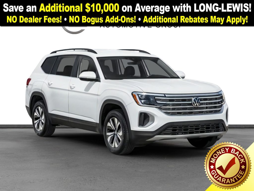 pure gray 2026 Volkswagen Atlas 2.0T SE w/Technology NVT FWD 8-Speed Automatic with Tiptronic 2.0L TSI 3rd row seats: split-bench, 4-Wheel Disc Brakes, 4-Wheel Independent Suspension, 6 Speakers, ABS brakes, Air Conditioning, Alloy wheels, AM/FM radio: SiriusXM with 360L, Auto High-beam Headlights, Auto-dimming Rear-View mirror, Automatic temperature control, Brake assist, Bumpers: body-color, Compass, Delay-off headlights, Driver door bin, Driver vanity mirror, Dual front impact airbags, Dual front side impact airbags, Electronic Stability Control, Emergency communication system: VW Car-Net Safe & Secure 5-year, Exterior Parking Camera Rear, Four wheel independent suspension, Front anti-roll bar, Front Bucket Seats, Front Center Armrest, Front dual zone A/C, Front fog lights, Front reading lights, Fully automatic headlights, Garage door transmitter: HomeLink, Heated & Actively Ventilated Front Bucket Seats, Heated door mirrors, Heated front seats, Heated steering wheel, Illuminated entry, Low tire pressure warning, Occupant sensing airbag, Outside temperature display, Overhead airbag, Overhead console, Panic alarm, Passenger door bin, Passenger vanity mirror, Perforated V-Tex Leatherette Seating Surfaces, Power door mirrors, Power driver seat, Power Liftgate, Power steering, Power windows, Radio data system, Radio: MIB3 Composition Media, Rain sensing wipers, Rear air conditioning, Rear anti-roll bar, Rear reading lights, Rear seat center armrest, Rear window defroster, Rear window wiper, Remote keyless entry, Security system, Speed control, Speed-sensing steering, Split folding rear seat, Spoiler, Steering wheel mounted audio controls, Tachometer, Telescoping steering wheel, Tilt steering wheel, Traction control, Trip computer, Turn signal indicator mirrors, Variably intermittent wipers, Ventilated front seats, Wheels: 20" 2-Tone Machined Alloy.