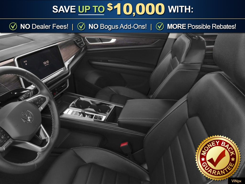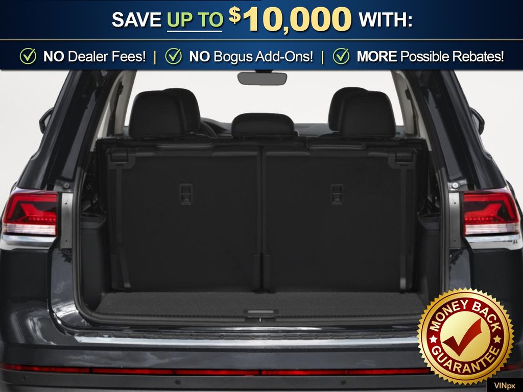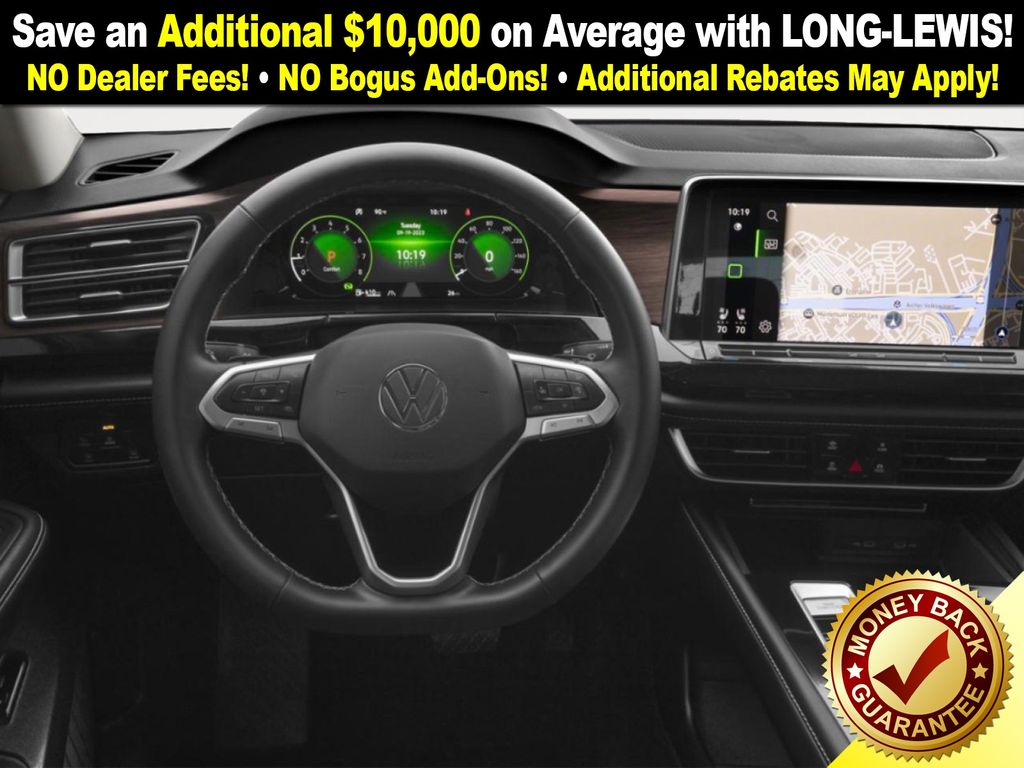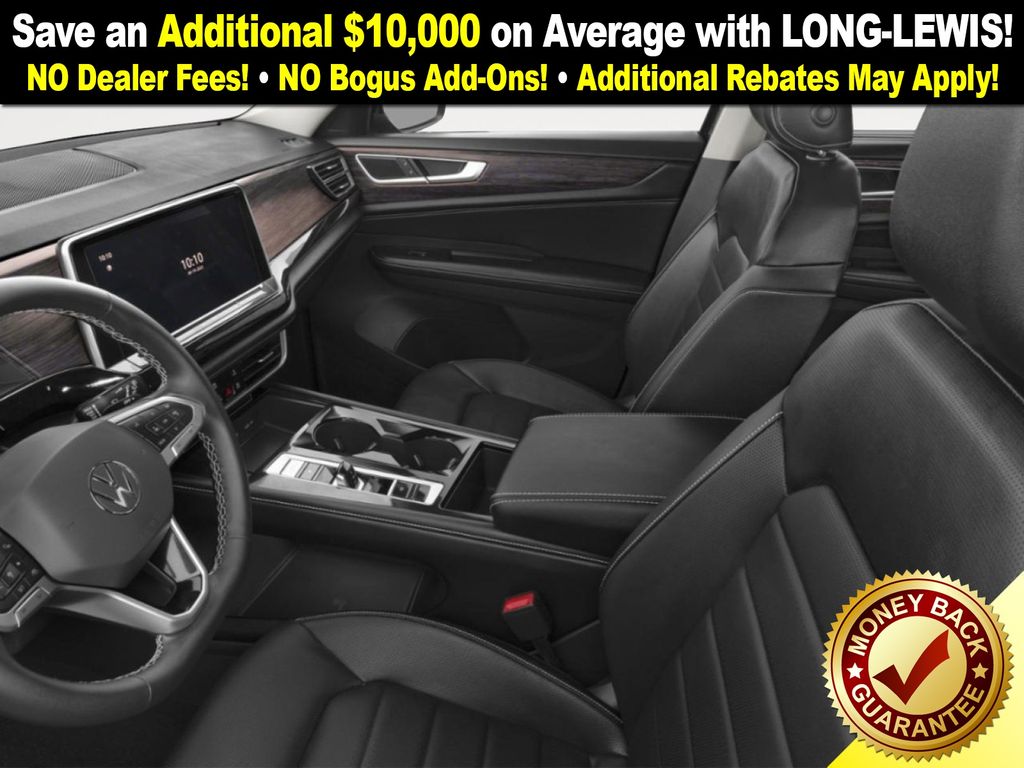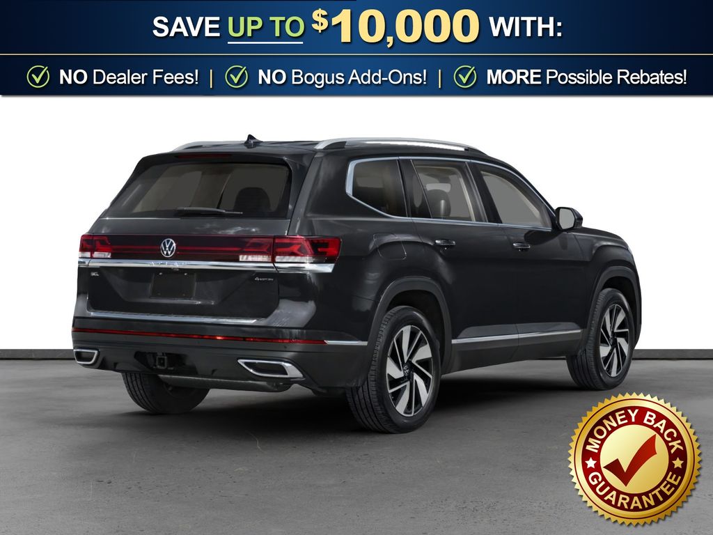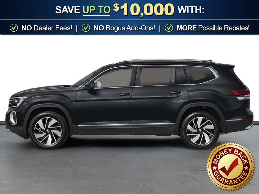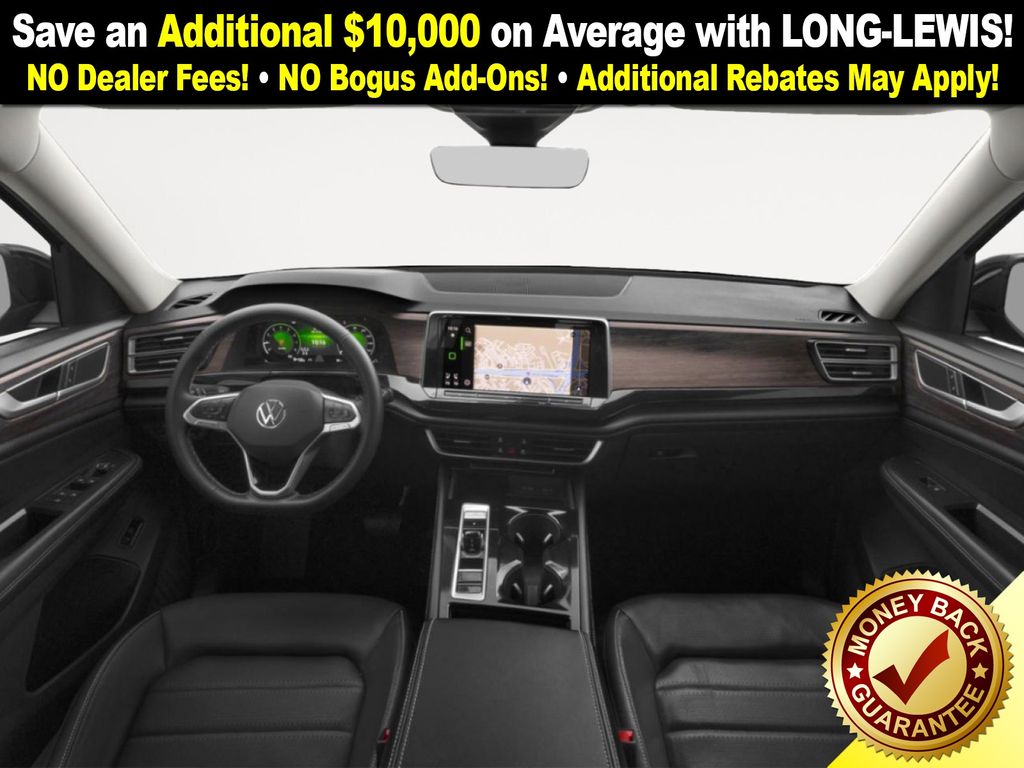 deep black pearl 2026 Volkswagen Atlas 2.0T SEL NVT AWD 8-Speed Automatic with Tiptronic 2.0L TSI 3rd row seats: split-bench, 4-Wheel Disc Brakes, 4-Wheel Independent Suspension, 6 Speakers, ABS brakes, Air Conditioning, Alloy wheels, AM/FM radio: SiriusXM with 360L, Auto High-beam Headlights, Auto-dimming Rear-View mirror, Automatic temperature control, Brake assist, Bumpers: body-color, Compass, Delay-off headlights, Driver door bin, Driver vanity mirror, Dual front impact airbags, Dual front side impact airbags, Electronic Stability Control, Emergency communication system: VW Car-Net Safe & Secure 5-year, Exterior Parking Camera Rear, Four wheel independent suspension, Front anti-roll bar, Front Bucket Seats, Front Center Armrest, Front dual zone A/C, Front fog lights, Front reading lights, Fully automatic headlights, Garage door transmitter: HomeLink, Heads-Up Display, Heated and Actively Ventilated Front Bucket Seats, Heated door mirrors, Heated front seats, Heated rear seats, Heated steering wheel, Illuminated entry, Low tire pressure warning, Memory seat, Navigation System, Occupant sensing airbag, Outside temperature display, Overhead airbag, Overhead console, Panic alarm, Passenger door bin, Passenger vanity mirror, Perforated Vienna Leather Seating Surfaces, Power door mirrors, Power driver seat, Power Liftgate, Power moonroof: Panoramic, Power passenger seat, Power steering, Power windows, Radio data system, Radio: MIB3 Discover Pro with Navigation, Rain sensing wipers, Rear air conditioning, Rear anti-roll bar, Rear reading lights, Rear seat center armrest, Rear window defroster, Rear window wiper, Remote keyless entry, Security system, Speed control, Speed-sensing steering, Split folding rear seat, Spoiler, Steering wheel mounted audio controls, Tachometer, Telescoping steering wheel, Tilt steering wheel, Traction control, Trip computer, Turn signal indicator mirrors, Variably intermittent wipers, Ventilated front seats, Wheels: 20" 2-Tone Machined Alloy.