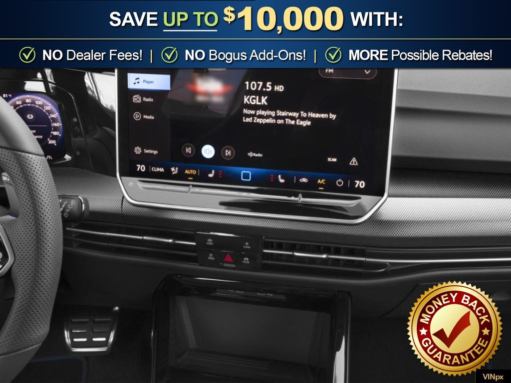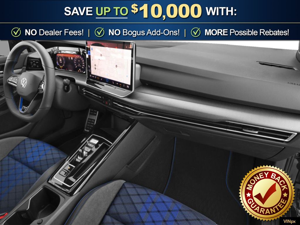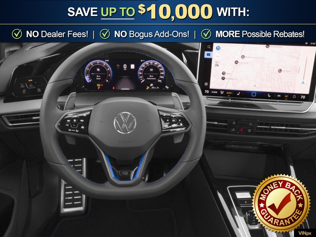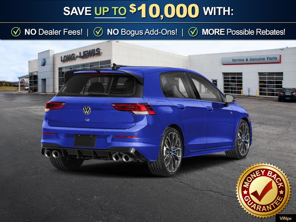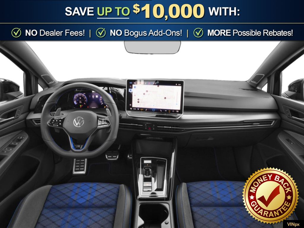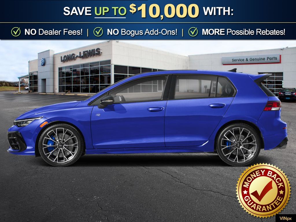 Lapiz Blue Metallic 2026 Volkswagen Golf R 2.0T NVC AWD 7-Speed DSG Automatic with Tiptronic 2.0L TSI DOHC 4-Wheel Disc Brakes, 9 Speakers, ABS brakes, Adaptive suspension, Air Conditioning, Alloy wheels, AM/FM radio: SiriusXM with 360L, Auto High-beam Headlights, Auto-dimming Rear-View mirror, Automatic temperature control, Brake assist, Bumpers: body-color, Compass, Delay-off headlights, Driver door bin, Driver vanity mirror, Dual front impact airbags, Dual front side impact airbags, Electronic Stability Control, Emergency communication system: VW Car-Net Safe & Secure 5-year, Exterior Parking Camera Rear, Four wheel independent suspension, Front anti-roll bar, Front Bucket Seats, Front Center Armrest, Front dual zone A/C, Front fog lights, Front reading lights, Fully automatic headlights, harman/kardon® Speakers, Heads-Up Display, Heated and Actively Ventilated Front Top Sport Seats, Heated door mirrors, Heated front seats, Heated rear seats, Heated steering wheel, Illuminated entry, Leather steering wheel, Low tire pressure warning, Memory seat, Navigation System, Occupant sensing airbag, Outside temperature display, Overhead airbag, Overhead console, Panic alarm, Passenger door bin, Passenger vanity mirror, Perforated Nappa Leather Seating Surfaces, Power door mirrors, Power driver seat, Power moonroof: Panoramic, Power passenger seat, Power steering, Power windows, Radio data system, Radio: MIB3 Discover Pro AM/FM/HD, Rain sensing wipers, Rear air conditioning, Rear anti-roll bar, Rear reading lights, Rear seat center armrest, Rear window defroster, Rear window wiper, Remote keyless entry, Security system, Speed control, Speed-sensing steering, Speed-Sensitive Wipers, Split folding rear seat, Spoiler, Sport steering wheel, Steering wheel mounted audio controls, Tachometer, Telescoping steering wheel, Tilt steering wheel, Traction control, Trip computer, Turn signal indicator mirrors, Variably intermittent wipers, Ventilated front seats, Wheels: 19" 2-Tone Diamond-Turned R-Design Alloy.