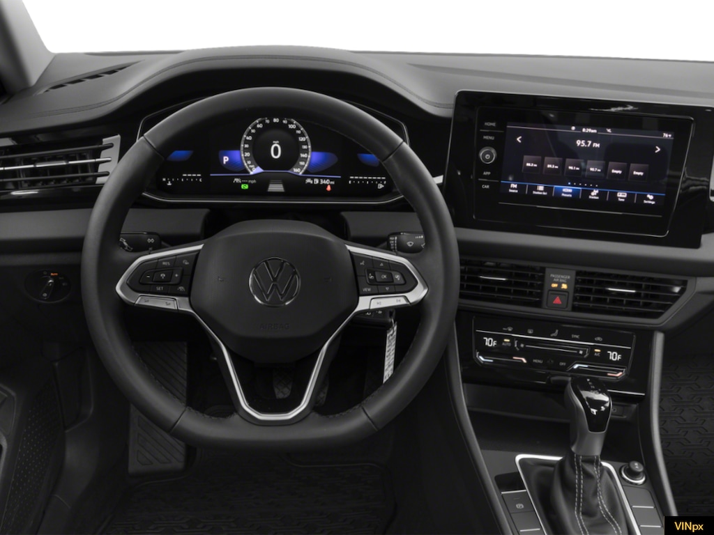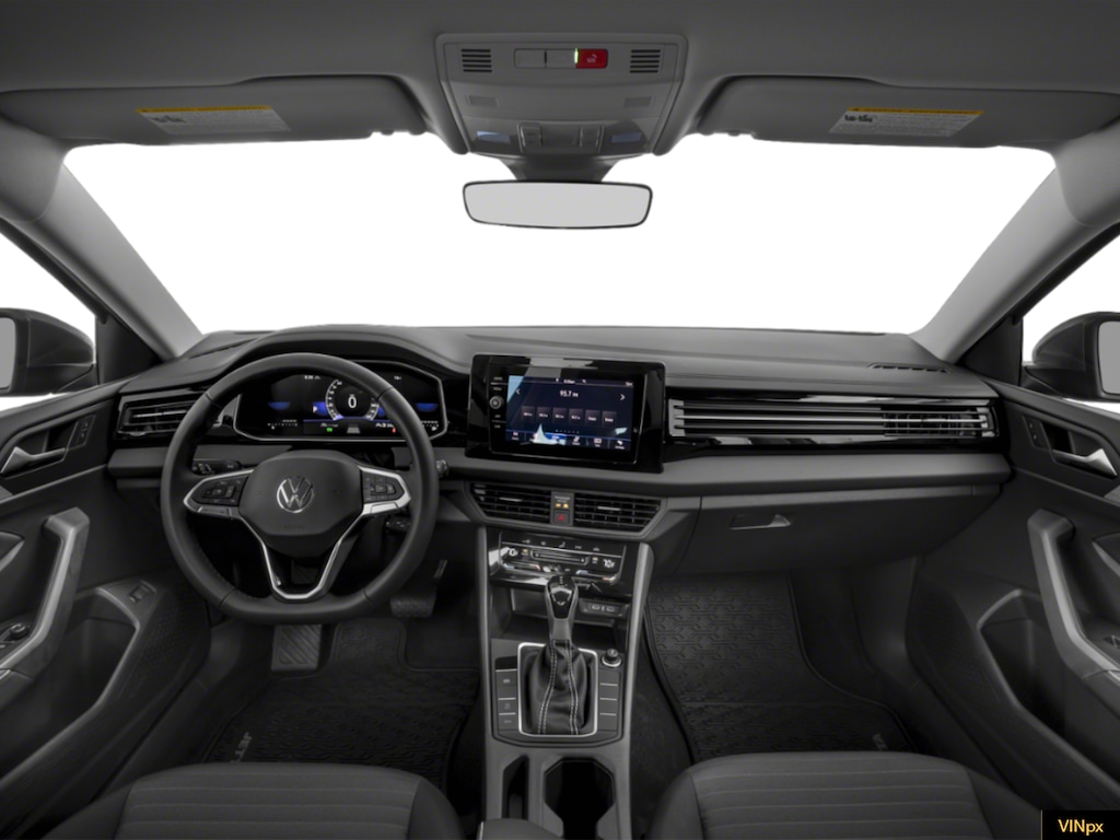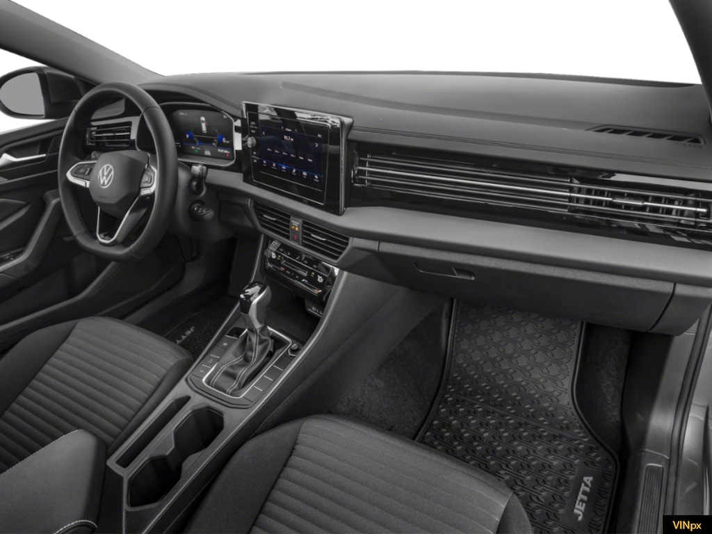 Deep Black Pearl 2026 Volkswagen Jetta 1.5T S NVC FWD 8-Speed Automatic with Tiptronic 1.5L I-4 DI DOHC Turbocharged Gray Cloth, 4 Speakers, 4-Wheel Disc Brakes, ABS brakes, Active Blind Spot Monitor, Air Conditioning, Alloy wheels, Auto-dimming Rear-View mirror, Automatic temperature control, Brake assist, Bumpers: body-color, Cloth Seat Trim, Delay-off headlights, Driver door bin, Driver vanity mirror, Dual front impact airbags, Dual front side impact airbags, Electronic Stability Control, Emergency communication system: VW Car-Net Safe & Secure 5-year, Exterior Parking Camera Rear, Front anti-roll bar, Front Bucket Seats, Front Center Armrest, Front dual zone A/C, Front Seats, Front wheel independent suspension, Fully automatic headlights, Heated door mirrors, Illuminated entry, Leather Shift Knob, Leather steering wheel, Low tire pressure warning, Occupant sensing airbag, Outside temperature display, Overhead airbag, Overhead console, Panic alarm, Passenger door bin, Passenger vanity mirror, Power door mirrors, Power steering, Power windows, Radio data system, Radio: MIB3 Composition Color with 8" Touchscreen, Rain sensing wipers, Rear anti-roll bar, Rear reading lights, Rear window defroster, Remote keyless entry, Speed control, Speed-sensing steering, Split folding rear seat, Steering wheel mounted audio controls, Tachometer, Telescoping steering wheel, Tilt steering wheel, Traction control, Trip computer, Variably intermittent wipers, Wheels: 16" 2-Tone Machined Alloy, Gray Cloth.