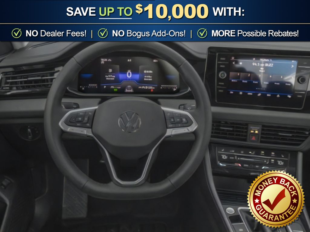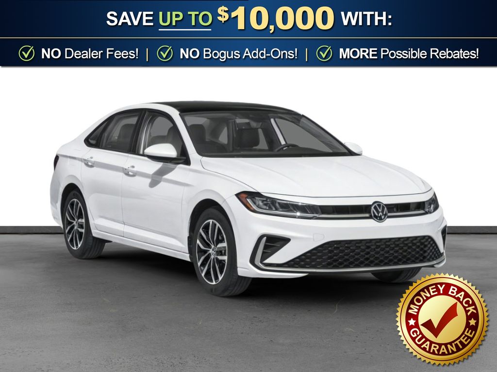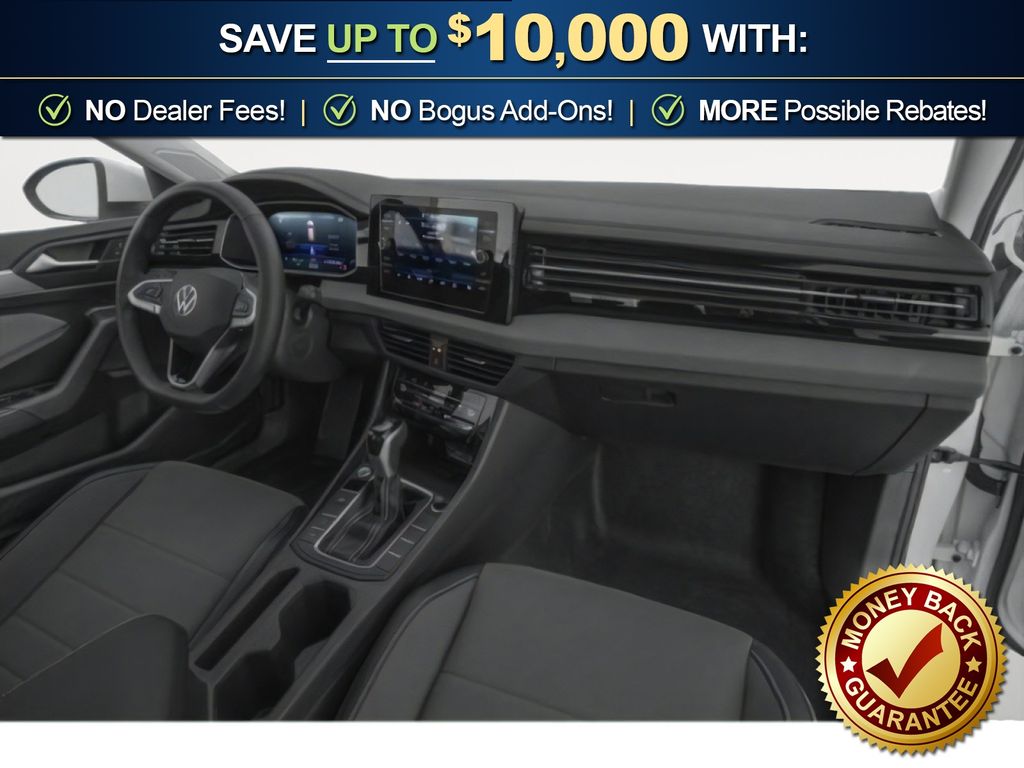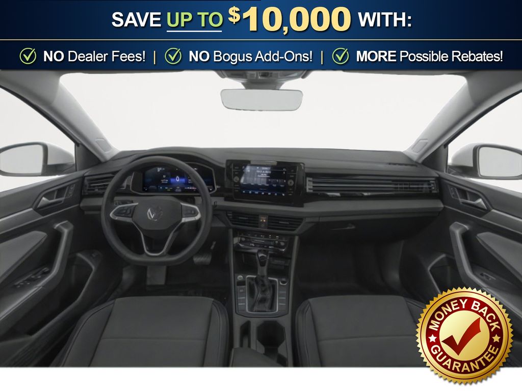Deep Black Pearl 2026 Volkswagen Jetta 1.5T SE NVC FWD 8-Speed Automatic with Tiptronic 1.5L I-4 DI DOHC Turbocharged Grigio & Black Artificial Leather, 4-Wheel Disc Brakes, 6 Speakers, ABS brakes, Active Blind Spot Monitor, Air Conditioning, Alloy wheels, AM/FM radio: SiriusXM with 360L, Auto-dimming Rear-View mirror, Automatic temperature control, Brake assist, Bumpers: body-color, CloudTex and V-Tex Leatherette Seat Trim, Delay-off headlights, Driver door bin, Driver vanity mirror, Dual front impact airbags, Dual front side impact airbags, Electronic Stability Control, Emergency communication system: VW Car-Net Safe & Secure 5-year, Exterior Parking Camera Rear, Front anti-roll bar, Front Bucket Seats, Front Center Armrest, Front dual zone A/C, Front wheel independent suspension, Fully automatic headlights, Heated door mirrors, Heated Front Seats, Heated front seats, Illuminated entry, Leather Shift Knob, Leather steering wheel, Low tire pressure warning, Occupant sensing airbag, Outside temperature display, Overhead airbag, Overhead console, Panic alarm, Passenger door bin, Passenger vanity mirror, Power door mirrors, Power driver seat, Power moonroof: Panoramic, Power steering, Power windows, Radio data system, Radio: MIB3 Composition Media with 8" Touchscreen, Rain sensing wipers, Rear anti-roll bar, Rear reading lights, Rear seat center armrest, Rear window defroster, Remote keyless entry, Speed control, Speed-sensing steering, Split folding rear seat, Steering wheel mounted audio controls, Tachometer, Telescoping steering wheel, Tilt steering wheel, Traction control, Trip computer, Variably intermittent wipers, Wheels: 17" Twin 5-Spoke 2-Tone Machined Alloy, Grigio & Black Artificial Leather.