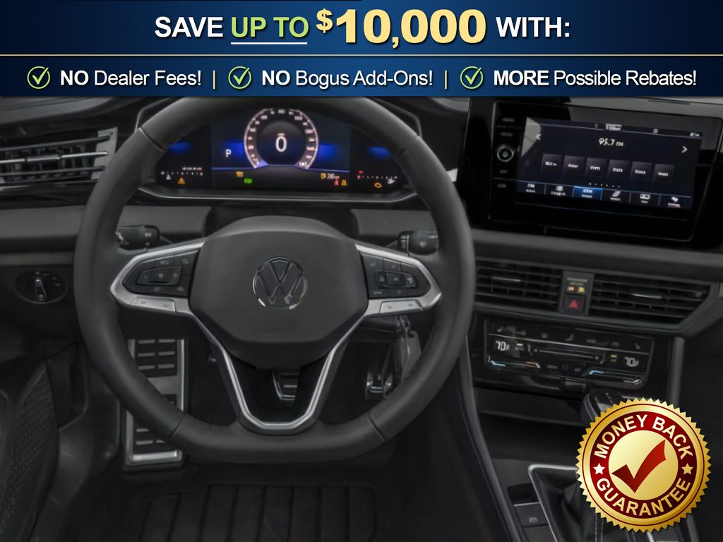 Monument Gray 2026 Volkswagen Jetta 1.5T Sport NVC FWD 8-Speed Automatic with Tiptronic 1.5L I-4 DI DOHC Turbocharged Titan Black Cloth, 4 Speakers, 4-Wheel Disc Brakes, ABS brakes, Active Blind Spot Monitor, Air Conditioning, Alloy wheels, Auto-dimming Rear-View mirror, Automatic temperature control, Brake assist, Bumpers: body-color, Cloth Seat Trim, Delay-off headlights, Driver door bin, Driver vanity mirror, Dual front impact airbags, Dual front side impact airbags, Electronic Stability Control, Emergency communication system: VW Car-Net Safe & Secure 5-year, Exterior Parking Camera Rear, Front anti-roll bar, Front Bucket Seats, Front Center Armrest, Front dual zone A/C, Front wheel independent suspension, Fully automatic headlights, Heated door mirrors, Heated Front Seats, Heated front seats, Illuminated entry, Leather Shift Knob, Leather steering wheel, Low tire pressure warning, Occupant sensing airbag, Outside temperature display, Overhead airbag, Overhead console, Panic alarm, Passenger door bin, Passenger vanity mirror, Power door mirrors, Power steering, Power windows, Radio data system, Radio: MIB3 Composition Color with 8" Touchscreen, Rain sensing wipers, Rear anti-roll bar, Rear reading lights, Rear seat center armrest, Rear window defroster, Remote keyless entry, Speed control, Speed-sensing steering, Split folding rear seat, Steering wheel mounted audio controls, Tachometer, Telescoping steering wheel, Tilt steering wheel, Traction control, Trip computer, Variably intermittent wipers, Wheels: 17" 2-Tone Machined Alloy, Titan Black Cloth.