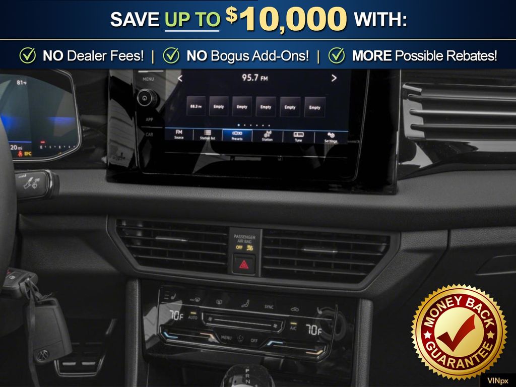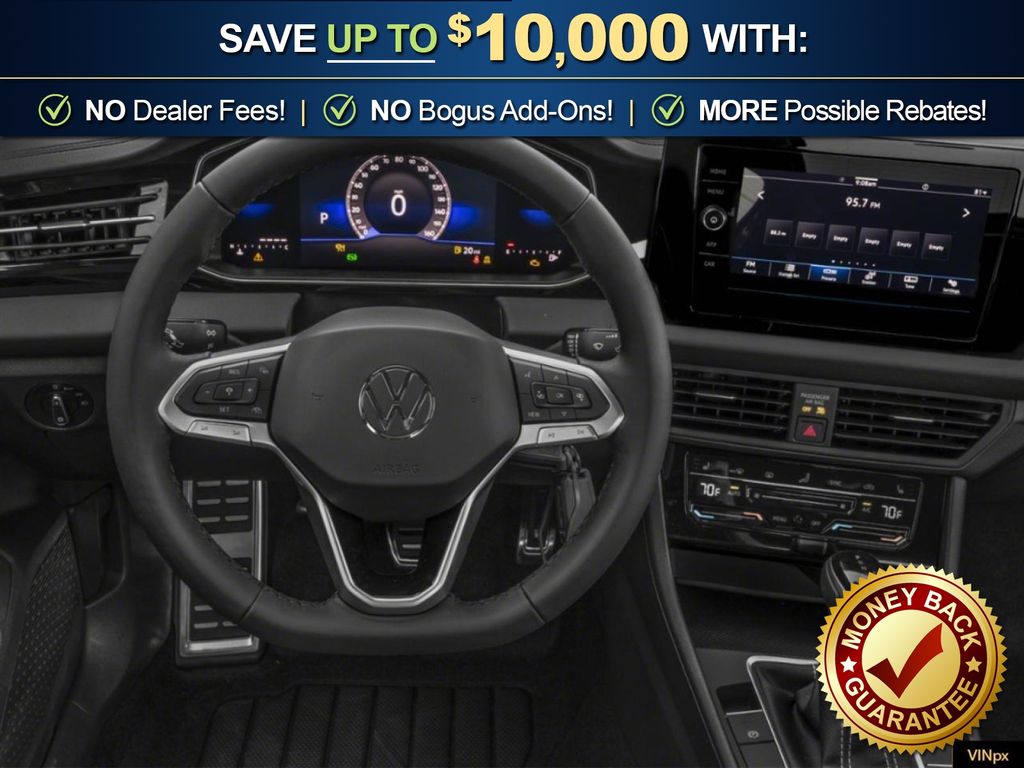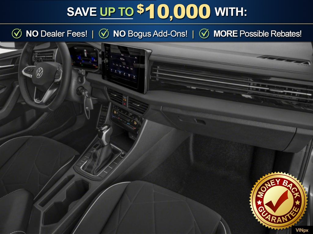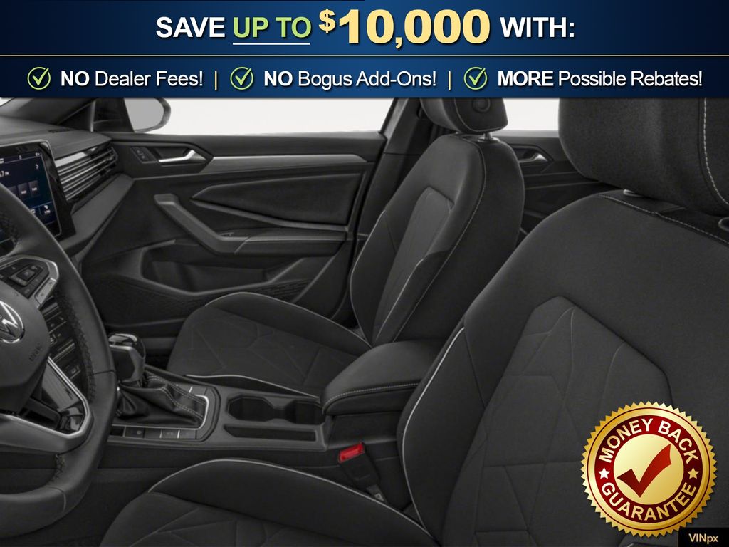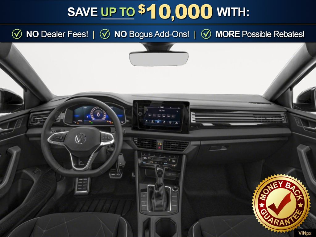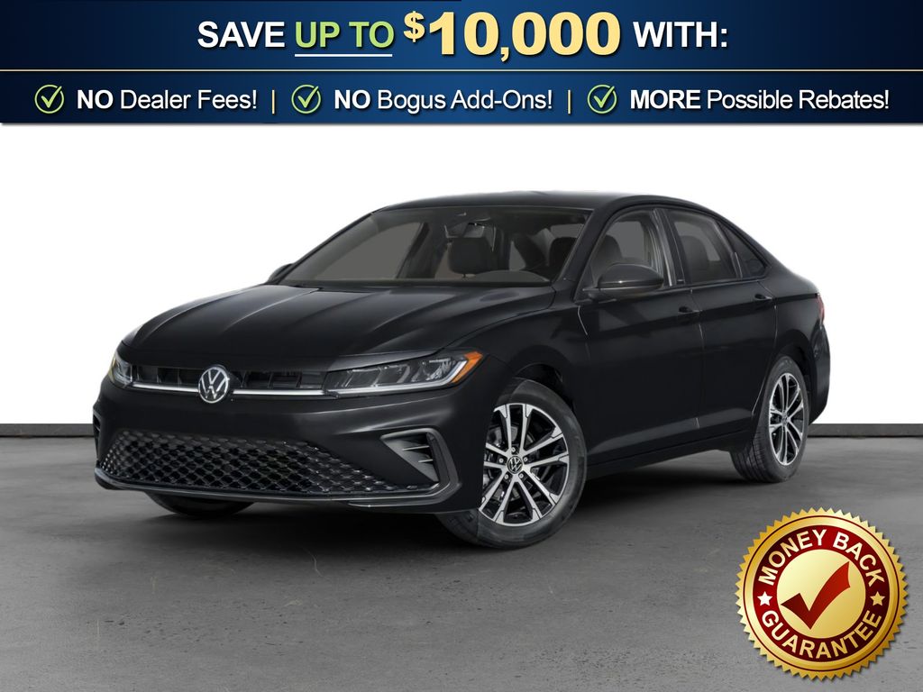 Deep Black Pearl Metallic 2026 Volkswagen Jetta 1.5T Sport NVC FWD 8-Speed Automatic with Tiptronic 1.5L I-4 DI DOHC Turbocharged Titan Black Cloth, 4 Speakers, 4-Wheel Disc Brakes, ABS brakes, Active Blind Spot Monitor, Air Conditioning, Alloy wheels, Auto-dimming Rear-View mirror, Automatic temperature control, Brake assist, Bumpers: body-color, Cloth Seat Trim, Delay-off headlights, Driver door bin, Driver vanity mirror, Dual front impact airbags, Dual front side impact airbags, Electronic Stability Control, Emergency communication system: VW Car-Net Safe & Secure 5-year, Exterior Parking Camera Rear, Front anti-roll bar, Front Bucket Seats, Front Center Armrest, Front dual zone A/C, Front wheel independent suspension, Fully automatic headlights, Heated door mirrors, Heated Front Seats, Heated front seats, Illuminated entry, Leather Shift Knob, Leather steering wheel, Low tire pressure warning, Occupant sensing airbag, Outside temperature display, Overhead airbag, Overhead console, Panic alarm, Passenger door bin, Passenger vanity mirror, Power door mirrors, Power steering, Power windows, Radio data system, Radio: MIB3 Composition Color with 8" Touchscreen, Rain sensing wipers, Rear anti-roll bar, Rear reading lights, Rear seat center armrest, Rear window defroster, Remote keyless entry, Speed control, Speed-sensing steering, Split folding rear seat, Steering wheel mounted audio controls, Tachometer, Telescoping steering wheel, Tilt steering wheel, Traction control, Trip computer, Variably intermittent wipers, Wheels: 17" 2-Tone Machined Alloy, Titan Black Cloth.