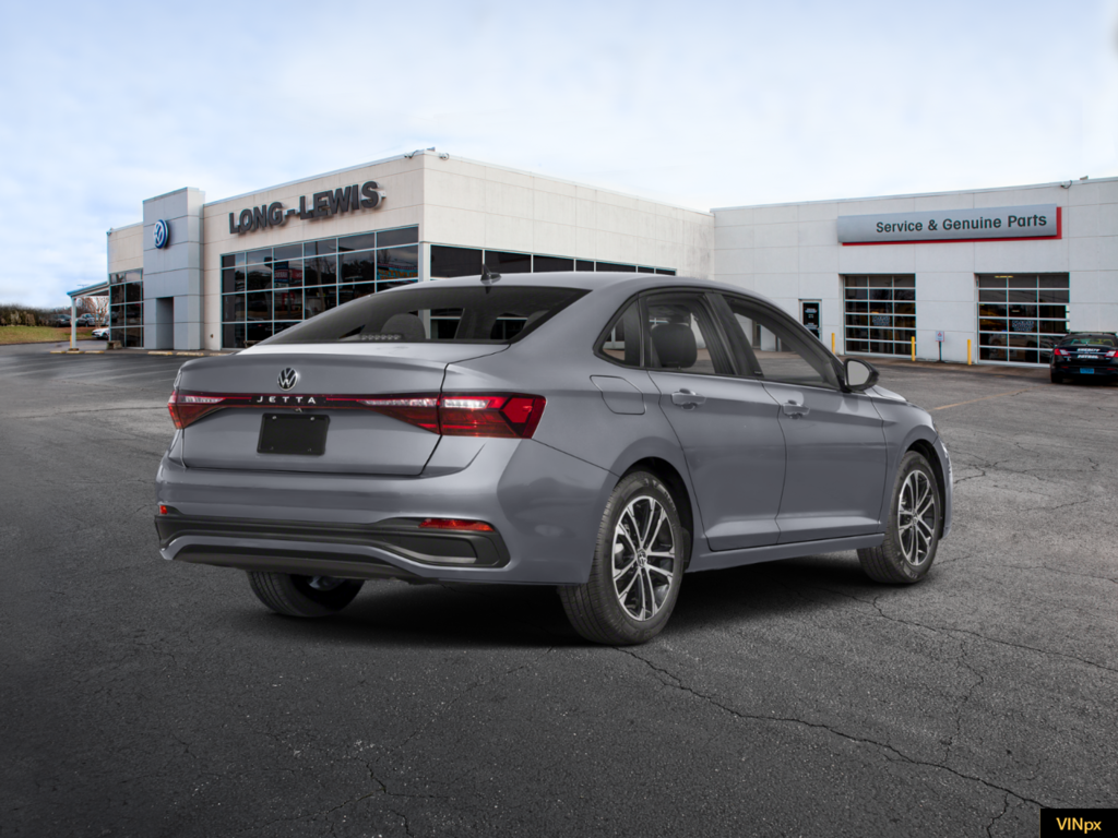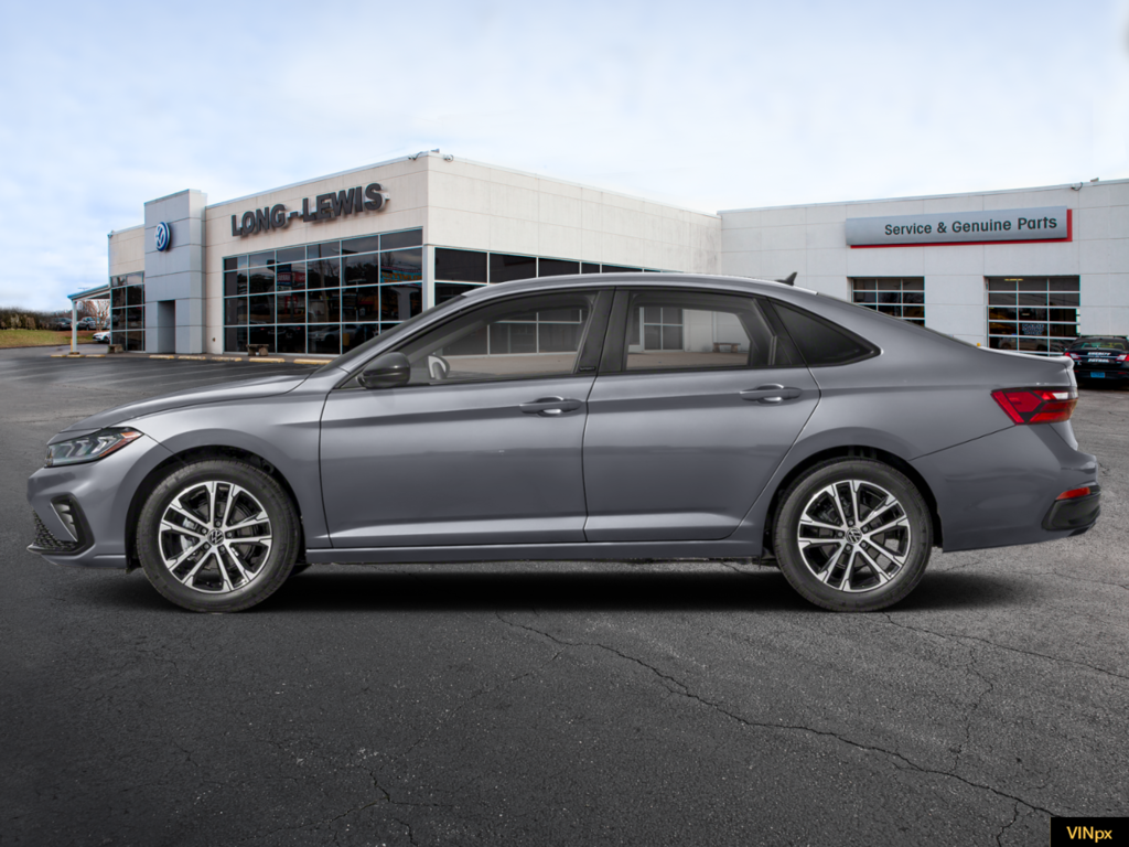 Platinum Gray Metallic 2026 Volkswagen Jetta 1.5T Sport NVC FWD 8-Speed Automatic with Tiptronic 1.5L I-4 DI DOHC Turbocharged Titan Black Cloth, 4 Speakers, 4-Wheel Disc Brakes, ABS brakes, Active Blind Spot Monitor, Air Conditioning, Alloy wheels, Auto-dimming Rear-View mirror, Automatic temperature control, Brake assist, Bumpers: body-color, Cloth Seat Trim, Delay-off headlights, Driver door bin, Driver vanity mirror, Dual front impact airbags, Dual front side impact airbags, Electronic Stability Control, Emergency communication system: VW Car-Net Safe & Secure 5-year, Exterior Parking Camera Rear, Front anti-roll bar, Front Bucket Seats, Front Center Armrest, Front dual zone A/C, Front wheel independent suspension, Fully automatic headlights, Heated door mirrors, Heated Front Seats, Heated front seats, Illuminated entry, Leather Shift Knob, Leather steering wheel, Low tire pressure warning, Occupant sensing airbag, Outside temperature display, Overhead airbag, Overhead console, Panic alarm, Passenger door bin, Passenger vanity mirror, Power door mirrors, Power steering, Power windows, Radio data system, Radio: MIB3 Composition Color with 8" Touchscreen, Rain sensing wipers, Rear anti-roll bar, Rear reading lights, Rear seat center armrest, Rear window defroster, Remote keyless entry, Speed control, Speed-sensing steering, Split folding rear seat, Steering wheel mounted audio controls, Tachometer, Telescoping steering wheel, Tilt steering wheel, Traction control, Trip computer, Variably intermittent wipers, Wheels: 17" 2-Tone Machined Alloy, Titan Black Cloth.