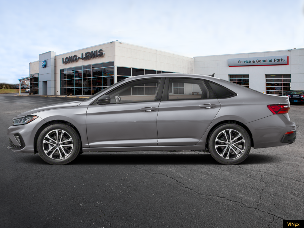 Pyrite Silver Metallic 2026 Volkswagen Jetta 1.5T Sport FWD 8-Speed Automatic with Tiptronic 1.5L I-4 DI DOHC Turbocharged Titan Black Cloth, 4 Speakers, 4-Wheel Disc Brakes, ABS brakes, Active Blind Spot Monitor, Air Conditioning, Alloy wheels, Auto-dimming Rear-View mirror, Automatic temperature control, Brake assist, Bumpers: body-color, Cloth Seat Trim, Delay-off headlights, Driver door bin, Driver vanity mirror, Dual front impact airbags, Dual front side impact airbags, Electronic Stability Control, Emergency communication system: VW Car-Net Safe & Secure 5-year, Exterior Parking Camera Rear, Front anti-roll bar, Front Bucket Seats, Front Center Armrest, Front dual zone A/C, Front wheel independent suspension, Fully automatic headlights, Heated door mirrors, Heated Front Seats, Heated front seats, Illuminated entry, Leather Shift Knob, Leather steering wheel, Low tire pressure warning, Occupant sensing airbag, Outside temperature display, Overhead airbag, Overhead console, Panic alarm, Passenger door bin, Passenger vanity mirror, Power door mirrors, Power steering, Power windows, Radio data system, Radio: MIB3 Composition Color w/8" Touchscreen, Rain sensing wipers, Rear anti-roll bar, Rear reading lights, Rear seat center armrest, Rear window defroster, Remote keyless entry, Speed control, Speed-sensing steering, Split folding rear seat, Steering wheel mounted audio controls, Tachometer, Telescoping steering wheel, Tilt steering wheel, Traction control, Trip computer, Variably intermittent wipers, Wheels: 17" 2-Tone Machined Alloy, Titan Black Cloth.