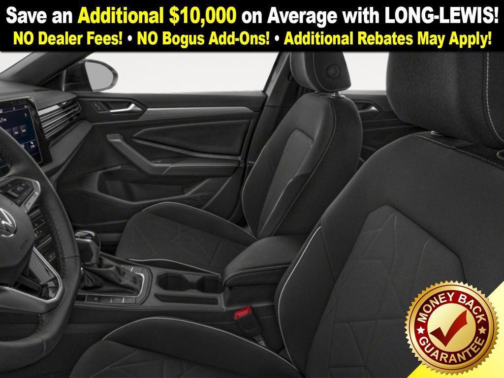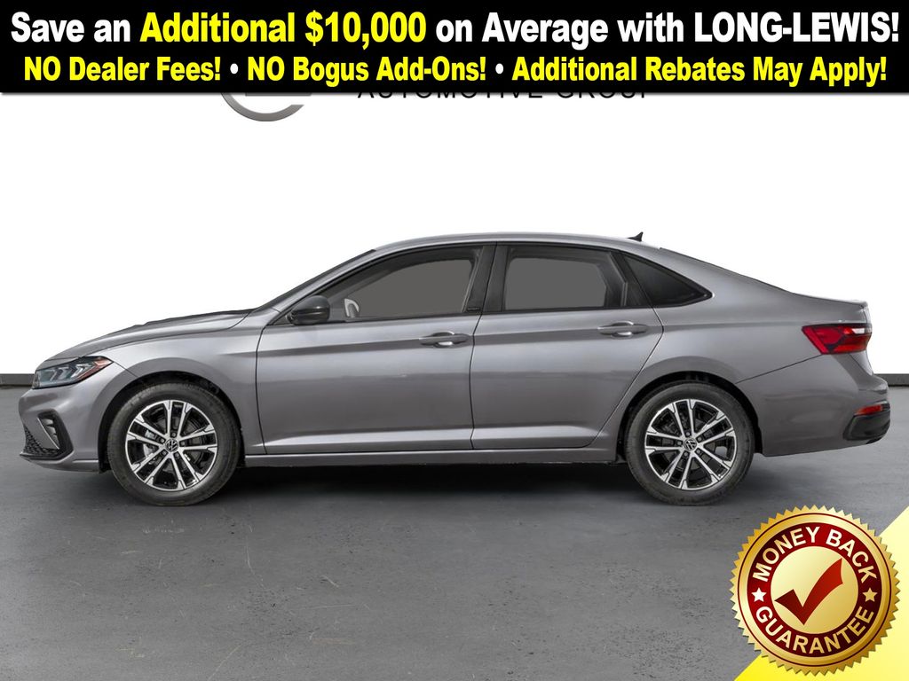 Pyrite Silver Metallic 2026 Volkswagen Jetta 1.5T Sport NVC FWD 8-Speed Automatic with Tiptronic 1.5L I-4 DI DOHC Turbocharged Titan Black Cloth, 4 Speakers, 4-Wheel Disc Brakes, ABS brakes, Active Blind Spot Monitor, Air Conditioning, Alloy wheels, Auto-dimming Rear-View mirror, Automatic temperature control, Brake assist, Bumpers: body-color, Cloth Seat Trim, Delay-off headlights, Driver door bin, Driver vanity mirror, Dual front impact airbags, Dual front side impact airbags, Electronic Stability Control, Emergency communication system: VW Car-Net Safe & Secure 5-year, Exterior Parking Camera Rear, Front anti-roll bar, Front Bucket Seats, Front Center Armrest, Front dual zone A/C, Front wheel independent suspension, Fully automatic headlights, Heated door mirrors, Heated Front Seats, Heated front seats, Illuminated entry, Leather Shift Knob, Leather steering wheel, Low tire pressure warning, Occupant sensing airbag, Outside temperature display, Overhead airbag, Overhead console, Panic alarm, Passenger door bin, Passenger vanity mirror, Power door mirrors, Power steering, Power windows, Radio data system, Radio: MIB3 Composition Color with 8" Touchscreen, Rain sensing wipers, Rear anti-roll bar, Rear reading lights, Rear seat center armrest, Rear window defroster, Remote keyless entry, Speed control, Speed-sensing steering, Split folding rear seat, Steering wheel mounted audio controls, Tachometer, Telescoping steering wheel, Tilt steering wheel, Traction control, Trip computer, Variably intermittent wipers, Wheels: 17" 2-Tone Machined Alloy, Titan Black Cloth.
