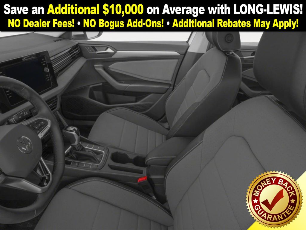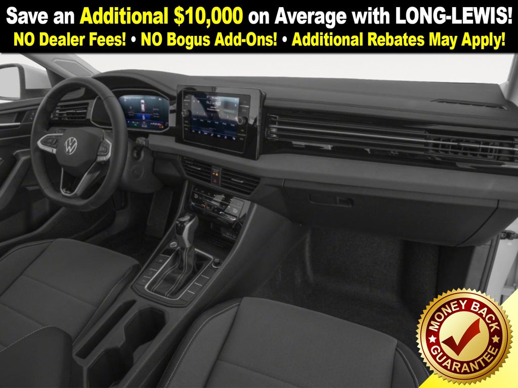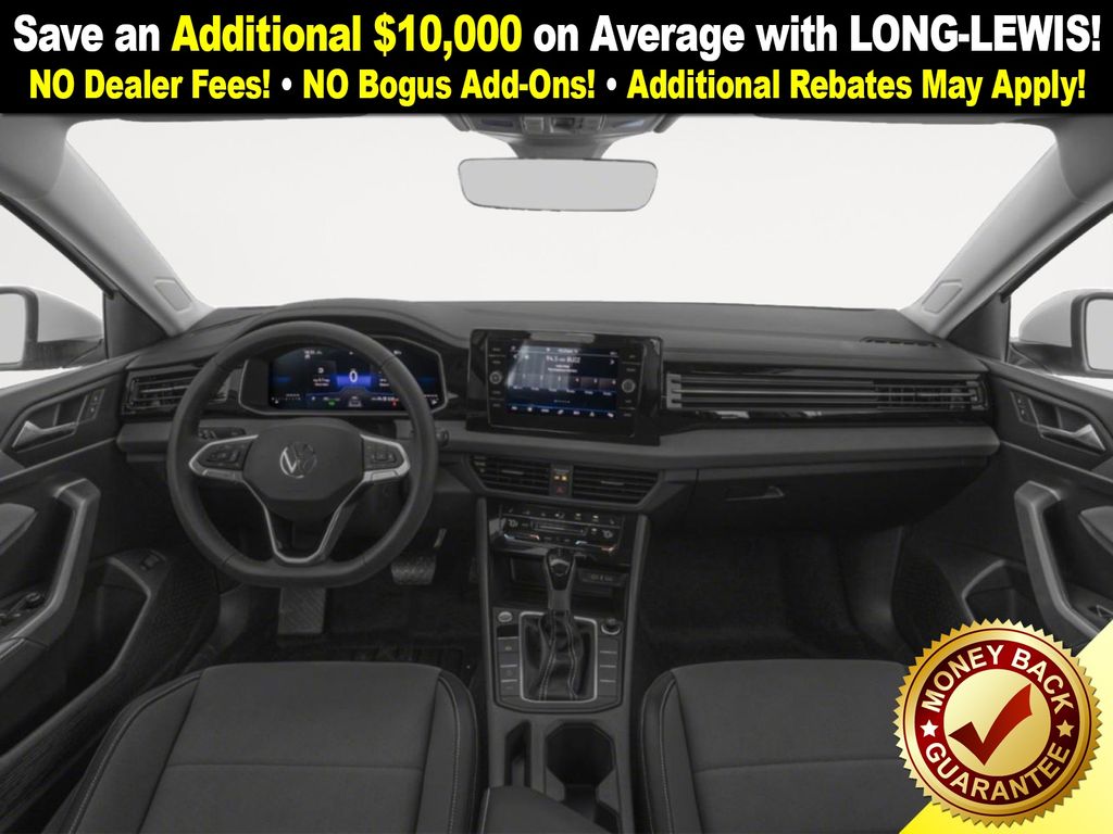Deep Black Pearl 2026 Volkswagen Jetta 1.5T SE NVC FWD 8-Speed Automatic with Tiptronic 1.5L I-4 DI DOHC Turbocharged Gray Artificial Leather, 4-Wheel Disc Brakes, 6 Speakers, ABS brakes, Active Blind Spot Monitor, Air Conditioning, Alloy wheels, AM/FM radio: SiriusXM with 360L, Auto-dimming Rear-View mirror, Automatic temperature control, Brake assist, Bumpers: body-color, CloudTex and V-Tex Leatherette Seat Trim, Delay-off headlights, Driver door bin, Driver vanity mirror, Dual front impact airbags, Dual front side impact airbags, Electronic Stability Control, Emergency communication system: VW Car-Net Safe & Secure 5-year, Exterior Parking Camera Rear, Front anti-roll bar, Front Bucket Seats, Front Center Armrest, Front dual zone A/C, Front wheel independent suspension, Fully automatic headlights, Heated door mirrors, Heated Front Seats, Heated front seats, Illuminated entry, Leather Shift Knob, Leather steering wheel, Low tire pressure warning, Occupant sensing airbag, Outside temperature display, Overhead airbag, Overhead console, Panic alarm, Passenger door bin, Passenger vanity mirror, Power door mirrors, Power driver seat, Power moonroof: Panoramic, Power steering, Power windows, Radio data system, Radio: MIB3 Composition Media with 8" Touchscreen, Rain sensing wipers, Rear anti-roll bar, Rear reading lights, Rear seat center armrest, Rear window defroster, Remote keyless entry, Speed control, Speed-sensing steering, Split folding rear seat, Steering wheel mounted audio controls, Tachometer, Telescoping steering wheel, Tilt steering wheel, Traction control, Trip computer, Variably intermittent wipers, Wheels: 17" Twin 5-Spoke 2-Tone Machined Alloy, Gray Artificial Leather.
