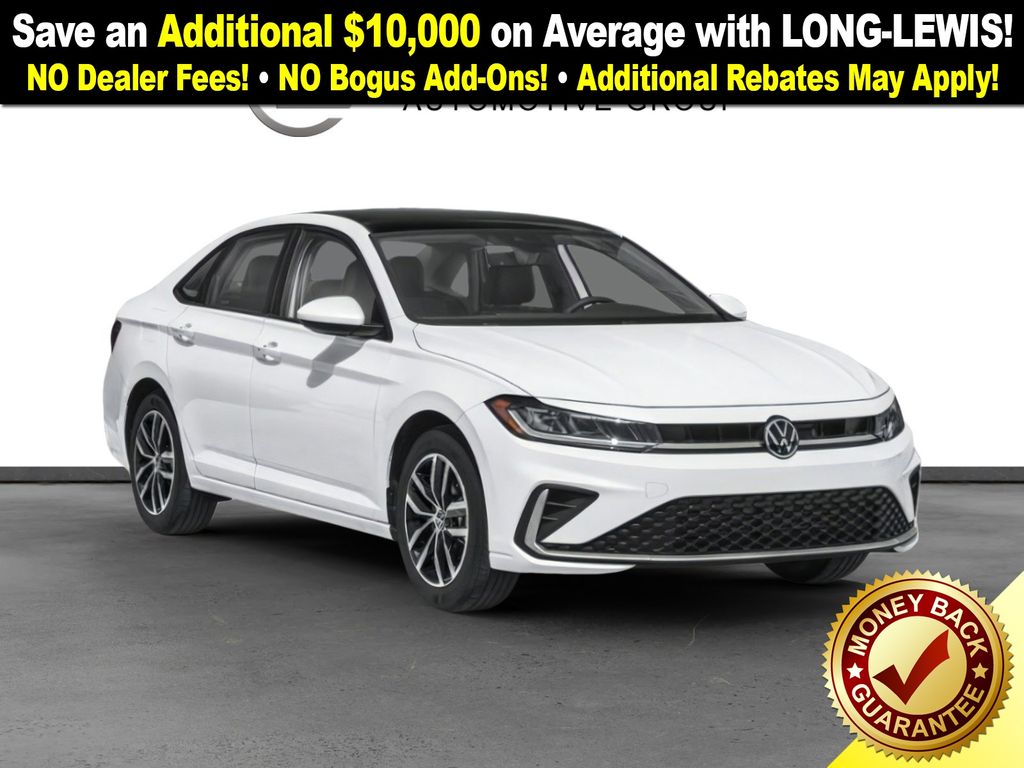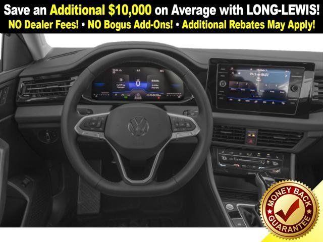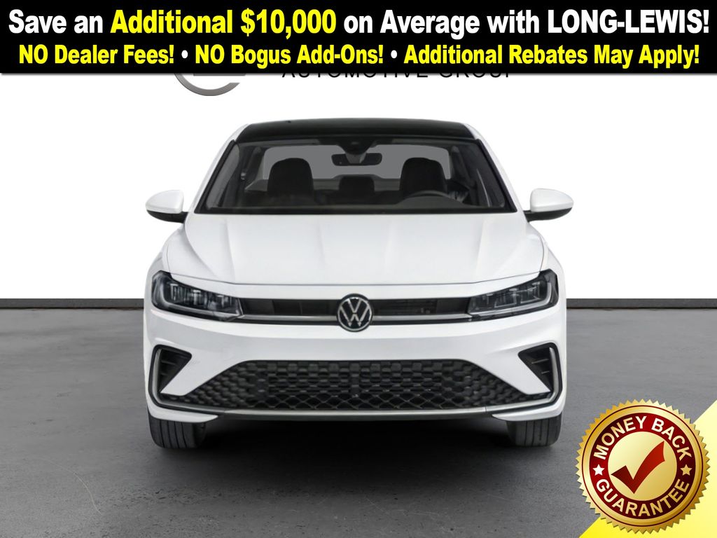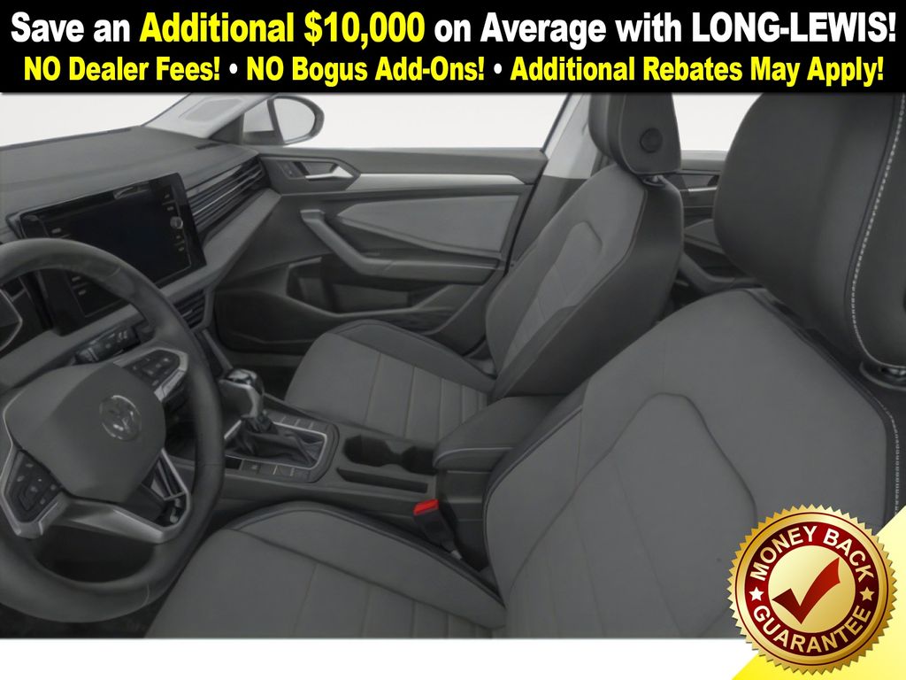 Bu53rs0p0p 2026 Volkswagen Jetta 1.5T SE NVC FWD 8-Speed Automatic with Tiptronic 1.5L I-4 DI DOHC Turbocharged Atlantic Blue & Storm Gra Artificial Leather, 4-Wheel Disc Brakes, 6 Speakers, ABS brakes, Active Blind Spot Monitor, Air Conditioning, Alloy wheels, AM/FM radio: SiriusXM with 360L, Auto-dimming Rear-View mirror, Automatic temperature control, Brake assist, Bumpers: body-color, CloudTex and V-Tex Leatherette Seat Trim, Delay-off headlights, Driver door bin, Driver vanity mirror, Dual front impact airbags, Dual front side impact airbags, Electronic Stability Control, Emergency communication system: VW Car-Net Safe & Secure 5-year, Exterior Parking Camera Rear, Front anti-roll bar, Front Bucket Seats, Front Center Armrest, Front dual zone A/C, Front wheel independent suspension, Fully automatic headlights, Heated door mirrors, Heated Front Seats, Heated front seats, Illuminated entry, Leather Shift Knob, Leather steering wheel, Low tire pressure warning, Occupant sensing airbag, Outside temperature display, Overhead airbag, Overhead console, Panic alarm, Passenger door bin, Passenger vanity mirror, Power door mirrors, Power driver seat, Power moonroof: Panoramic, Power steering, Power windows, Radio data system, Radio: MIB3 Composition Media with 8" Touchscreen, Rain sensing wipers, Rear anti-roll bar, Rear reading lights, Rear seat center armrest, Rear window defroster, Remote keyless entry, Speed control, Speed-sensing steering, Split folding rear seat, Steering wheel mounted audio controls, Tachometer, Telescoping steering wheel, Tilt steering wheel, Traction control, Trip computer, Variably intermittent wipers, Wheels: 17" Twin 5-Spoke 2-Tone Machined Alloy, Atlantic Blue & Storm Gra Artificial Leather.