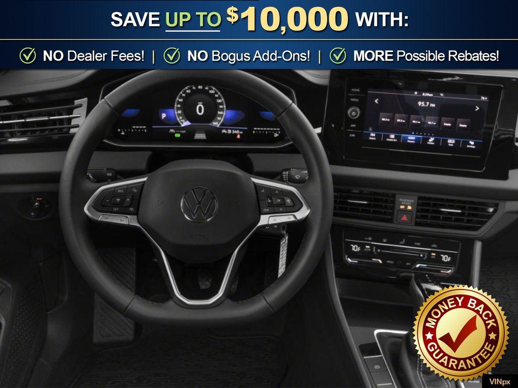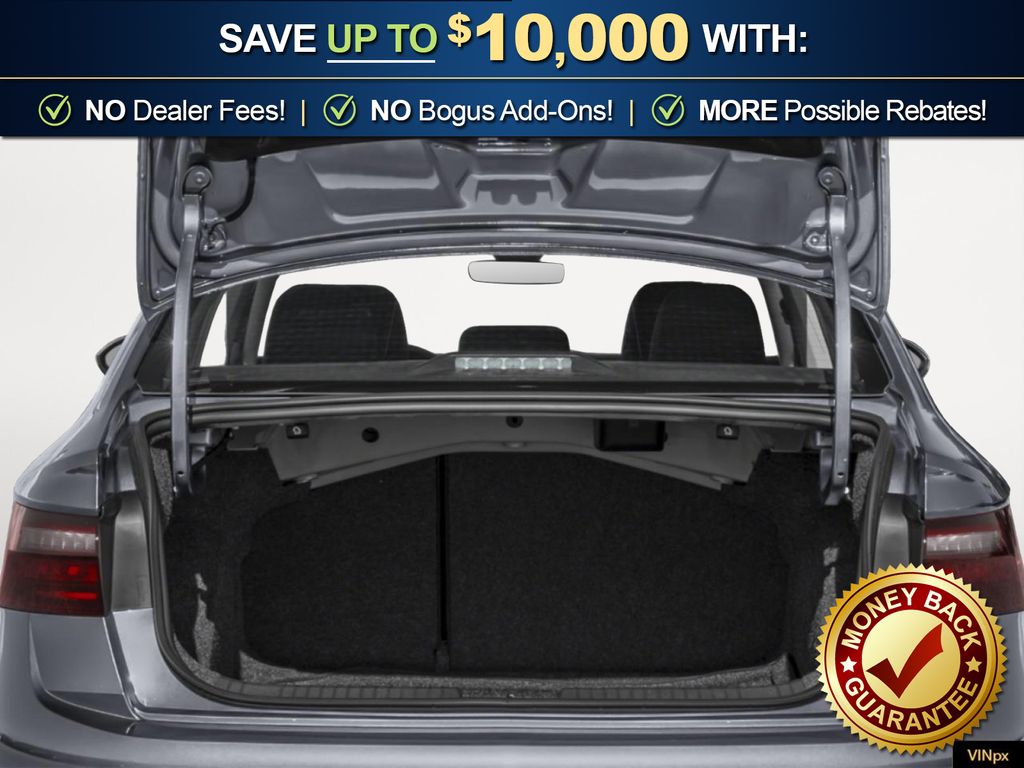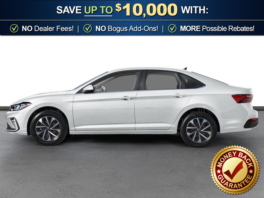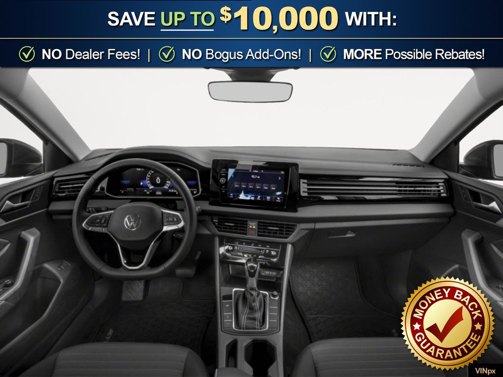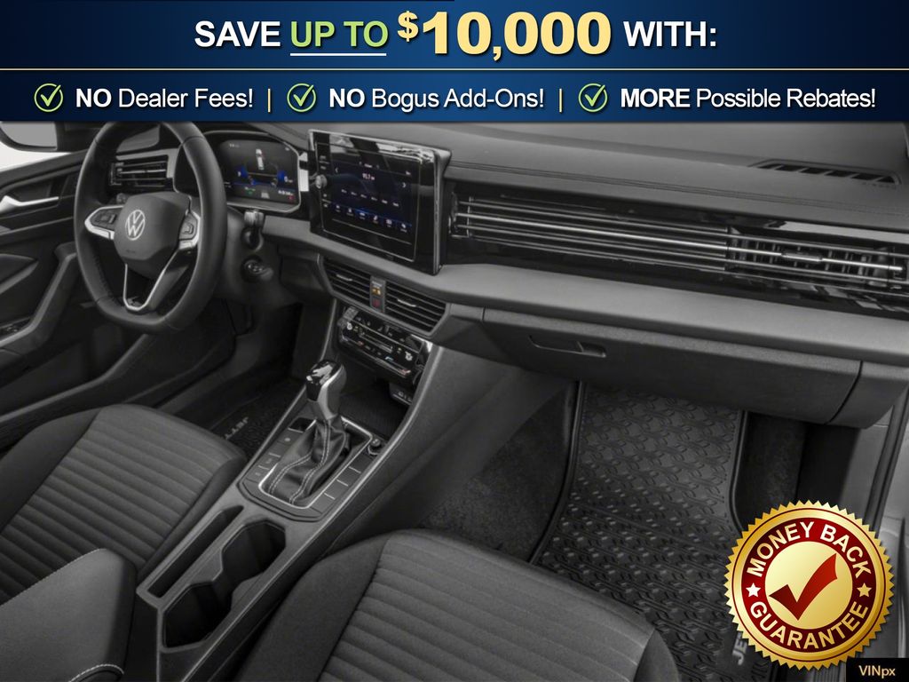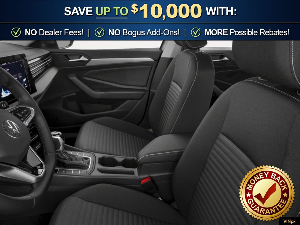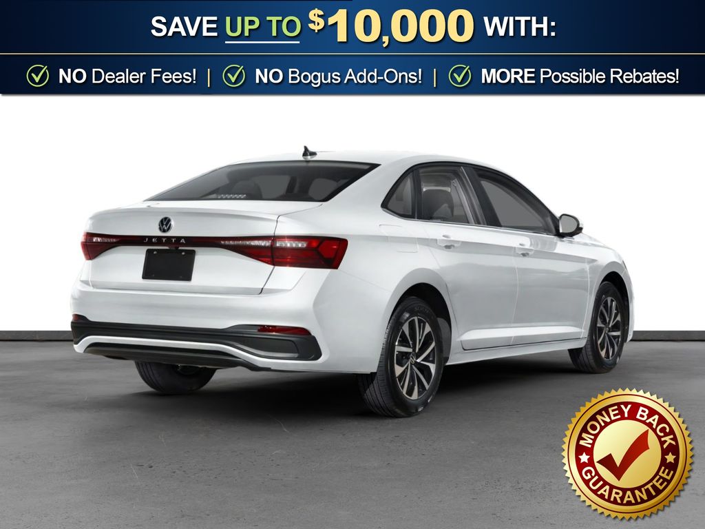 Pure White 2026 Volkswagen Jetta 1.5T S NVC FWD 8-Speed Automatic with Tiptronic 1.5L I-4 DI DOHC Turbocharged Titan Black Cloth, 4 Speakers, 4-Wheel Disc Brakes, ABS brakes, Active Blind Spot Monitor, Air Conditioning, Alloy wheels, Auto-dimming Rear-View mirror, Automatic temperature control, Brake assist, Bumpers: body-color, Cloth Seat Trim, Delay-off headlights, Driver door bin, Driver vanity mirror, Dual front impact airbags, Dual front side impact airbags, Electronic Stability Control, Emergency communication system: VW Car-Net Safe & Secure 5-year, Exterior Parking Camera Rear, Front anti-roll bar, Front Bucket Seats, Front Center Armrest, Front dual zone A/C, Front Seats, Front wheel independent suspension, Fully automatic headlights, Heated door mirrors, Illuminated entry, Leather Shift Knob, Leather steering wheel, Low tire pressure warning, Occupant sensing airbag, Outside temperature display, Overhead airbag, Overhead console, Panic alarm, Passenger door bin, Passenger vanity mirror, Power door mirrors, Power steering, Power windows, Radio data system, Radio: MIB3 Composition Color with 8" Touchscreen, Rain sensing wipers, Rear anti-roll bar, Rear reading lights, Rear window defroster, Remote keyless entry, Speed control, Speed-sensing steering, Split folding rear seat, Steering wheel mounted audio controls, Tachometer, Telescoping steering wheel, Tilt steering wheel, Traction control, Trip computer, Variably intermittent wipers, Wheels: 16" 2-Tone Machined Alloy, Titan Black Cloth.