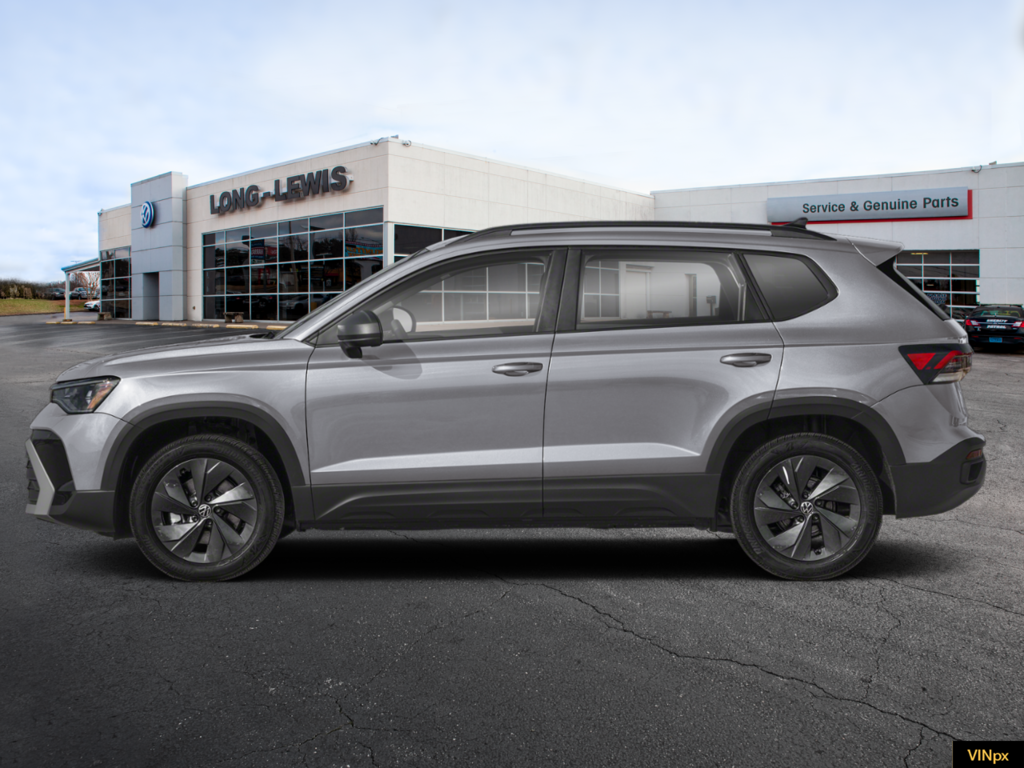 Pyrite Silver Metallic 2026 Volkswagen Taos 1.5T S NVT FWD 8-Speed Automatic with Tiptronic 1.5L I4 Turbocharged DOHC 16V LEV3-SULEV30 174hp 4-Wheel Disc Brakes, 6 Speakers, ABS brakes, Active Blind Spot Monitor, Air Conditioning, Alloy wheels, AM/FM radio, Auto High-beam Headlights, Brake assist, Bumpers: body-color, Cloth Seating Surfaces, Compass, Delay-off headlights, Driver door bin, Driver vanity mirror, Dual front impact airbags, Dual front side impact airbags, Electronic Stability Control, Emergency communication system: VW Car-Net Safe & Secure 5-year, Exterior Parking Camera Rear, Front anti-roll bar, Front Bucket Seats, Front Center Armrest, Front reading lights, Front Strut Rear Torsion Beam Suspension, Front wheel independent suspension, Fully automatic headlights, Heated steering wheel, Illuminated entry, Leather Shift Knob, Low tire pressure warning, Occupant sensing airbag, Outside temperature display, Overhead airbag, Overhead console, Panic alarm, Passenger door bin, Passenger vanity mirror, Power door mirrors, Power steering, Power windows, Radio data system, Radio: MIB3 Composition Color AM/FM, Rain sensing wipers, Rear anti-roll bar, Rear seat center armrest, Rear window defroster, Rear window wiper, Remote keyless entry, Speed control, Speed-sensing steering, Split folding rear seat, Spoiler, Steering wheel mounted audio controls, Tachometer, Telescoping steering wheel, Tilt steering wheel, Traction control, Trip computer, Variably intermittent wipers, Wheels: 17" Dark Silver Painted Alloy.