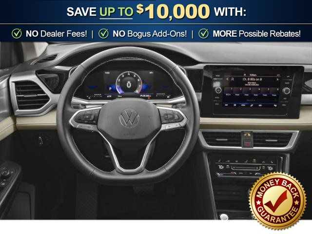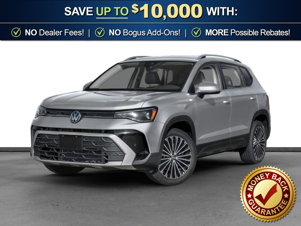 Pyrite Silver Metallic 2026 Volkswagen Taos 1.5T SE NVT FWD 8-Speed Automatic with Tiptronic 1.5L I4 Turbocharged DOHC 16V LEV3-SULEV30 174hp 4-Wheel Disc Brakes, 6 Speakers, ABS brakes, Active Blind Spot Monitor, Air Conditioning, Alloy wheels, AM/FM radio: SiriusXM with 360L, Auto High-beam Headlights, Automatic temperature control, Brake assist, Bumpers: body-color, Cloudtex and Cloth Seating Surfaces, Compass, Delay-off headlights, Driver door bin, Driver vanity mirror, Dual front impact airbags, Dual front side impact airbags, Electronic Stability Control, Emergency communication system: VW Car-Net Safe & Secure 5-year, Exterior Parking Camera Rear, Front anti-roll bar, Front Bucket Seats, Front Center Armrest, Front dual zone A/C, Front reading lights, Front Strut Rear Torsion Beam Suspension, Front wheel independent suspension, Fully automatic headlights, Heated door mirrors, Heated Front Bucket Seats, Heated front seats, Heated steering wheel, Illuminated entry, Leather Shift Knob, Low tire pressure warning, Occupant sensing airbag, Outside temperature display, Overhead airbag, Overhead console, Panic alarm, Passenger door bin, Passenger vanity mirror, Power door mirrors, Power driver seat, Power steering, Power windows, Radio data system, Radio: MIB3 Composition Media AM/FM/HD, Rain sensing wipers, Rear anti-roll bar, Rear seat center armrest, Rear window defroster, Rear window wiper, Remote keyless entry, Security system, Speed control, Speed-sensing steering, Split folding rear seat, Spoiler, Steering wheel mounted audio controls, Tachometer, Telescoping steering wheel, Tilt steering wheel, Traction control, Trip computer, Variably intermittent wipers, Wheels: 18" 2-Tone Machined Alloy.