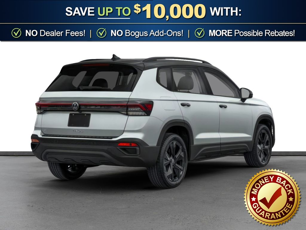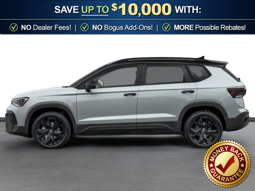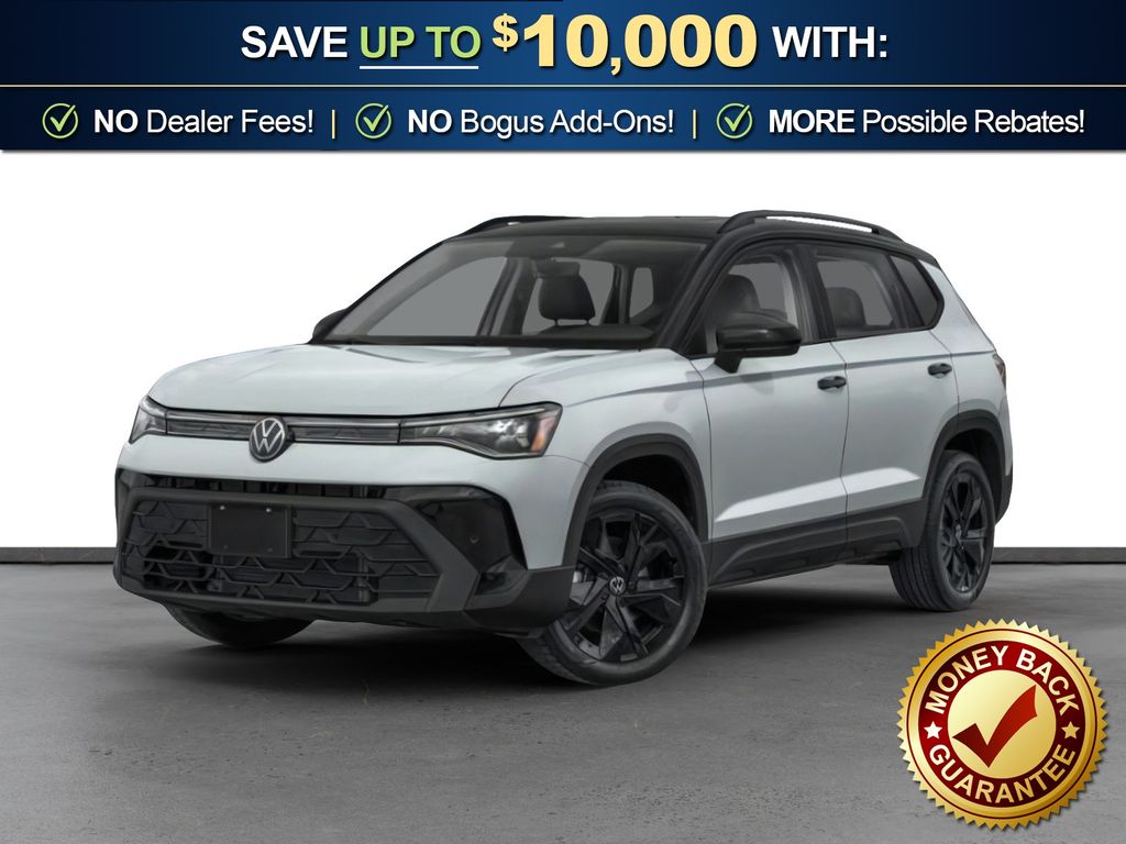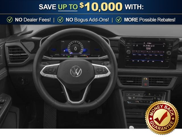 Cl26sz9711 2026 Volkswagen Taos 1.5T SE Black NVT FWD 8-Speed Automatic with Tiptronic 1.5L I4 Turbocharged DOHC 16V LEV3-SULEV30 174hp 4-Wheel Disc Brakes, 6 Speakers, ABS brakes, Active Blind Spot Monitor, Air Conditioning, Alloy wheels, AM/FM radio: SiriusXM with 360L, Auto High-beam Headlights, Automatic temperature control, Brake assist, Bumpers: body-color, Cloudtex and Cloth Seating Surfaces, Compass, Delay-off headlights, Driver door bin, Driver vanity mirror, Dual front impact airbags, Dual front side impact airbags, Electronic Stability Control, Emergency communication system: VW Car-Net Safe & Secure 5-year, Exterior Parking Camera Rear, Front anti-roll bar, Front Bucket Seats, Front Center Armrest, Front dual zone A/C, Front reading lights, Front Strut Rear Torsion Beam Suspension, Front wheel independent suspension, Fully automatic headlights, Heated door mirrors, Heated Front Bucket Seats, Heated front seats, Heated steering wheel, Illuminated entry, Leather Shift Knob, Low tire pressure warning, Occupant sensing airbag, Outside temperature display, Overhead airbag, Overhead console, Panic alarm, Passenger door bin, Passenger vanity mirror, Power door mirrors, Power driver seat, Power moonroof, Power steering, Power windows, Radio data system, Radio: MIB3 Composition Media AM/FM/HD, Rain sensing wipers, Rear anti-roll bar, Rear seat center armrest, Rear window defroster, Rear window wiper, Remote keyless entry, Security system, Speed control, Speed-sensing steering, Split folding rear seat, Spoiler, Steering wheel mounted audio controls, Tachometer, Telescoping steering wheel, Tilt steering wheel, Traction control, Trip computer, Variably intermittent wipers, Wheels: 18" Black Painted Alloy.