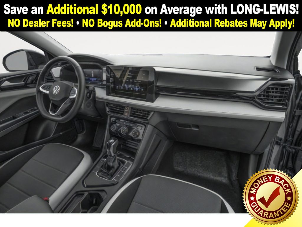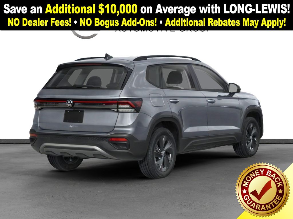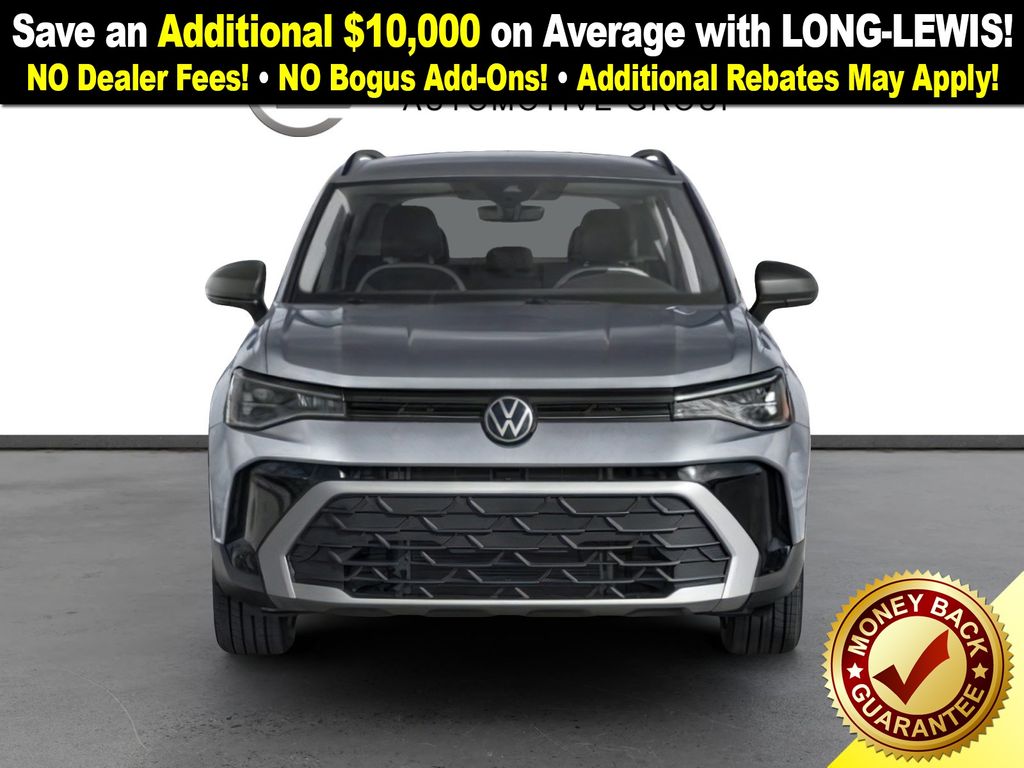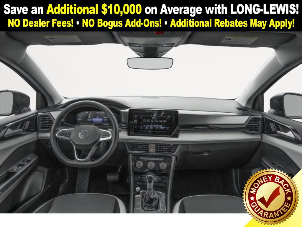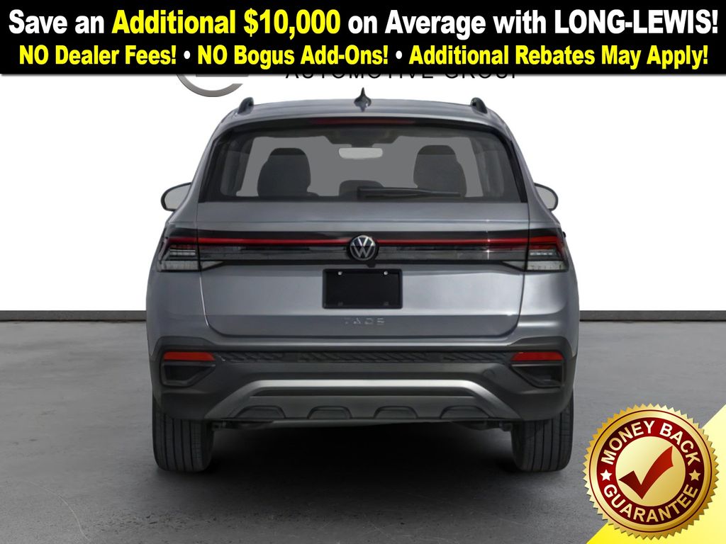 Cl22szu1u1 2026 Volkswagen Taos 1.5T S NVT FWD 8-Speed Automatic with Tiptronic 1.5L I4 Turbocharged DOHC 16V LEV3-SULEV30 174hp 4-Wheel Disc Brakes, 6 Speakers, ABS brakes, Active Blind Spot Monitor, Air Conditioning, Alloy wheels, AM/FM radio, Auto High-beam Headlights, Brake assist, Bumpers: body-color, Cloth Seating Surfaces, Compass, Delay-off headlights, Driver door bin, Driver vanity mirror, Dual front impact airbags, Dual front side impact airbags, Electronic Stability Control, Emergency communication system: VW Car-Net Safe & Secure 5-year, Exterior Parking Camera Rear, Front anti-roll bar, Front Bucket Seats, Front Center Armrest, Front reading lights, Front Strut Rear Torsion Beam Suspension, Front wheel independent suspension, Fully automatic headlights, Heated steering wheel, Illuminated entry, Leather Shift Knob, Low tire pressure warning, Occupant sensing airbag, Outside temperature display, Overhead airbag, Overhead console, Panic alarm, Passenger door bin, Passenger vanity mirror, Power door mirrors, Power steering, Power windows, Radio data system, Radio: MIB3 Composition Color AM/FM, Rain sensing wipers, Rear anti-roll bar, Rear seat center armrest, Rear window defroster, Rear window wiper, Remote keyless entry, Speed control, Speed-sensing steering, Split folding rear seat, Spoiler, Steering wheel mounted audio controls, Tachometer, Telescoping steering wheel, Tilt steering wheel, Traction control, Trip computer, Variably intermittent wipers, Wheels: 17" Dark Silver Painted Alloy.