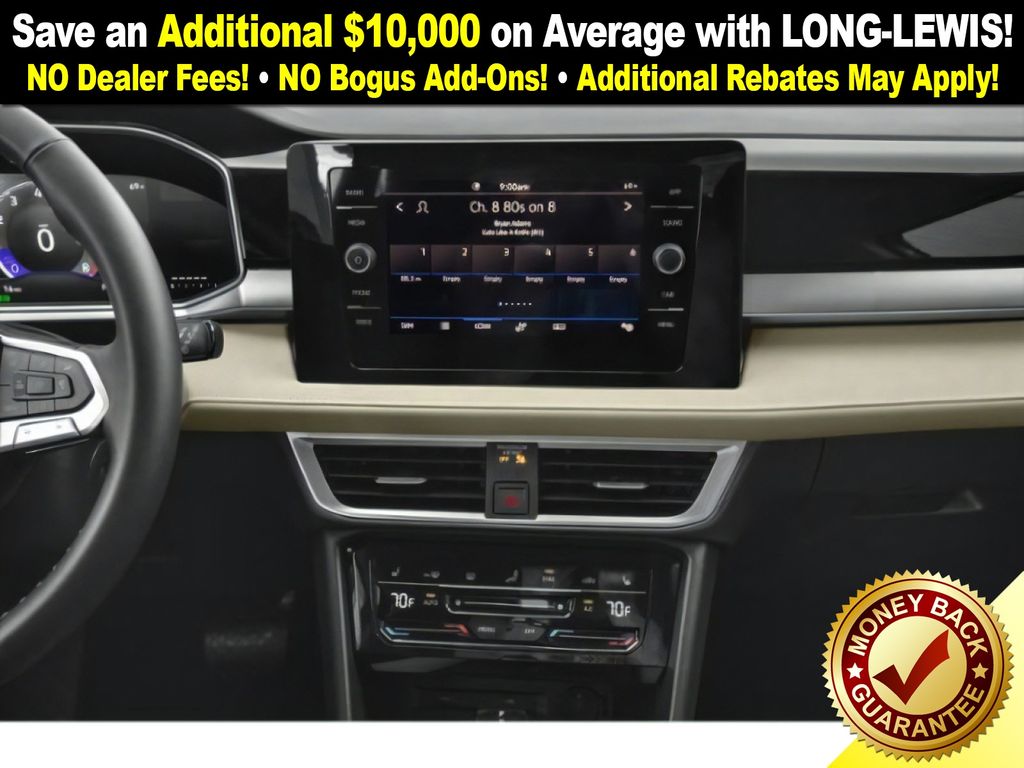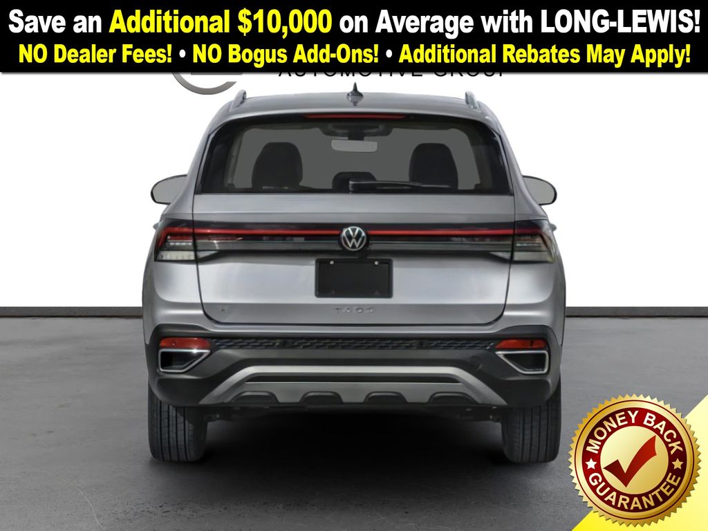 Cl23sz0q0q 2026 Volkswagen Taos 1.5T SE NVT FWD 8-Speed Automatic with Tiptronic 1.5L I4 Turbocharged DOHC 16V LEV3-SULEV30 174hp 4-Wheel Disc Brakes, 6 Speakers, ABS brakes, Active Blind Spot Monitor, Air Conditioning, Alloy wheels, AM/FM radio: SiriusXM with 360L, Auto High-beam Headlights, Automatic temperature control, Brake assist, Bumpers: body-color, Cloudtex and Cloth Seating Surfaces, Compass, Delay-off headlights, Driver door bin, Driver vanity mirror, Dual front impact airbags, Dual front side impact airbags, Electronic Stability Control, Emergency communication system: VW Car-Net Safe & Secure 5-year, Exterior Parking Camera Rear, Front anti-roll bar, Front Bucket Seats, Front Center Armrest, Front dual zone A/C, Front reading lights, Front Strut Rear Torsion Beam Suspension, Front wheel independent suspension, Fully automatic headlights, Heated door mirrors, Heated Front Bucket Seats, Heated front seats, Heated steering wheel, Illuminated entry, Leather Shift Knob, Low tire pressure warning, Occupant sensing airbag, Outside temperature display, Overhead airbag, Overhead console, Panic alarm, Passenger door bin, Passenger vanity mirror, Power door mirrors, Power driver seat, Power steering, Power windows, Radio data system, Radio: MIB3 Composition Media AM/FM/HD, Rain sensing wipers, Rear anti-roll bar, Rear seat center armrest, Rear window defroster, Rear window wiper, Remote keyless entry, Security system, Speed control, Speed-sensing steering, Split folding rear seat, Spoiler, Steering wheel mounted audio controls, Tachometer, Telescoping steering wheel, Tilt steering wheel, Traction control, Trip computer, Variably intermittent wipers, Wheels: 18" 2-Tone Machined Alloy.
