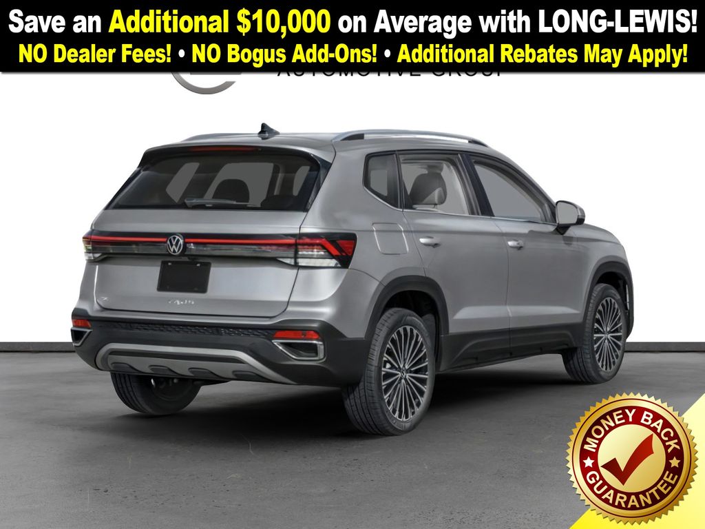 Cl23sz2t2t 2026 Volkswagen Taos 1.5T SE NVT FWD 8-Speed Automatic with Tiptronic 1.5L I4 Turbocharged DOHC 16V LEV3-SULEV30 174hp 4-Wheel Disc Brakes, 6 Speakers, ABS brakes, Active Blind Spot Monitor, Air Conditioning, Alloy wheels, AM/FM radio: SiriusXM with 360L, Auto High-beam Headlights, Automatic temperature control, Brake assist, Bumpers: body-color, Cloudtex and Cloth Seating Surfaces, Compass, Delay-off headlights, Driver door bin, Driver vanity mirror, Dual front impact airbags, Dual front side impact airbags, Electronic Stability Control, Emergency communication system: VW Car-Net Safe & Secure 5-year, Exterior Parking Camera Rear, Front anti-roll bar, Front Bucket Seats, Front Center Armrest, Front dual zone A/C, Front reading lights, Front Strut Rear Torsion Beam Suspension, Front wheel independent suspension, Fully automatic headlights, Heated door mirrors, Heated Front Bucket Seats, Heated front seats, Heated steering wheel, Illuminated entry, Leather Shift Knob, Low tire pressure warning, Occupant sensing airbag, Outside temperature display, Overhead airbag, Overhead console, Panic alarm, Passenger door bin, Passenger vanity mirror, Power door mirrors, Power driver seat, Power steering, Power windows, Radio data system, Radio: MIB3 Composition Media AM/FM/HD, Rain sensing wipers, Rear anti-roll bar, Rear seat center armrest, Rear window defroster, Rear window wiper, Remote keyless entry, Security system, Speed control, Speed-sensing steering, Split folding rear seat, Spoiler, Steering wheel mounted audio controls, Tachometer, Telescoping steering wheel, Tilt steering wheel, Traction control, Trip computer, Variably intermittent wipers, Wheels: 18" 2-Tone Machined Alloy.