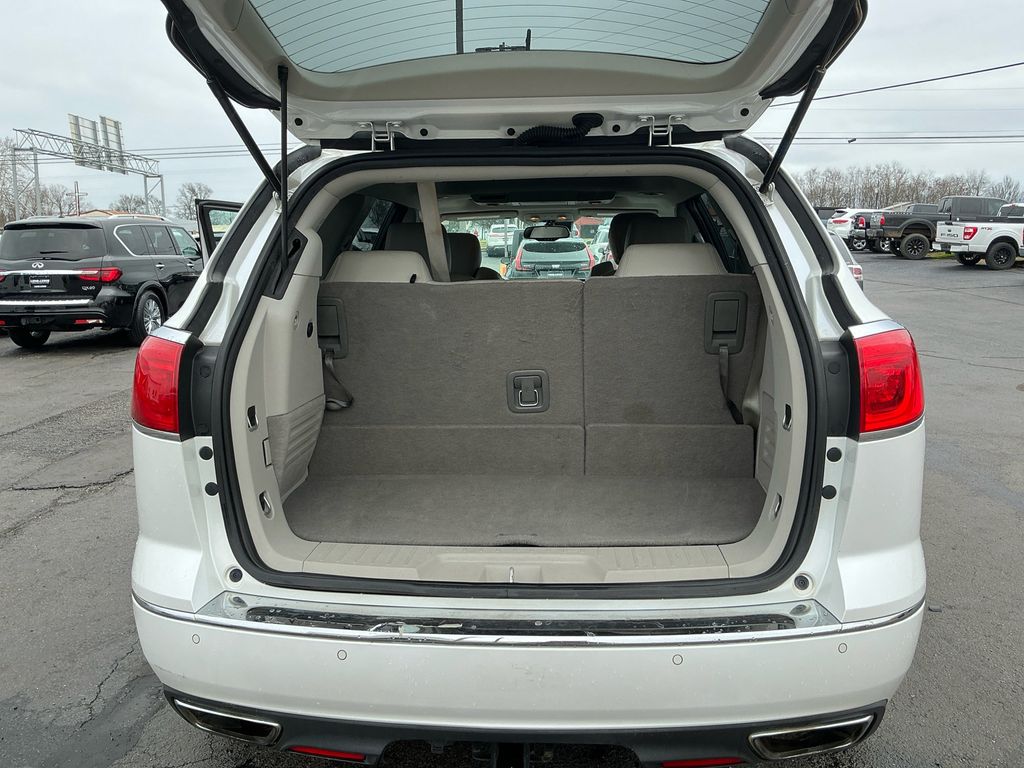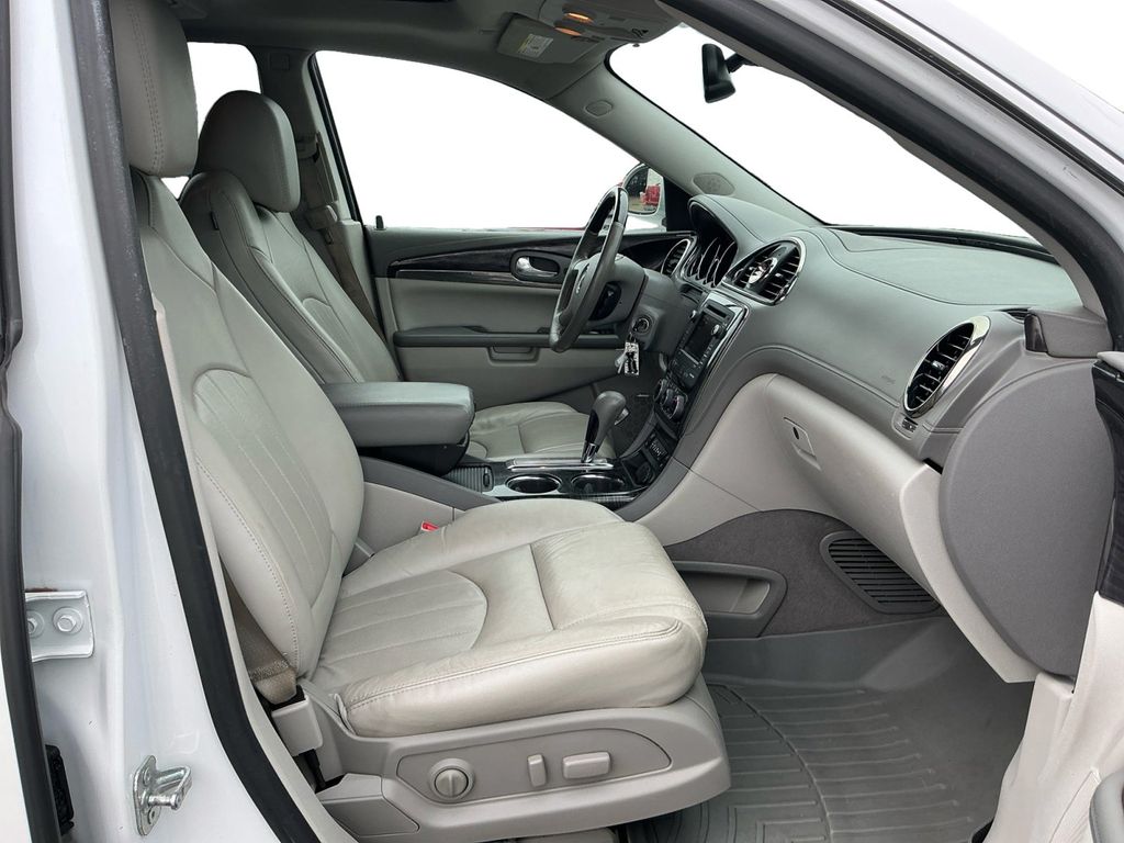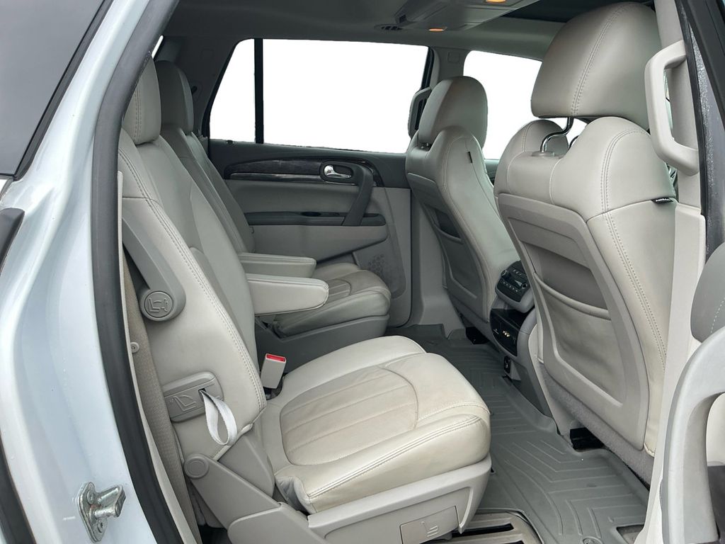 2017 Buick Enclave Premium Group White Frost Tricoat Premium Group FWD 6-Speed Automatic Electronic with Overdrive 3.6L V6 SIDI VVT FWD, 10 Speakers, 120-Volt 3-Prong Household-Style Power Outlet, 3.16 Axle Ratio, 3rd row seats: split-bench, 4-Wheel Disc Brakes, 4500lbs Trailering Package, 7-Passenger Seating, 8-Way Power Driver Seat Adjuster, 8-Way Power Passenger Seat Adjuster, ABS brakes, Air Conditioning, Alloy wheels, AM/FM radio: SiriusXM, Articulating Headlights, Auto tilt-away steering wheel, Auto-dimming door mirrors, Auto-dimming Rear-View mirror, Automatic temperature control, Bose Advanced 10-Speaker Audio System, Bose Performance-Enhanced 10-Speaker System, Bose Sound System, Brake assist, Bumpers: body-color, Cargo Convenience Package, Cargo Net, Cargo Shade Area Cover, CD player, Compass, Delay-off headlights, Driver door bin, Driver vanity mirror, Dual front impact airbags, Dual front side impact airbags, Electronic Stability Control, Emergency communication system: OnStar Guidance, Exterior Parking Camera Rear, Forward Collision Alert & Lane Departure Warning, Four wheel independent suspension, Front anti-roll bar, Front Bucket Seats, Front Center Armrest w/Storage, Front dual zone A/C, Front reading lights, Fully automatic headlights, Garage door transmitter, Heated & Cooled Driver & Front Passenger Seats, Heated door mirrors, Heated front seats, Heated Steering Wheel, Heated steering wheel, Heavy-Duty Cooling System, High intensity discharge headlights: Bi-Xenon, Illuminated entry, Leather steering wheel, Low tire pressure warning, Memory seat, Memory Settings, Navigation System, NavTraffic, Occupant sensing airbag, Outside temperature display, Overhead airbag, Panic alarm, Passenger door bin, Passenger vanity mirror, Perforated Leather-Appointed Seat Trim, Power door mirrors, Power driver seat, Power Liftgate, Power passenger seat, Power steering, Power Tilt & Telescopic Steering Column, Power Tilt-Sliding Moonroof, Power windows, Power-Folding Heated Body-Color Outside Mirrors, Preferred Equipment Group 1SN, Premium Package, Radio data system, Radio: Color Touch AM/FM/CD/DVD/Nav (DISC), Radio: Color Touch AM/FM/CD/Nav w/IntelliLink, Rear air conditioning, Rear anti-roll bar, Rear audio controls, Rear Audio System Controls, Rear Parking Sensors, Rear reading lights, Rear Seat Entertainment System, Rear window defroster, Rear window wiper, Remote keyless entry, Roof rack: rails only, Security system, Side Blind Zone Alert w/Cross Traffic Alert, Speed control, Speed-sensing steering, Spoiler, Steering wheel memory, Steering wheel mounted audio controls, Tachometer, Telescoping steering wheel, Tilt steering wheel, Traction control, Trailer Hitch, Trip computer, Turn signal indicator mirrors, Variably intermittent wipers, Ventilated front seats, Voltmeter, Wheels: 19" Chrome-Clad Cast Aluminum, FWD.