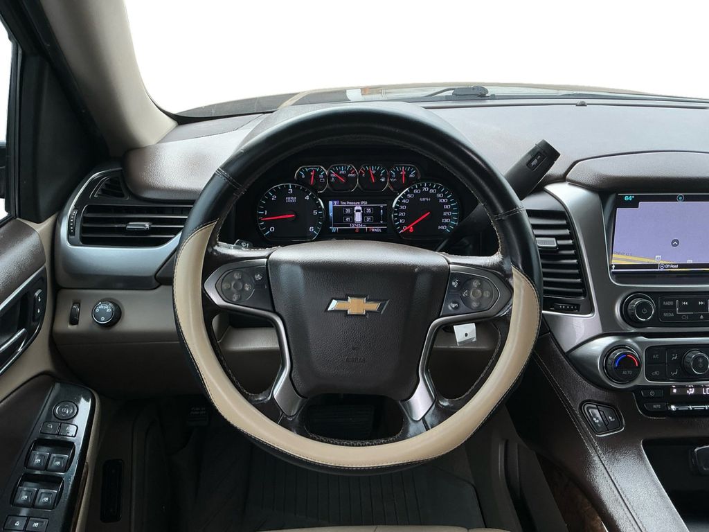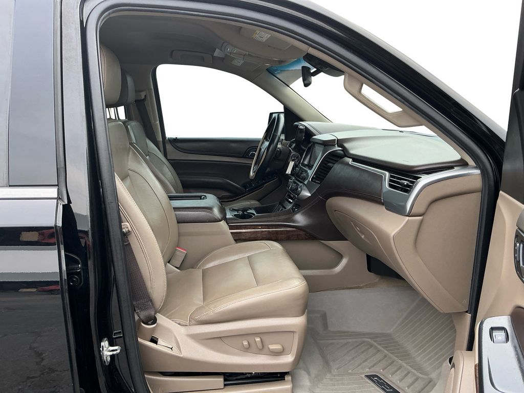 2018 Chevrolet Tahoe LT Black LT RWD 6-Speed Automatic Electronic with Overdrive EcoTec3 5.3L V8 Cocoa/Dune Leather, 18" x 8.5" Aluminum Wheels, 1st & 2nd Row Color-Keyed Carpeted Floor Mats, 2nd Row 60/40 Split-Folding Manual Bench, 2nd Row Manual Bucket Seats, 3.08 Rear Axle Ratio, 3rd Row Manual 60/40 Split-Folding Fold Flat Bench, 3rd row seats: split-bench, 4-Wheel Antilock Disc Brakes w/Brake Assist, 4-Wheel Disc Brakes, 5 12-Volt Auxiliary Power Outlets, 9 Speakers, ABS brakes, Adjustable pedals, Air Conditioning, All-Weather Floor Liner Package (LPO), Alloy wheels, AM/FM radio: SiriusXM, Apple CarPlay/Android Auto, Auto High-beam Headlights, Auto-Dimming Inside Rear-View Mirror, Auto-dimming Rear-View mirror, Automatic temperature control, Black Assist Steps, Bluetooth® For Phone, Bose Premium 9-Speaker System, Brake assist, Bumpers: body-color, Cargo Net, CD player, Collapsible Cargo Area Organizer (LPO), Color-Keyed Carpeting Floor Covering, Compass, Delay-off headlights, Driver door bin, Driver Inboard & Front Passenger Airbags, Driver vanity mirror, Dual front impact airbags, Dual front side impact airbags, Electronic Cruise Control w/Set & Resume Speed, Electronic Stability Control, Emergency communication system: OnStar Guidance, Enhanced Driver Alert Package (Y86), Extended-Range Remote Keyless Entry, Exterior Parking Camera Rear, Floor Console, Forward Collision Alert, Front anti-roll bar, Front Bucket Seats, Front Center Armrest, Front dual zone A/C, Front Heated Reclining Bucket Seats, Front Passenger 6-Way Power Seat Adjuster, Front reading lights, Front wheel independent suspension, Fully automatic headlights, Garage door transmitter, HD Radio, Heated door mirrors, Heated front seats, Illuminated entry, IntelliBeam Headlamps, Lane Keep Assist w/Lane Departure Warning, Leather-Appointed Seat Trim, Leather-Wrapped Steering Wheel, Low Speed Forward Automatic Braking, Low tire pressure warning, Memory seat, Memory Settings, Occupant sensing airbag, OnStar Basic Plan For 5 Years, Outside temperature display, Overhead airbag, Overhead console, Panic alarm, Passenger door bin, Passenger vanity mirror, Pedal memory, Power door mirrors, Power driver seat, Power Liftgate, Power passenger seat, Power steering, Power windows, Power-Adjustable Accelerator & Brake Pedals, Preferred Equipment Group 1LT, Premium audio system: Chevrolet MyLink, Premium Smooth Ride Suspension Package, Radio: Chevrolet MyLink AM/FM Stereo, Radio: Chevrolet MyLink w/Nav/AM/FM Stereo, Rain sensing wipers, Rear air conditioning, Rear anti-roll bar, Rear Park Assist w/Audible Warning, Rear reading lights, Rear seat center armrest, Rear window defroster, Rear window wiper, Remote keyless entry, Remote Vehicle Start, Roof rack: rails only, Roof-Mounted Luggage Rack Side Rails, Security system, Single-Slot CD/MP3 Player, SiriusXM NavTraffic, SiriusXM Satellite Radio, Speed control, Speed-sensing steering, Split folding rear seat, Spoiler, Steering wheel mounted audio controls, Tachometer, Telescoping steering wheel, Tilt steering wheel, Traction control, Trip computer, Universal Home Remote, Variably intermittent wipers, Voltmeter, Cocoa/Dune Leather.