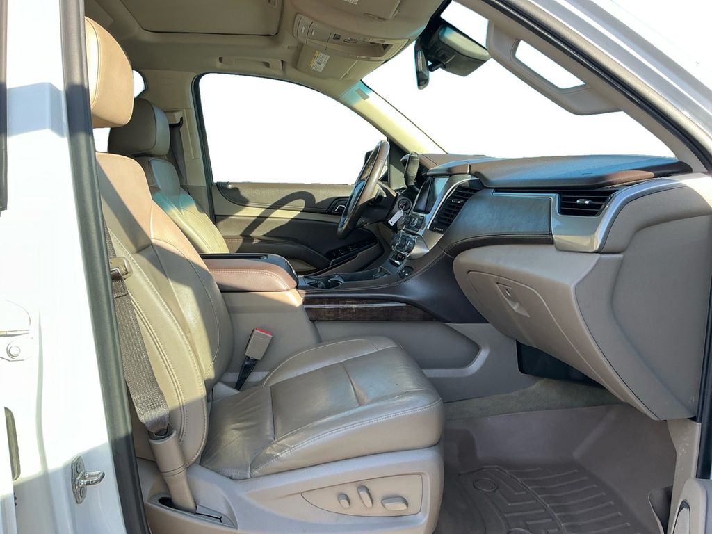 2018 Chevrolet Tahoe LT Summit White LT RWD 6-Speed Automatic Electronic with Overdrive EcoTec3 5.3L V8 Cocoa/Dune Leather, 18" x 8.5" Aluminum Wheels, 1st & 2nd Row Color-Keyed Carpeted Floor Mats, 2nd Row 60/40 Split-Folding Manual Bench, 2nd Row Manual Bucket Seats, 3rd Row Manual 60/40 Split-Folding Fold Flat Bench, 3rd row seats: split-bench, 4-Wheel Antilock Disc Brakes w/Brake Assist, 4-Wheel Disc Brakes, 5 12-Volt Auxiliary Power Outlets, 9 Speakers, ABS brakes, Adjustable pedals, Air Conditioning, Alloy wheels, AM/FM radio: SiriusXM, Apple CarPlay/Android Auto, Auto High-beam Headlights, Auto-Dimming Inside Rear-View Mirror, Auto-dimming Rear-View mirror, Automatic temperature control, Black Assist Steps, Bluetooth® For Phone, Bose Premium 9-Speaker System, Brake assist, Bumpers: body-color, Cargo Net, CD player, Color-Keyed Carpeting Floor Covering, Compass, Delay-off headlights, Driver door bin, Driver Inboard & Front Passenger Airbags, Driver vanity mirror, Dual front impact airbags, Dual front side impact airbags, Electronic Cruise Control w/Set & Resume Speed, Electronic Stability Control, Emergency communication system: OnStar Guidance, Enhanced Driver Alert Package (Y86), Extended-Range Remote Keyless Entry, Exterior Parking Camera Rear, Floor Console, Forward Collision Alert, Front anti-roll bar, Front Bucket Seats, Front Center Armrest, Front dual zone A/C, Front Heated Reclining Bucket Seats, Front Passenger 6-Way Power Seat Adjuster, Front reading lights, Front wheel independent suspension, Fully automatic headlights, Garage door transmitter, HD Radio, Heated door mirrors, Heated front seats, Illuminated entry, Integrated Trailer Brake Controller, IntelliBeam Headlamps, Lane Keep Assist w/Lane Departure Warning, Leather-Appointed Seat Trim, Leather-Wrapped Steering Wheel, License Plate Front Mounting Package, Low Speed Forward Automatic Braking, Low tire pressure warning, Max Trailering Package, Memory seat, Memory Settings, Occupant sensing airbag, OnStar Basic Plan For 5 Years, Outside temperature display, Overhead airbag, Overhead console, Panic alarm, Passenger door bin, Passenger vanity mirror, Pedal memory, Power door mirrors, Power driver seat, Power Liftgate, Power passenger seat, Power steering, Power Sunroof, Power windows, Power-Adjustable Accelerator & Brake Pedals, Preferred Equipment Group 1LT, Premium audio system: Chevrolet MyLink, Premium Smooth Ride Suspension Package, Radio: Chevrolet MyLink AM/FM Stereo, Radio: Chevrolet MyLink w/Nav/AM/FM Stereo, Rain sensing wipers, Rear air conditioning, Rear anti-roll bar, Rear Park Assist w/Audible Warning, Rear reading lights, Rear Seat Blu-Ray/DVD Entertainment System, Rear seat center armrest, Rear window defroster, Rear window wiper, Remote keyless entry, Remote Vehicle Start, Roof rack: rails only, Roof-Mounted Luggage Rack Side Rails, Security system, Single-Slot CD/MP3 Player, SiriusXM NavTraffic, SiriusXM Satellite Radio, Speed control, Speed-sensing steering, Split folding rear seat, Spoiler, Standard Suspension Package, Steering wheel mounted audio controls, Sun, Entertainment & Destinations Package, Tachometer, Telescoping steering wheel, Tilt steering wheel, Traction control, Trip computer, Universal Home Remote, Variably intermittent wipers, Voltmeter, Wheels: 20" x 9" Polished-Aluminum, Cocoa/Dune Leather.