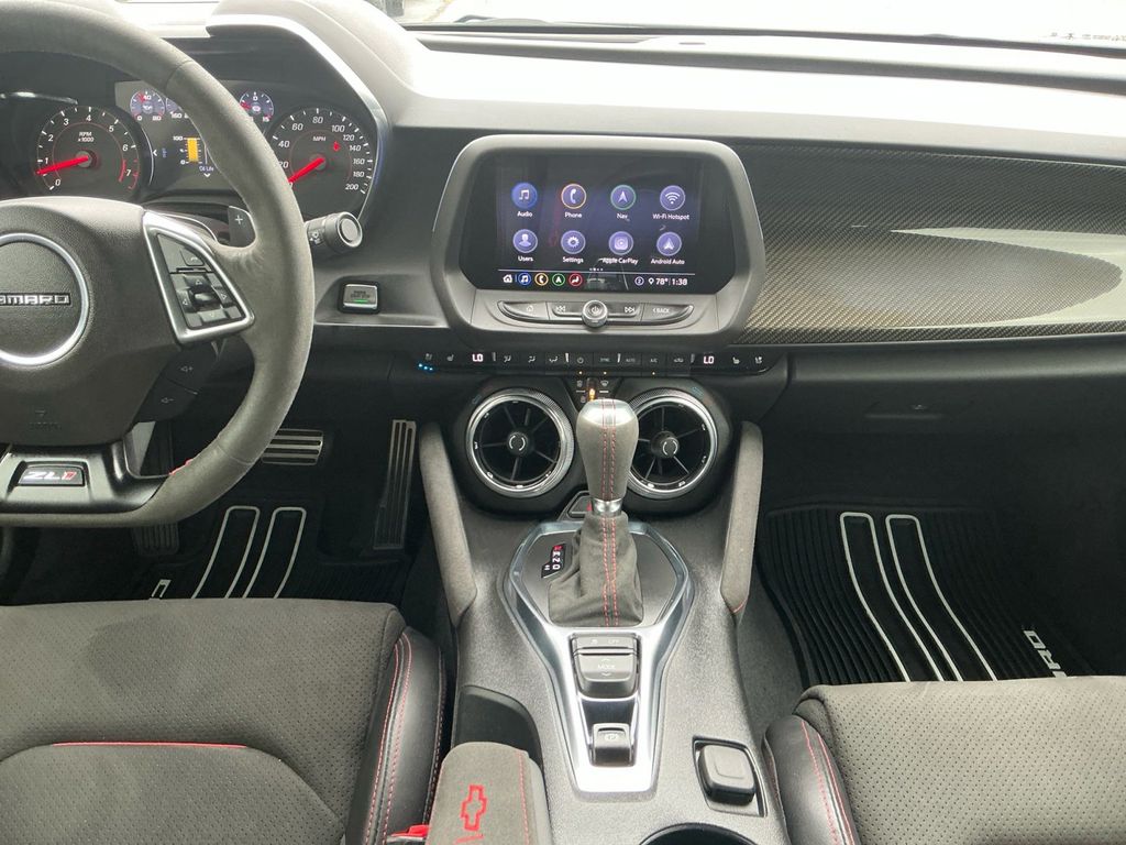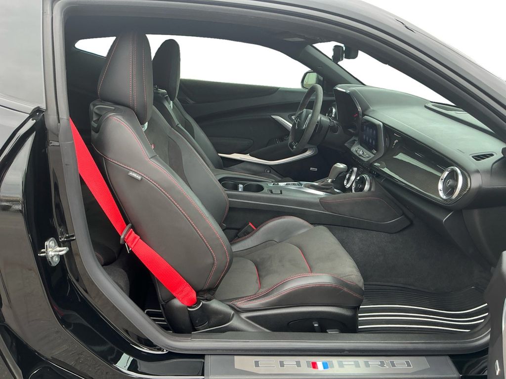 2020 Chevrolet Camaro ZL1 Black ZL1 RWD 10-Speed Automatic 6.2L V8 Supercharged 2.85 Rear Axle Ratio, 4-Wheel Disc Brakes, 6-Way Power Front Passenger Seat Adjuster, 8-Way Power Driver Seat Adjuster, 9 Speakers, ABS brakes, Adaptive suspension, Air Conditioning, Alloy wheels, AM/FM radio: SiriusXM with 360L, Apple CarPlay/Android Auto, Auto-dimming door mirrors, Automatic temperature control, Bluetooth® For Phone, Bose Premium 9-Speaker Audio System Feature, Brake assist, Bumpers: body-color, Carbon Fiber Instrument Panel Molding, Compass, Delay-off headlights, Driver door bin, Driver vanity mirror, Dual front impact airbags, Dual front side impact airbags, Electronic Stability Control, Embroidered Center Console Lid w/Logo (LPO), Exterior Parking Camera Rear, Four wheel independent suspension, Front anti-roll bar, Front Bucket Seats, Front Center Armrest, Front dual zone A/C, Front reading lights, Fully automatic headlights, Heads-Up Display, Heated door mirrors, Heated Driver & Front Passenger Seats, Heated front seats, Heated steering wheel, High-Intensity Discharge Headlights, Illuminated entry, Knee airbag, Leather-Trimmed Seat Trim w/Sueded Inserts, Low tire pressure warning, Memory seat, Occupant sensing airbag, Outside temperature display, Overhead airbag, Paddle-Shift Manual Controls, Panic alarm, Passenger door bin, Passenger vanity mirror, Power door mirrors, Power driver seat, Power passenger seat, Power steering, Power windows, Preferred Equipment Group ZL1, Premium audio system: Chevrolet Infotainment System, Radio data system, Radio: Chevrolet Infotainment 3 Plus System, Radio: Chevrolet Infotainment 3 Premium System, Rear anti-roll bar, Rear window defroster, RECARO Performance Front Bucket Seats, Red Seat Belt Color, Remote keyless entry, Remote Vehicle Starter System, Security system, SiriusXM w/360L, Speed control, Speed-sensing steering, Spoiler, Sport steering wheel, Steering wheel mounted audio controls, Tachometer, Telescoping steering wheel, Tilt steering wheel, Traction control, Trip computer, Variably intermittent wipers, Ventilated Driver & Front Passenger Seats, Ventilated front seats, Voltmeter, Wheels: 20" x 10" Fr & 20" x 11" Rr Dark Graphite.