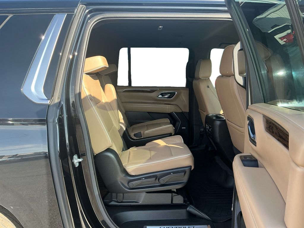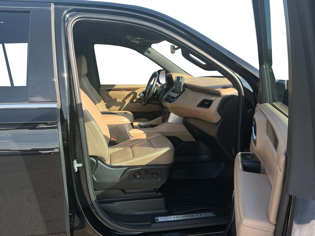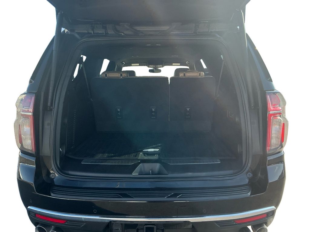 2021 Chevrolet Suburban Premier Black Premier RWD 10-Speed Automatic with Overdrive EcoTec3 5.3L V8 10 Speakers, 12-Way Power Driver & Passenger Seat Adjusters, 1st & 2nd Row Color-Keyed Carpeted Floor Mats, 1st, 2nd & 3rd Row All-Weather Floor Liners (LPO), 2 USB Data Ports, 20" x 9" Polished Aluminum Wheels, 3.23 Rear Axle Ratio, 3rd Row 60/40 Power-Folding Split-Bench, 3rd row seats: split-bench, 4-Wheel Disc Brakes, ABS brakes, Adaptive suspension, Air Conditioning, Alloy wheels, AM/FM radio: SiriusXM with 360L, Apple CarPlay/Android Auto, Auto High-beam Headlights, Auto-dimming door mirrors, Auto-Dimming Inside Rear-View Mirror, Auto-dimming Rear-View mirror, Auto-leveling suspension, Automatic Heated Steering Wheel, Automatic temperature control, Bose 10-Speaker Surround w/CenterPoint, Brake assist, Bright Front & Rear Door Sill Plates, Bumpers: body-color, Chrome Door Handles w/Body-Color Strip, Chrome Mirror Caps, Color-Keyed Carpeting Floor Covering, Compass, Delay-off headlights, Driver & Front Outboard Passenger Airbags, Driver door bin, Driver vanity mirror, Dual Exhaust System, Dual front impact airbags, Dual front side impact airbags, Electronic Stability Control, Emergency communication system: OnStar and Chevrolet connected services capable, Enhanced Driver Information Center, Floor Console w/Storage Area, Four wheel independent suspension, Front & Rear Park Assist, Front anti-roll bar, Front Bucket Seats, Front Center Armrest, Front dual zone A/C, Front reading lights, Fully automatic headlights, Garage door transmitter, Hands-Free Rear Power Programmable Liftgate, HD Radio, Heated & Ventilated Driver & Front Passenger Seats, Heated 2nd Row Outboard Seats, Heated door mirrors, Heated Driver & Front Passenger Seats, Heated front seats, Heated rear seats, Heated steering wheel, Illuminated entry, Infotainment Display, Lane Change Alert w/Side Blind Zone Alert, Lane Keep Assist w/Lane Departure Warning, Leather steering wheel, Leather-Wrapped Steering Wheel, LED Daytime Running Lamps, License Plate Front Mounting Package, Low tire pressure warning, Magnetic Ride Control Suspension, Memory seat, Memory Settings, Navigation System, Occupant sensing airbag, Outside Heated Power-Adjustable Mirrors, Outside temperature display, Overhead airbag, Overhead console, Panic alarm, Passenger door bin, Passenger vanity mirror, Perforated Leather Seating Surfaces, Power door mirrors, Power driver seat, Power Liftgate, Power passenger seat, Power Release 2nd Row Bucket Seats, Power steering, Power Tilt & Telescopic Steering Column, Power windows, Preferred Equipment Group 1LZ, Premium audio system: Chevrolet Infotainment 3 Premium, Radio: Chevrolet Infotainment 3 Premium System, Rain sensing wipers, Rear air conditioning, Rear anti-roll bar, Rear Cross Traffic Alert, Rear reading lights, Rear window defroster, Rear window wiper, Remote keyless entry, Remote Start, Roof rack: rails only, Safety Alert Seat, Security system, SiriusXM Radio w/360L, Speed control, Speed-sensing steering, Split folding rear seat, Spoiler, Steering wheel memory, Steering wheel mounted audio controls, Tachometer, Telescoping steering wheel, Tilt steering wheel, Traction control, Trip computer, Turn signal indicator mirrors, Universal Home Remote, Variably intermittent wipers, Ventilated front seats, Voltmeter, Wheel Locks (Set of 4) (LPO).