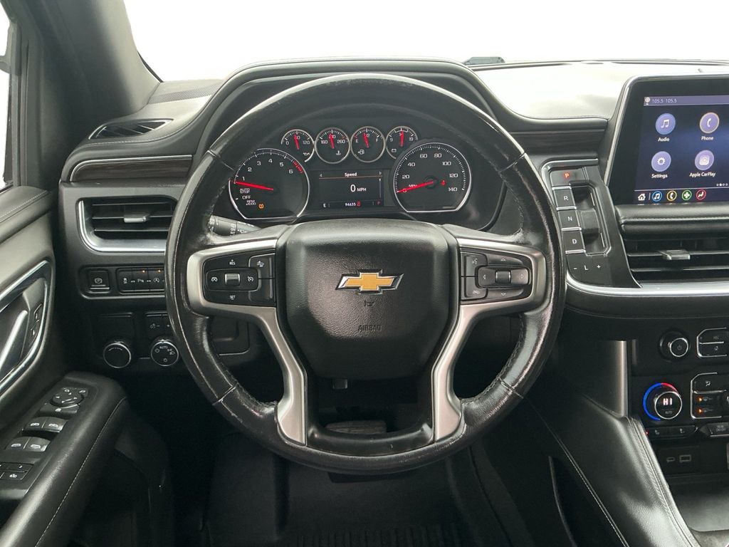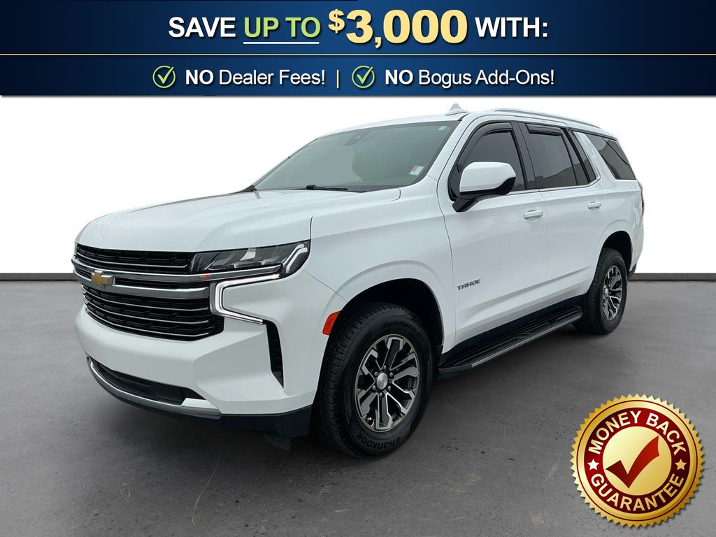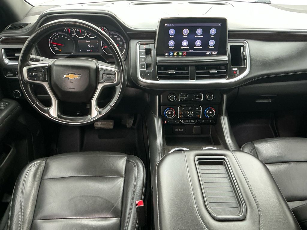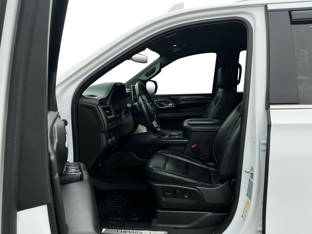 2021 Chevrolet Tahoe LT Summit White LT RWD 10-Speed Automatic with Overdrive EcoTec3 5.3L V8 Black Leather, 10-Way Power Driver & Passenger Seat Adjusters, 1st & 2nd Row Color-Keyed Carpeted Floor Mats, 2 USB Data Ports, 2nd Row Manual Bucket Seats, 3.23 Rear Axle Ratio, 3rd row seats: split-bench, 4-Wheel Disc Brakes, 9 Speakers, ABS brakes, Air Conditioning, Alloy wheels, AM/FM radio: SiriusXM with 360L, Apple CarPlay/Android Auto, Auto High-beam Headlights, Auto-Dimming Inside Rear-View Mirror, Auto-dimming Rear-View mirror, Automatic temperature control, Bose 9-Speaker Stereo Audio System Feature, Brake assist, Bright Front & Rear Door Sill Plates, Bumpers: body-color, Color-Keyed Carpeting Floor Covering, Compass, Delay-off headlights, Driver & Front Outboard Passenger Airbags, Driver door bin, Driver vanity mirror, Dual front impact airbags, Dual front side impact airbags, Electronic Stability Control, Emergency communication system: OnStar and Chevrolet connected services capable, Floor Console w/Storage Area, Four wheel independent suspension, Front anti-roll bar, Front Bucket Seats, Front Center Armrest, Front dual zone A/C, Front High-Back Reclining Bucket Seats, Front reading lights, Fully automatic headlights, Garage door transmitter, Hands-Free Rear Power Programmable Liftgate, HD Radio, Heated door mirrors, Heated Driver & Front Passenger Seats, Heated front seats, Illuminated entry, Infotainment Display, Leather Seat Trim, Leather steering wheel, Leather-Wrapped Steering Wheel, LED Daytime Running Lamps, Low tire pressure warning, Memory seat, Memory Settings for Driver, Occupant sensing airbag, Outside temperature display, Overhead airbag, Overhead console, Panic alarm, Passenger door bin, Passenger vanity mirror, Power door mirrors, Power driver seat, Power Liftgate, Power passenger seat, Power steering, Power windows, Preferred Equipment Group 1LT, Premium audio system: Chevrolet Infotainment 3, Premium Smooth Ride Suspension, Radio: Chevrolet Infotainment 3 Plus System, Rain sensing wipers, Rear air conditioning, Rear anti-roll bar, Rear reading lights, Rear seat center armrest, Rear window defroster, Rear window wiper, Remote keyless entry, Remote Start, Roof rack: rails only, Security system, SiriusXM Radio w/360L, Speed control, Speed-sensing steering, Split folding rear seat, Spoiler, Steering wheel mounted audio controls, Tachometer, Telescoping steering wheel, Tilt steering wheel, Traction control, Trip computer, Universal Home Remote, Variably intermittent wipers, Voltmeter, Wheels: 18" x 8.5" Bright Silver Painted Aluminum, Black Leather.